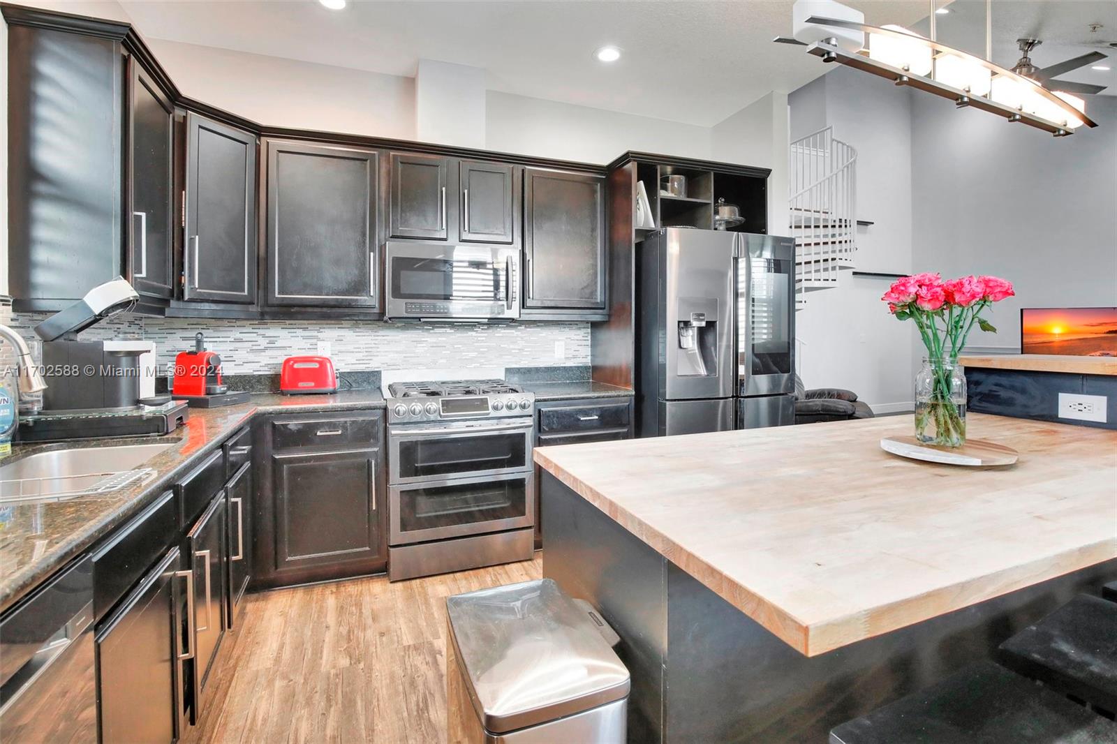 Step into charm with this exceptional 2-bed, 2-bath townhome featuring an open layout and a spiral staircase leading to a cozy loft. The open kitchen boasts granite countertops, a block island with electric, and stainless steel SMART appliances. New AC and interior paint! Impact windows and doors ensure safety, and recessed lighting adds a modern touch. The 2-car garage includes an opener and hurricane-proof door. Enjoy resort-style amenities with a state-of-the-art clubhouse, pickelball court, fitness center, spa, three heated pools, and tennis courts. One of the lowest HOA's in the community! Located in a guard-gated community, walk to Sawgrass Mills and access highways easily. Don’t miss this unique opportunity!