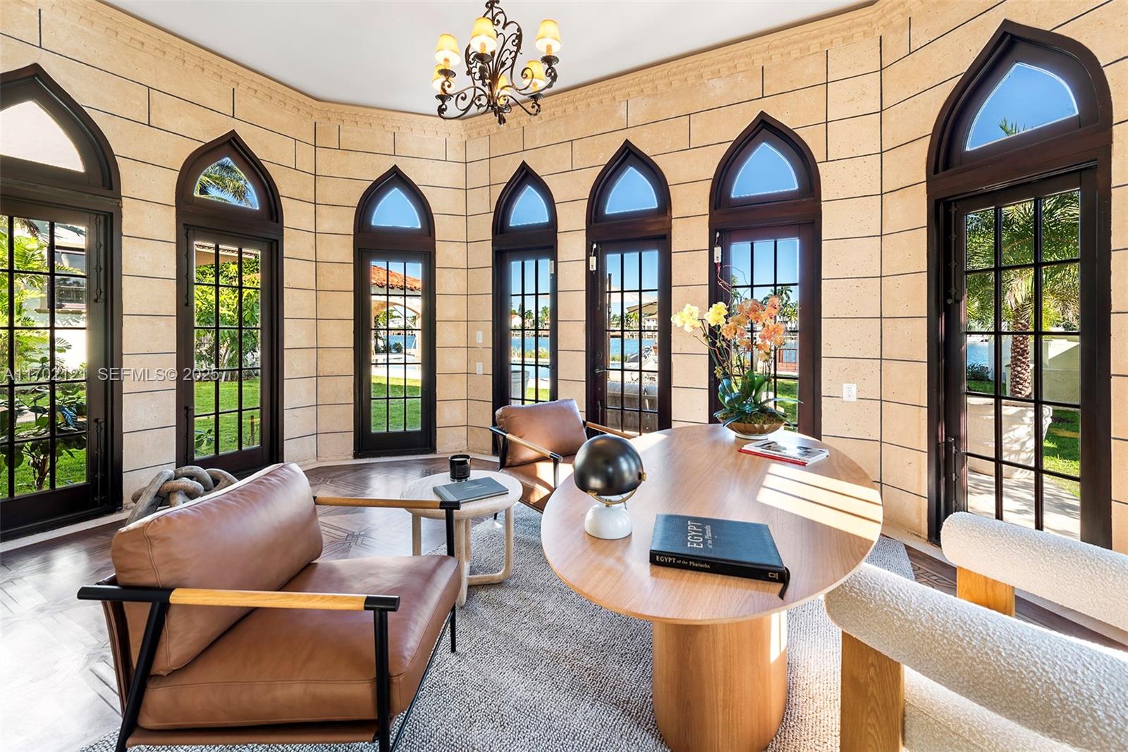 Perfectly nestled in the estates of Palm Island, a Mediterranean marvel with over 15K total SF of living space has been masterfully restored. Maintaining original architectural features, the estate boasts modern, state-of-the-art amenities + technology. Sprawling over 30K SF of lush grounds with exotic trees, fountains and 100’ unobstructed waterfront, multiple scenic outdoor lounging+entertaining areas abound,including a rooftop and private deck over the water. The mansion offers 6beds 7/2bths, office, insolated movie theater, grand saloon, formal dining, cognac rm & art gallery. Chef's kitchen features 3 Wolf gas ranges+Subzero appl, enormous island, family room and 2nd dining. The guest villa has a Turkish hammam/sauna, jacuzzi,massage+gym. 2nd fl 3/2.5 living/dining/kitchen 2 elevators