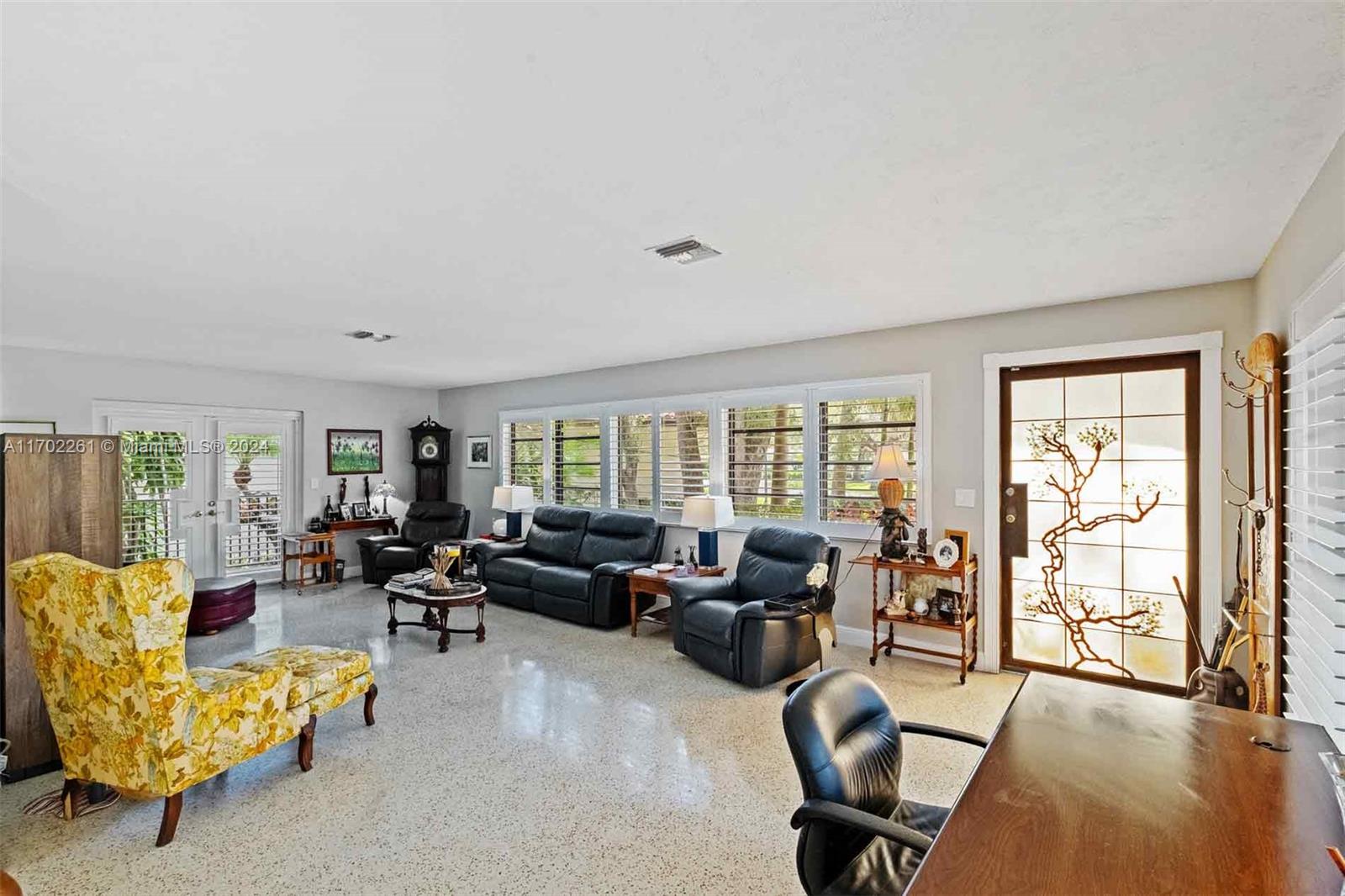 3 bedroom, 3 full bath home in Miami Shores on Mirror Lake. Mirror Lake is a hidden gem in Miami Shores, a freshwater, spring-fed lake. You can swim, watch the wildlife, or simply enjoy the calm from this lakefront home. Terrazzo floors, open living area, big bedrooms, great natural light, and 2 zones of central A/C. The kitchen and all 3 baths are updated, Attached one car garage plus a bonus room and inside laundry room.