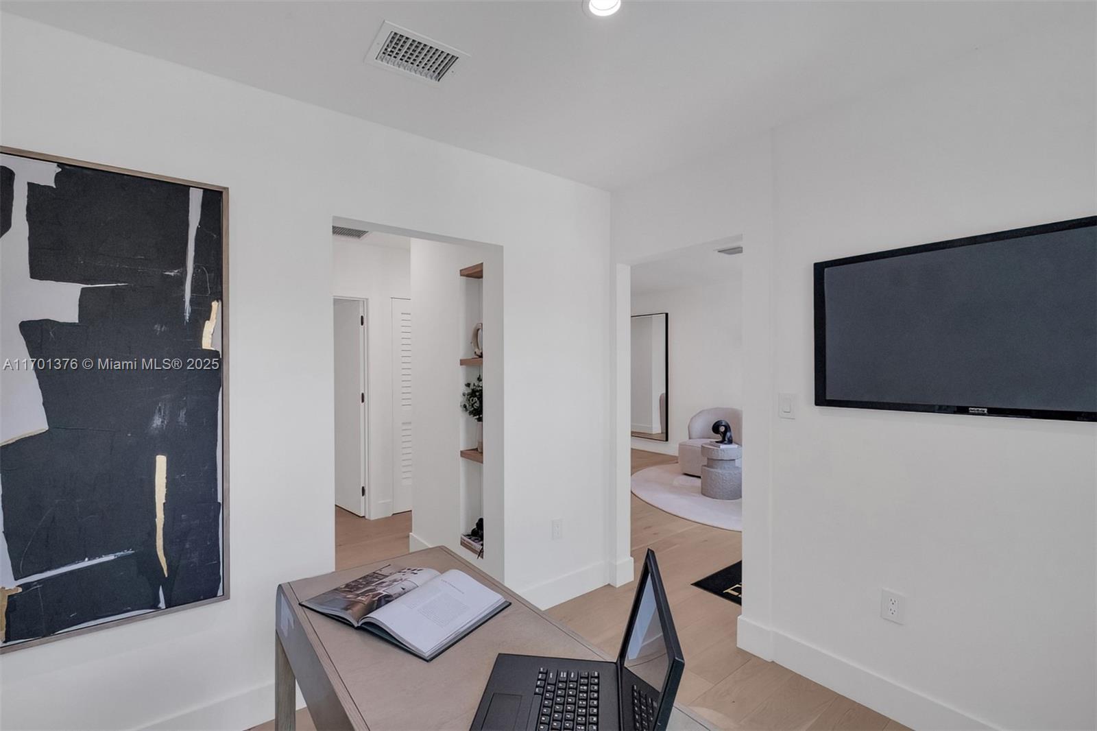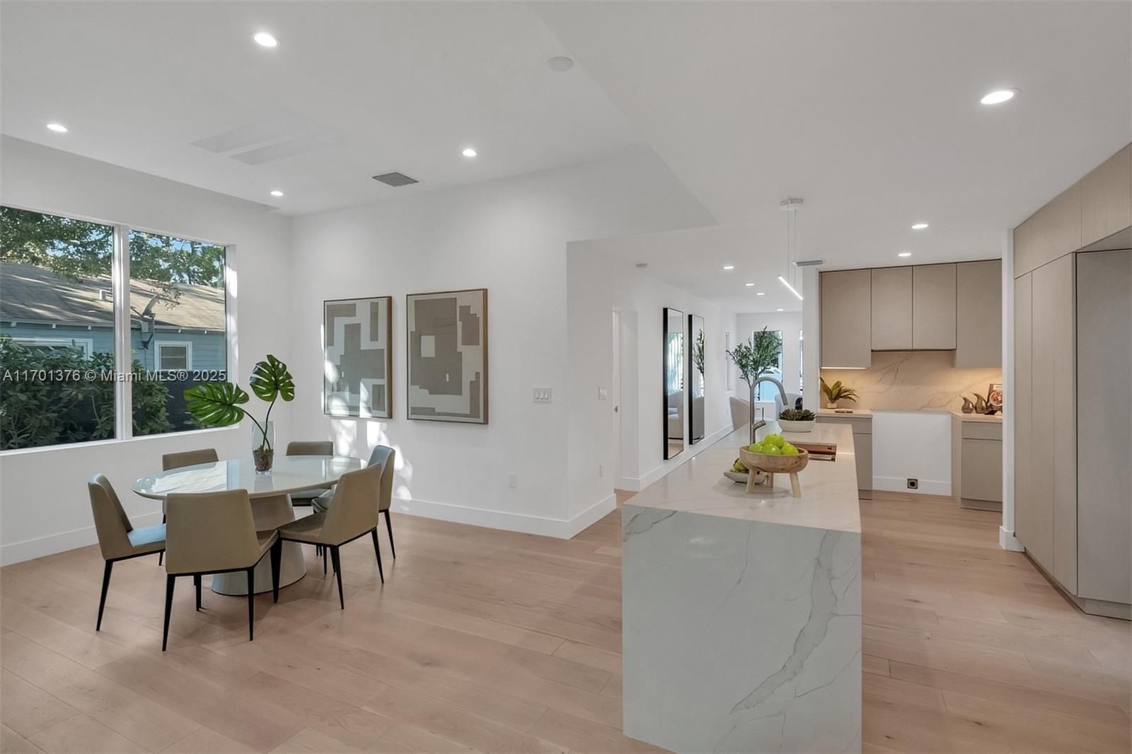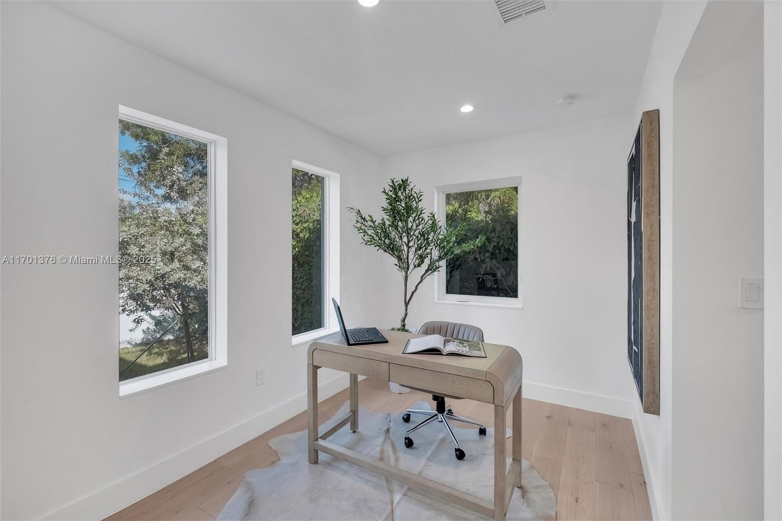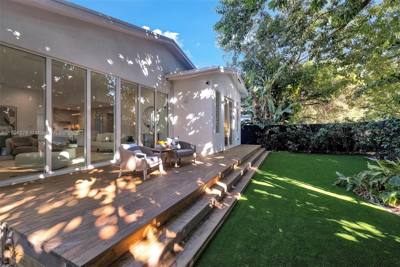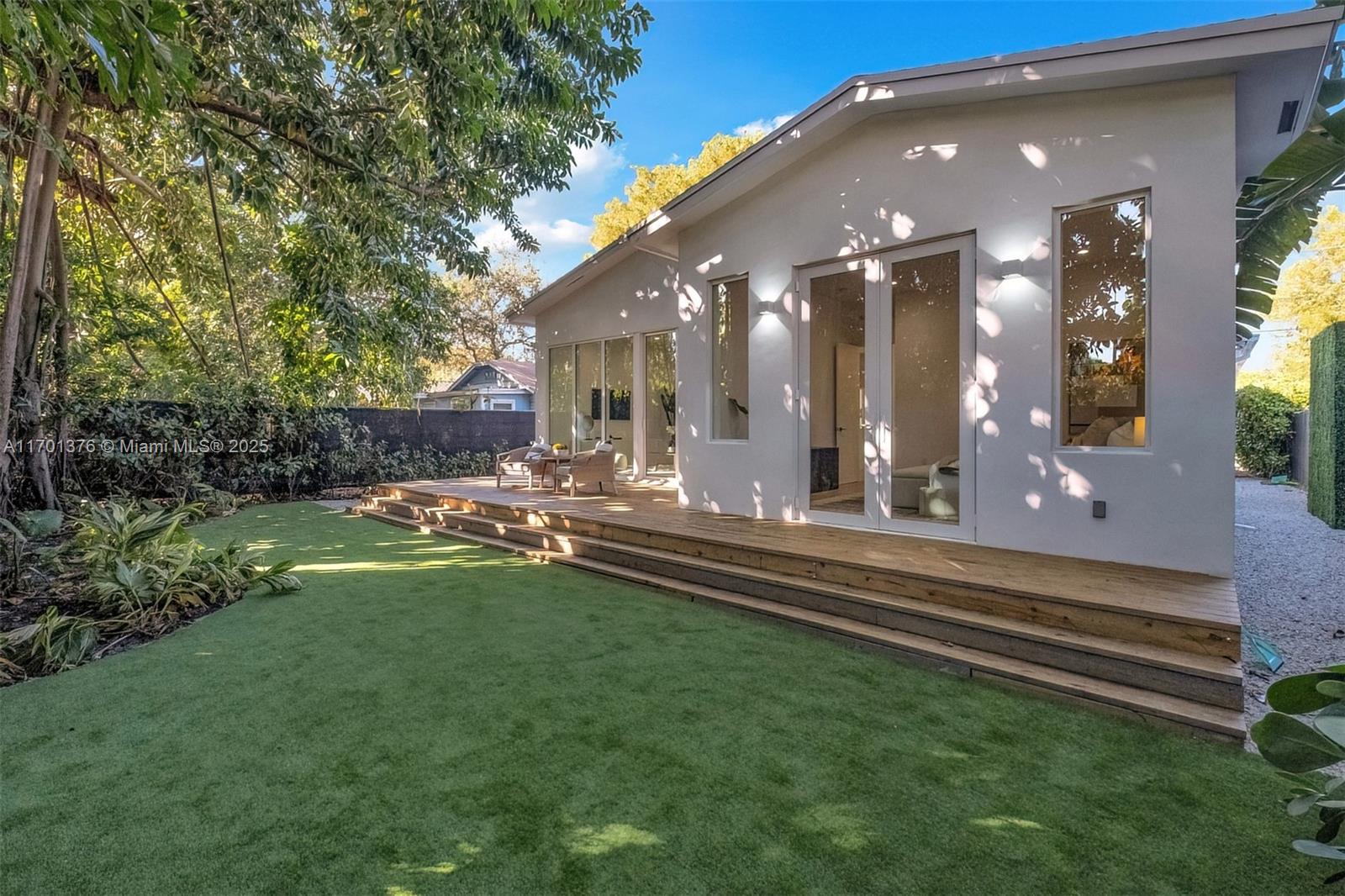 3 bedroom, 3 bath, + office, completely gut renovated including 1,000 sq. ft. of brand new living space & is located on a quiet, leafy street, blocks from the design district. Walking/biking distance to some of the best high-end retail, restaurants, & galleries. 1,981 sq ft of perfection surrounded by gigantic shade trees, totally fenced plus privacy hedge. Complete with 12-foot ceilings, 10 ft floor-to-ceiling impact glass windows, skylights & sky tunnels. Kitchen has Custom cabinetry, premium appliances & a 12-foot island. Primary bedroom has a French door to the rear deck, remote-controlled blackout shades, a big walk-in closet & spa like bath. Wood flooring, soundproofed walls throughout, 2 A/C units, tankless water heater & laundry closet . Truly turn-key and Move-In ready