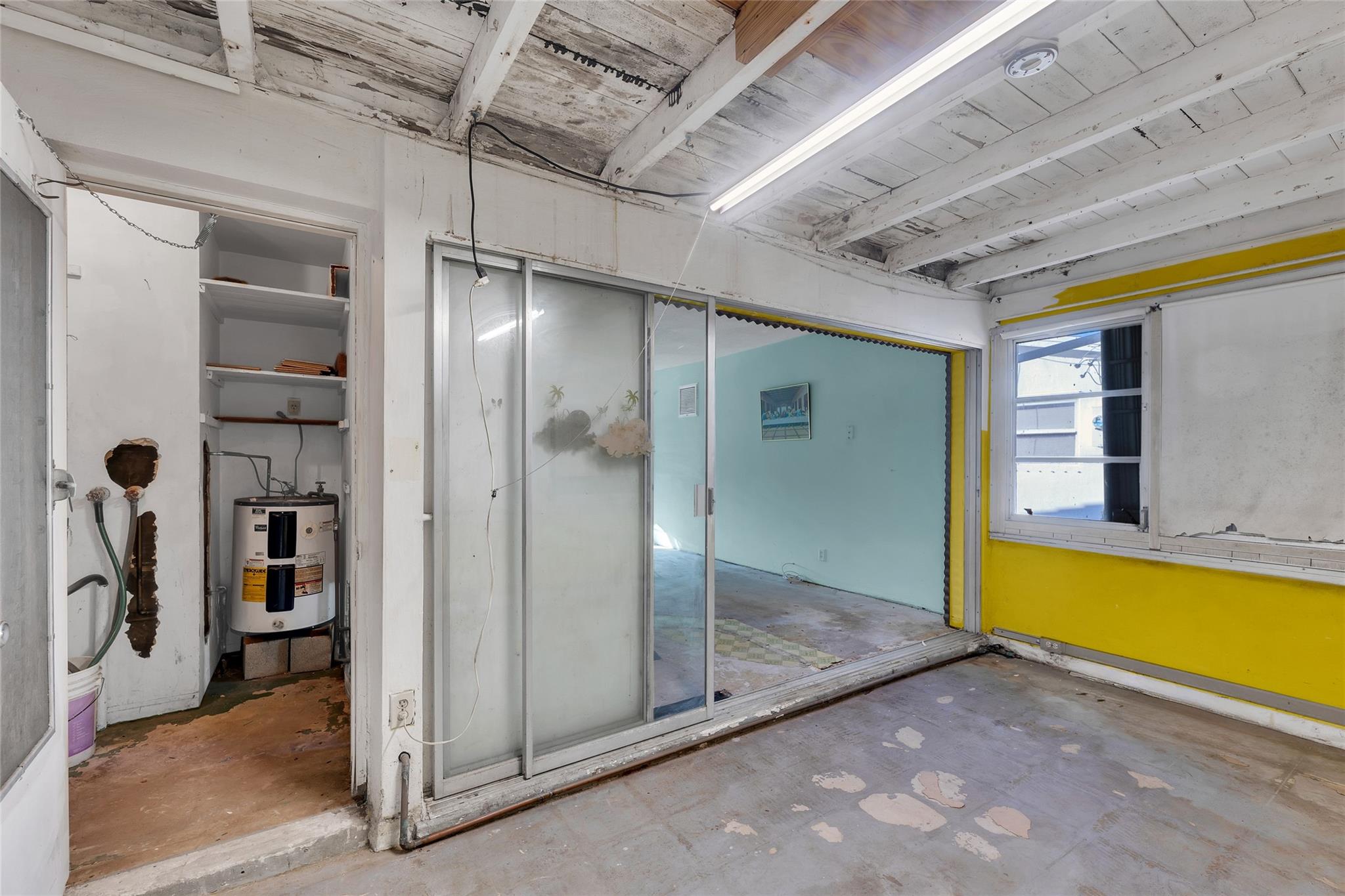 Estate Sale Opportunity for Renovation. Family owned since 1985 and has not been updated from original build. Roof is assumed to be original, while not currently leaking, it does need to be replaced. There is drywall missing due to a DIY attempt to find and fix a plumbing leak. The leak was fixed but drywall never replaced. Previous flooring was carpet and has been removed. There are NO appliances and none will be supplied. A/C 2 years old. Sold strictly as is and cash only. Property has large Florida room and 2 driveways on corner lot. Corporate Buyers allowed - NO renting first 5 years of ownership. Minimum income of $45,000 for HOA approval