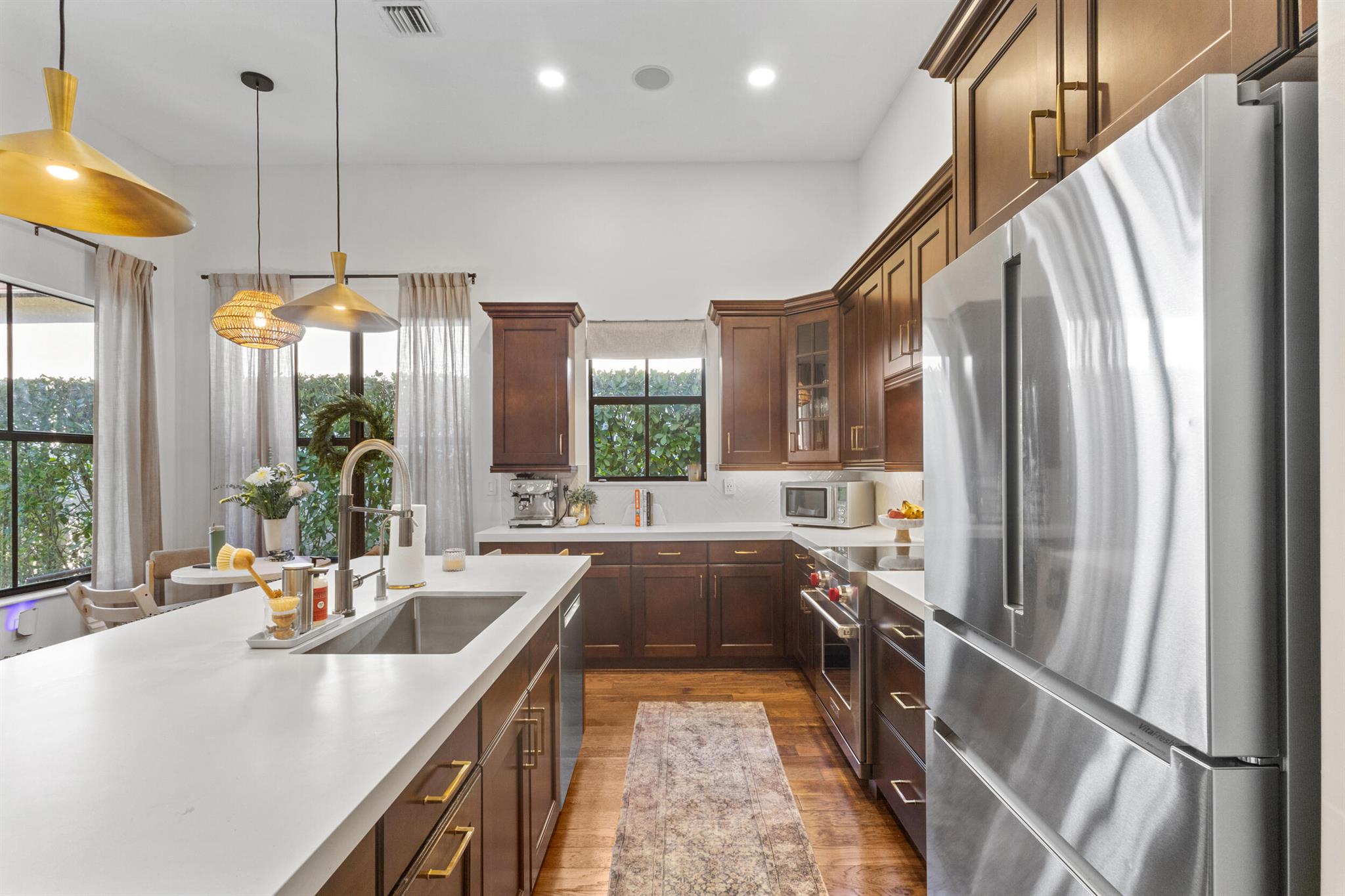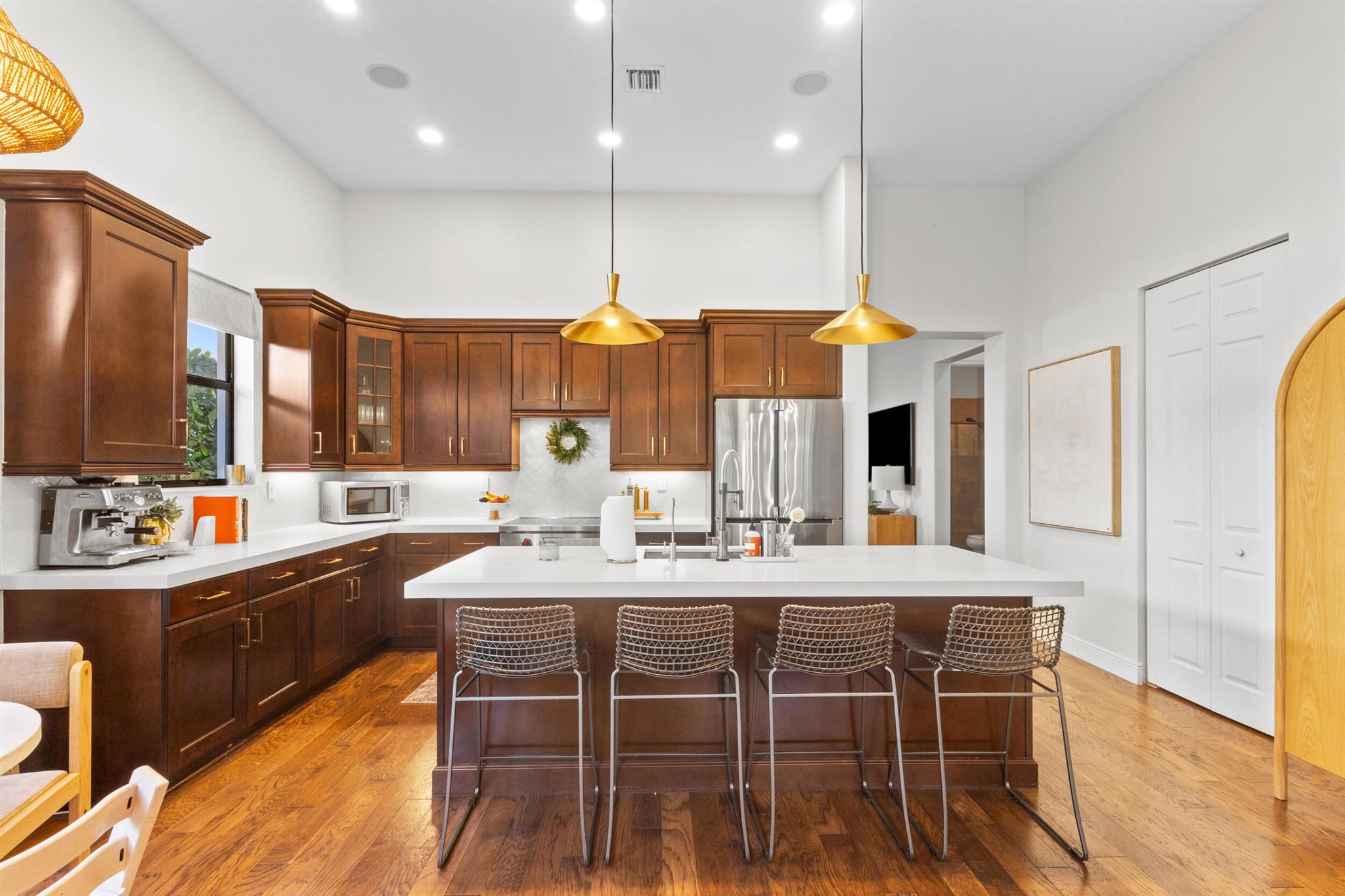 Welcome to the highly coveted community, Monterra, in the heart of Cooper City! This gorgeous 4/3 does not lack in beauty! With its 12+ ft ceilings, engineered hard wood flooring, and being freshly painted in 2023, you will feel cozy and right at home! Home has all high end appliances, including a state of the art ALKALINE water faucet in the kitchen, brand new CEASERSTONE PREMIUM QUARTZ countertops, as well as a NEW CARRIER AC installed in 2024 AND an electric car charger in the garage! Lovely Jack and Jill bathroom connecting 2 bedrooms. Also, if you love to host, the house includes an in ceiling speaker system! This home does not disappoint!