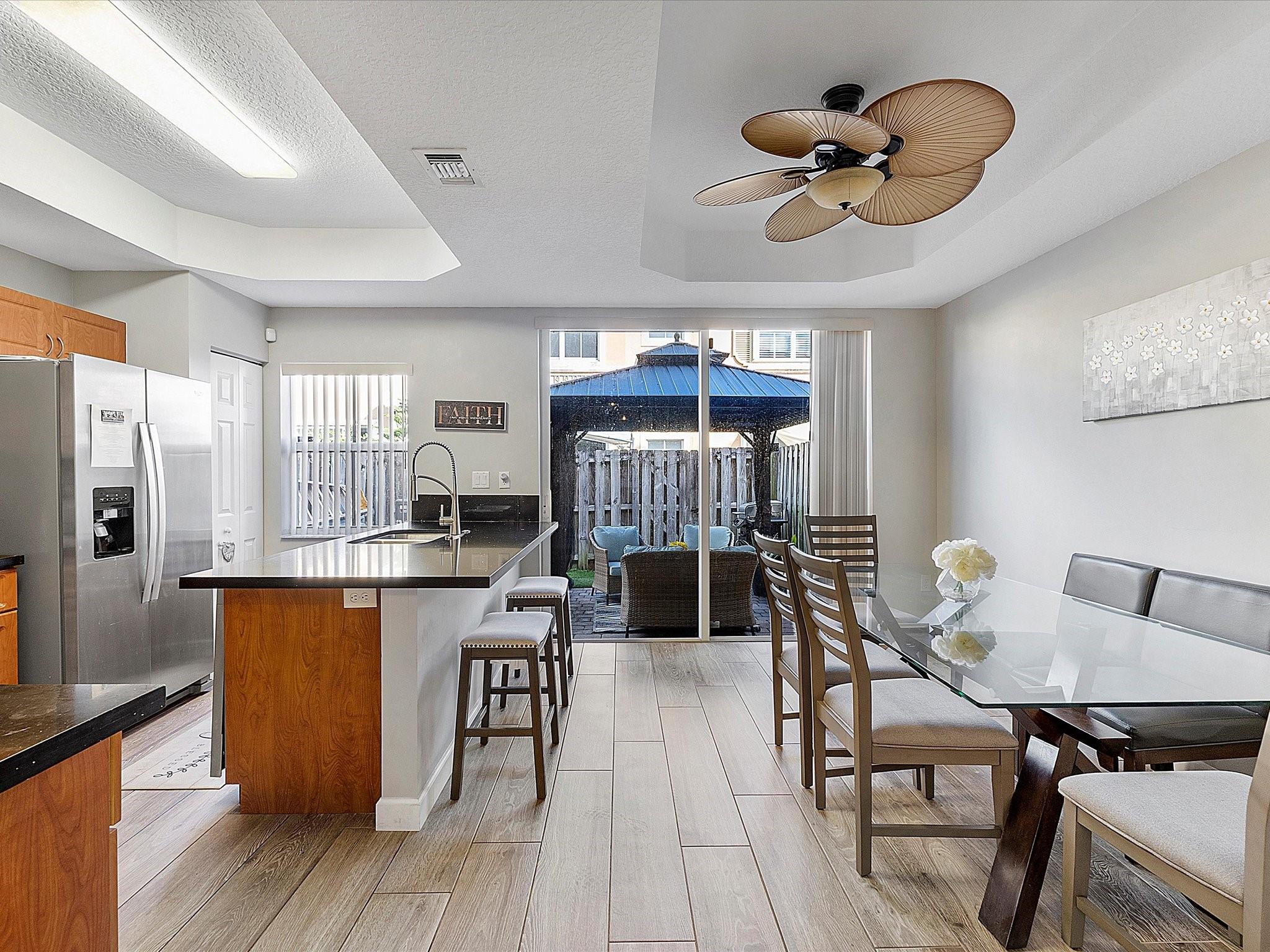 Spacious move-in ready 3 bedroom 2 1/2 bath townhouse in the highly sought-after Siena Community of Hollywood. It features porcelain tile flooring, a spacious 1st floor with 2 living spaces & 1/2 bath, an expansive laundry/utility room, a private courtyard entrance, a fenced garden, and a pavered patio with a high-end metal gazebo. The sunny kitchen offers ample storage, stainless steel appliances, and is open to the dining area. All bedrooms are upstairs where the Primary Suite has a double vanity ensuite and walk-in closet. This well-maintained community has one of the lowest maintenance fees you'll find and is close to schools, parks, shopping, dining & more.