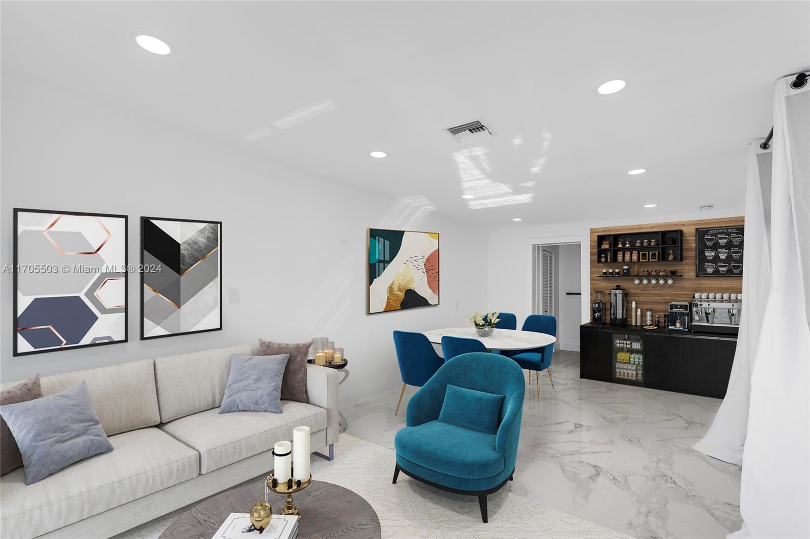 Gorgeous Private Oasis! Mother In-Law Quarters! Four-bedroom-3-bathroom plus bonus room. Opportunity to live almost mortgage free. Airbnb potential also. Tasteful renovation with marble flooring throughout. Open-concept floor plan with massive main bedroom with custom closet plus bonus room for a dressing room or library. Private yard with separate two gates and front and back road access for tenant. Rear laundry for tenant use. Mature fruit trees! This 1,677-sq-ft home has a large 6,750-sq-foot lot. Modern updates include large-format porcelain floors, custom tall-kitchen cabinets and sleek black faucet and hardware. New stainless appliances. Each unit has outdoor space. Modern bathrooms with glass shower doors and luxury black tile. Quick drive to I-95 and turnpike.