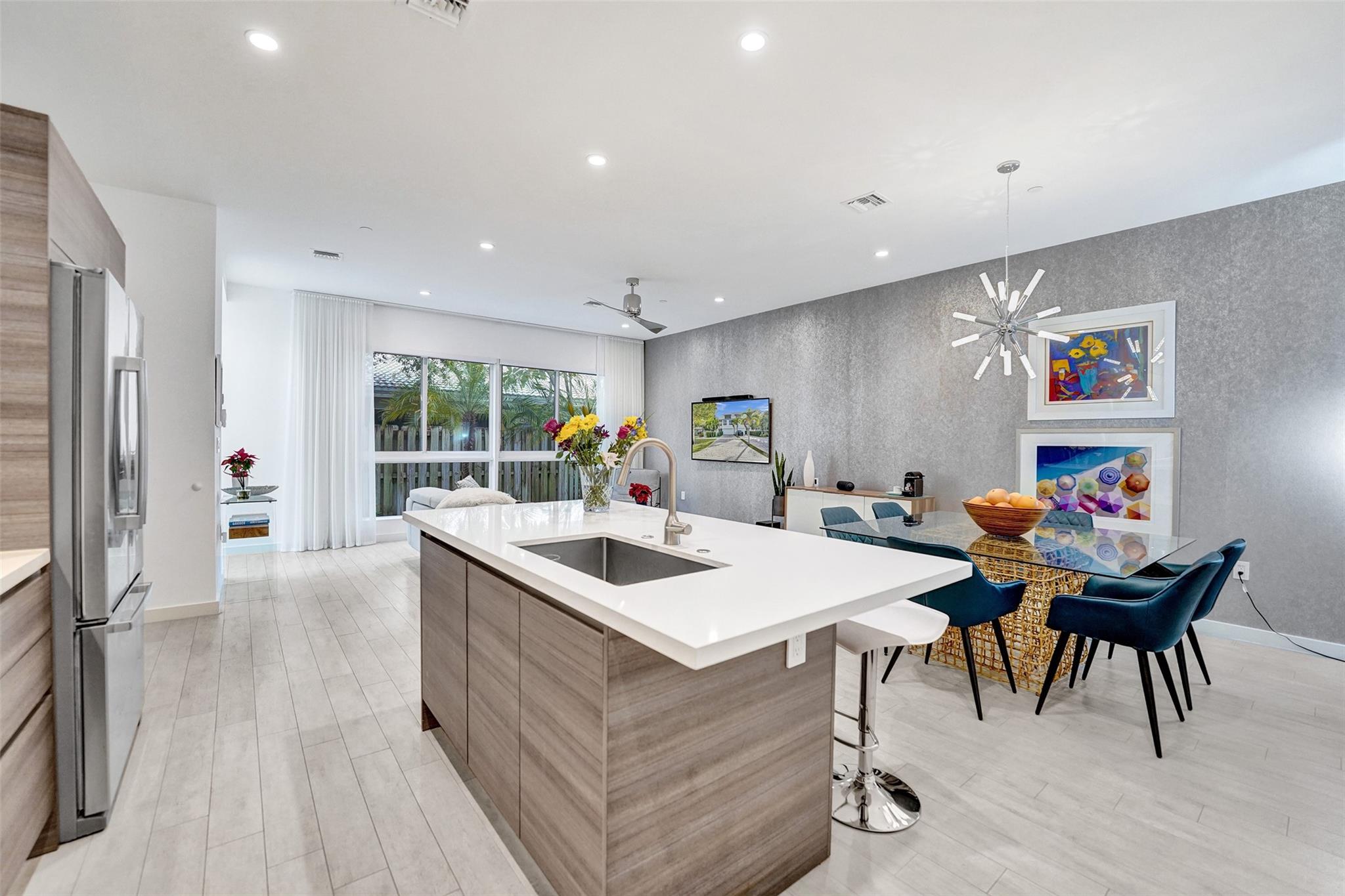 ***SIGNIFICANT PRICE IMPROVEMENT *** 3 stories of sleek, modern living in this stunning townhome, located across from 2 new $4 -$7 million luxury single family homes! Location! Built in 2016, this residence offers a gated entry leading to a private courtyard & a dramatic two-story foyer w/floor-to-ceiling impact windows. Every detail has been carefully curated, magazine-worthy finishes to the wood-look porcelain tile flooring & custom Italian kitchen cabinetry. The chef‘s kitchen features premium Bosch appliances, each bedroom boasts ensuite baths & spacious walk-in closets. Additional highlights include a laundry room w/utility tub, designer lighting, custom sheer drapes & blinds, accent walls, 3rd level wrap around terrace with skyline views. This is modern elegance at its finest.