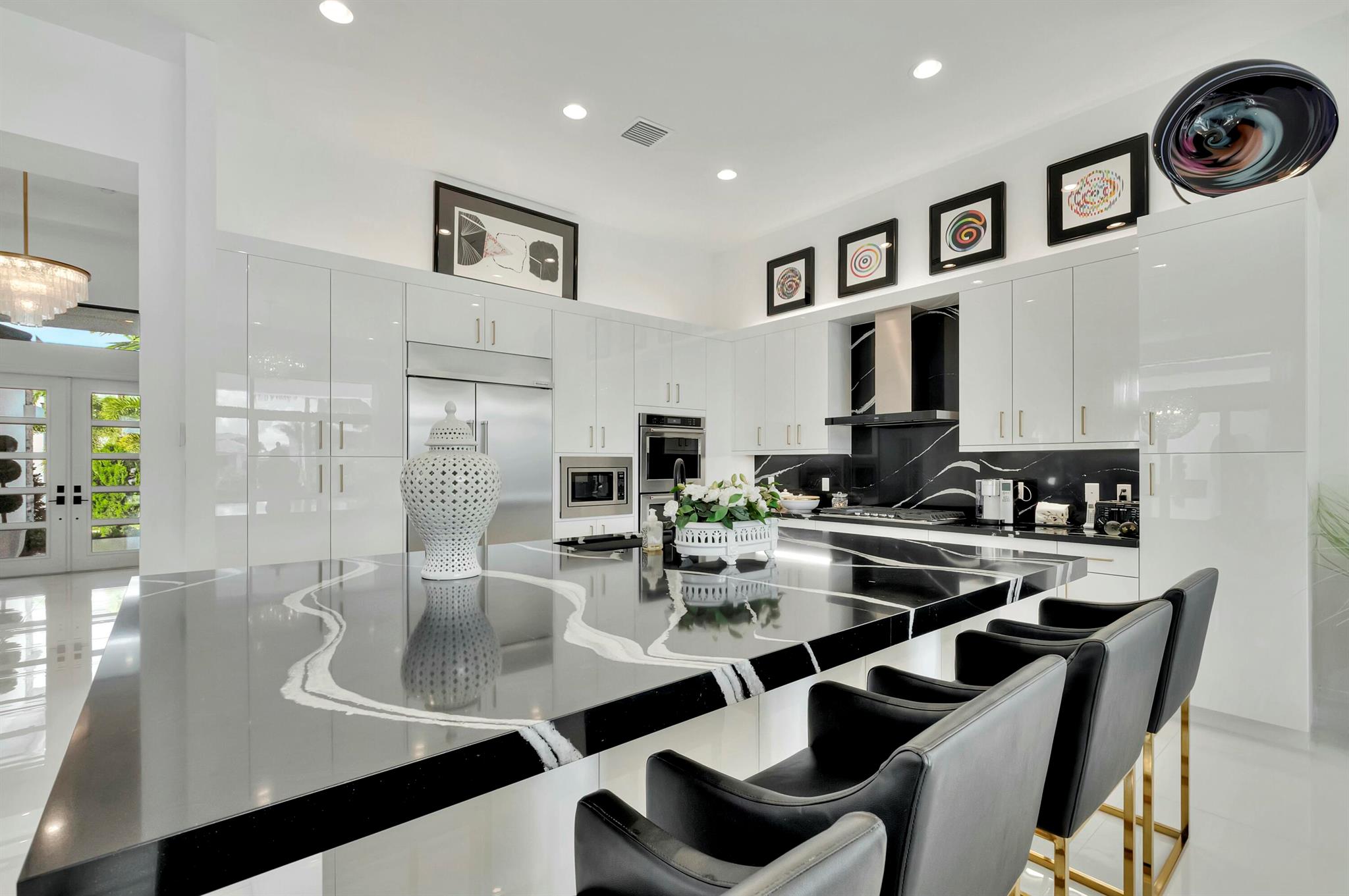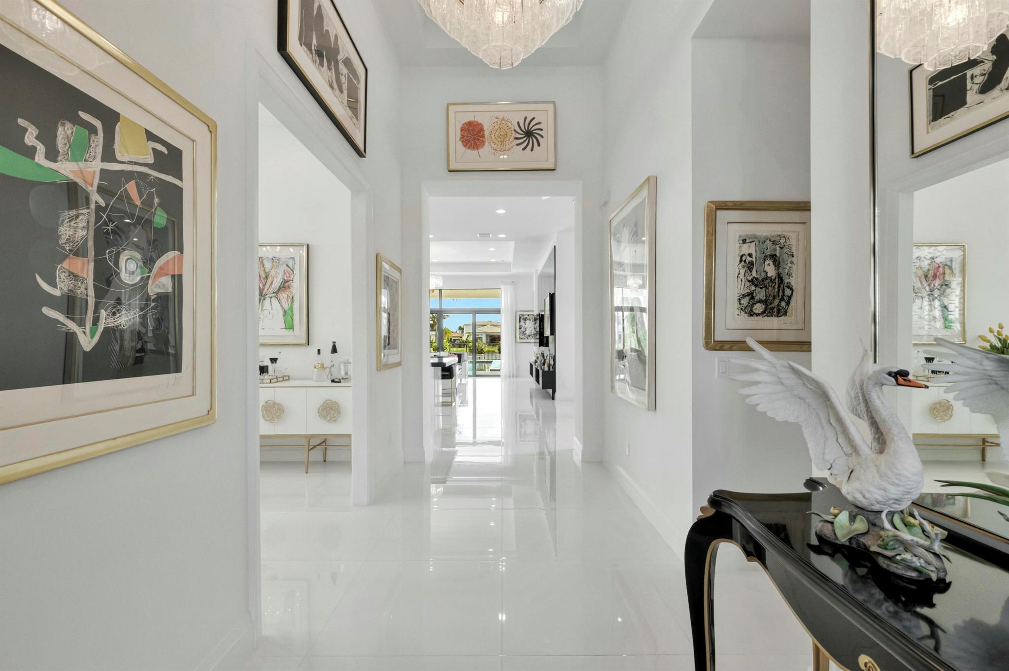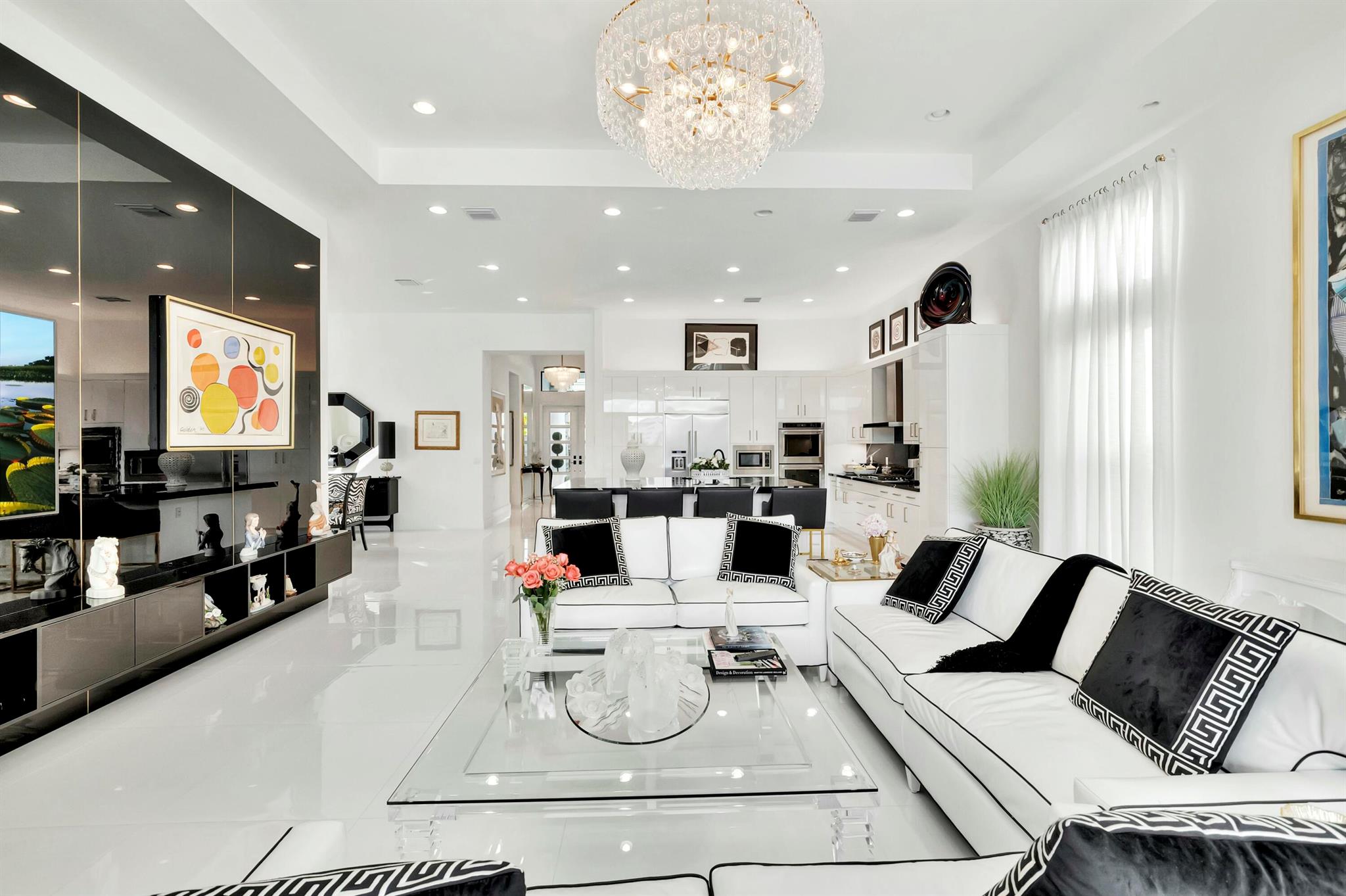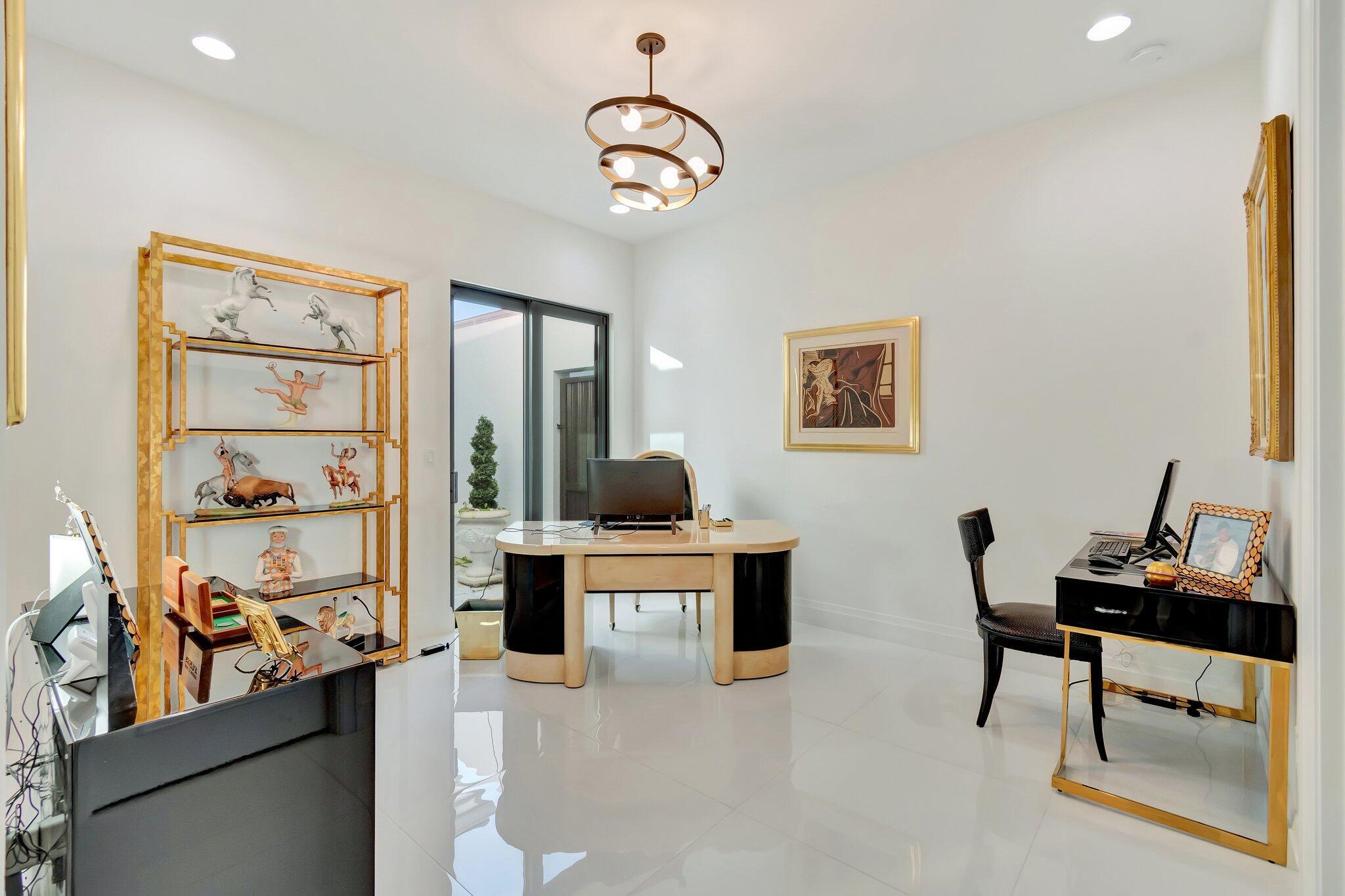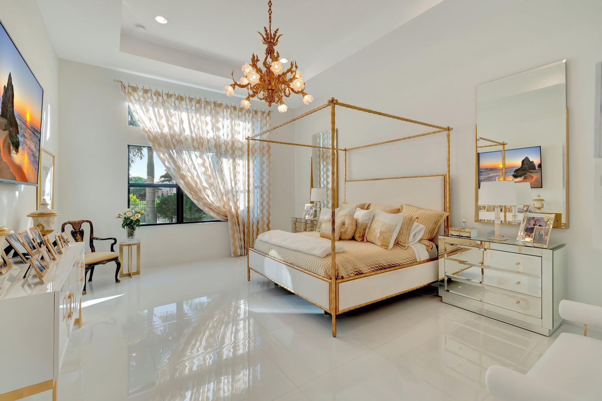Spectacular and contemporary home in the prestigious Boca Bridges. Fabulous lake view with a gorgeous swimming pool and spacious patio. Featuring 3 en suite bedrooms, plus a den/office or spare bedroom, and an exquisite powder room. Designed by a top NY decorator. Beautiful draperies and custom media unit in the living room included. And for those with a large wardrobe, the closet space and custom closets are outstanding. This impressive home has a comfortable open floor plan and is extraordinary in every way.