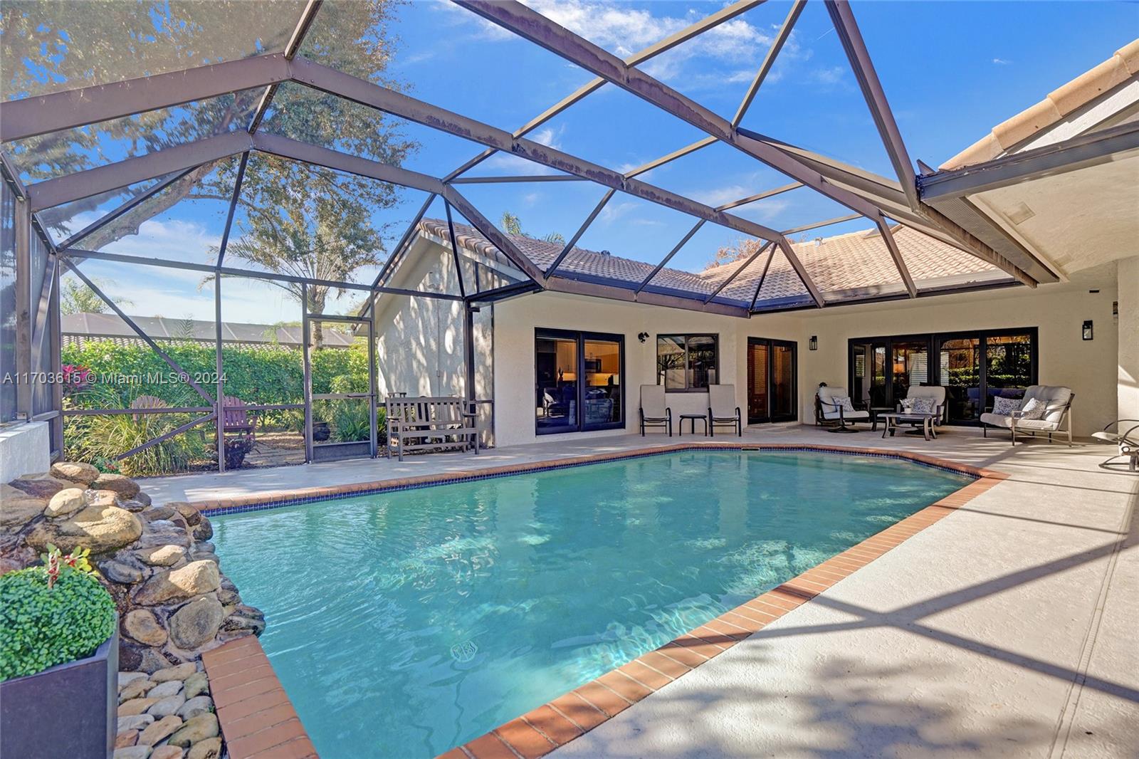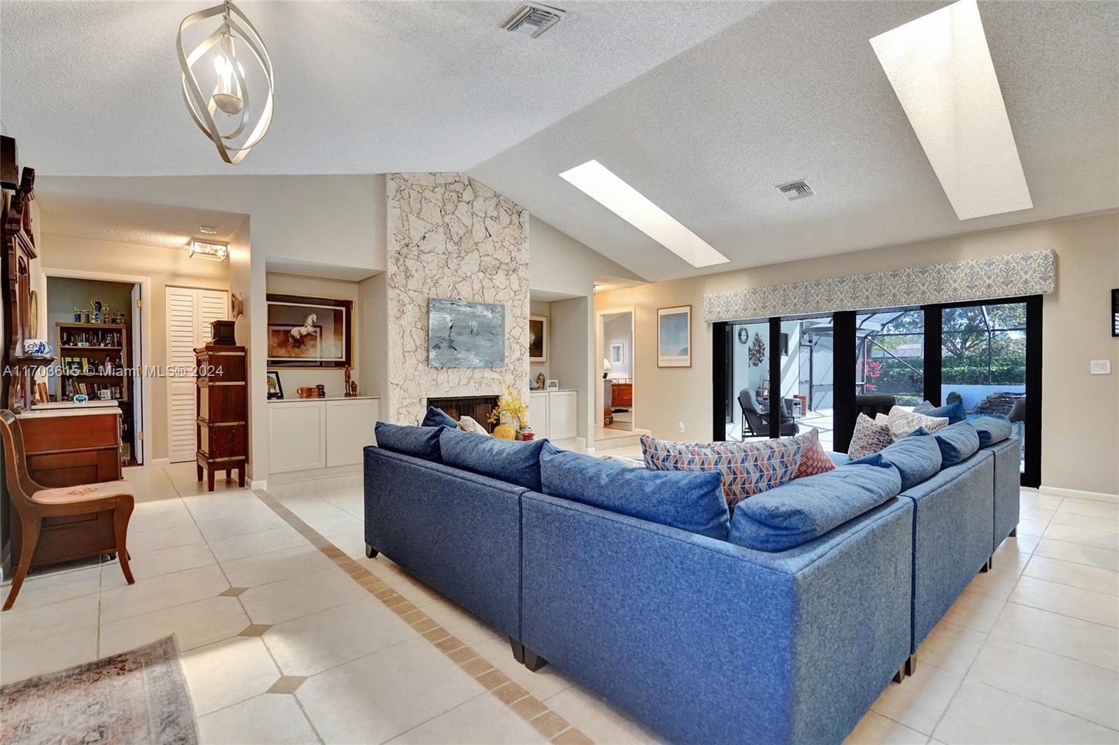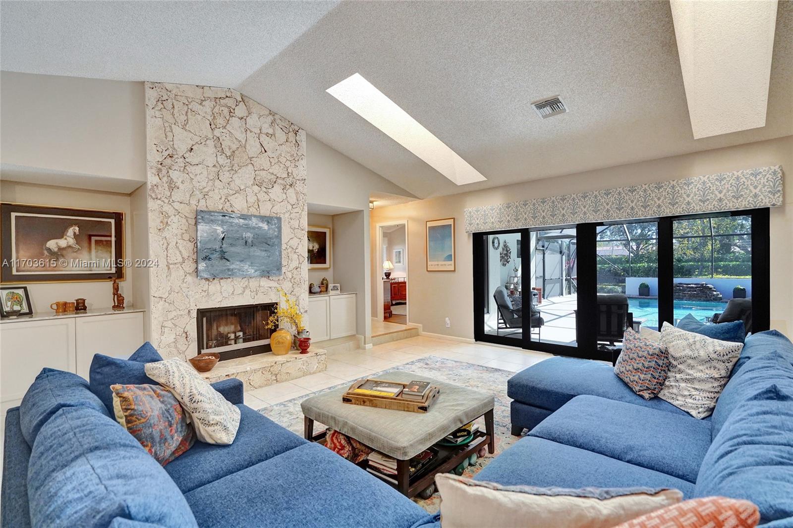 Pine Ridge renovated and upgraded 4/2.5/Office/Screened pool all meticulously maintained! Spacious w/ over 2,500 sq ft incl. large formal living room w/ high ceilings, skylights and woodburning fireplace! Tile thru-out, a gorgeous kitchen w/ white solid wood cabinets, newer high-end appliances, and a double pantry w/ built-ins! Add to all this a big family room overlooking the pool, a private enclosed patio off master bedroom, laundry room, and a 2 car (clean as a whistle) garage w/ epoxy flooring. New pool pump and filter, new sprinkler pump and painted in 2022! Lush landscaping and a fully fenced yard are perfect for kids at play or dogs on the run! Close to schools, shopping and restaurants! GET IT ALL for $775,000 and a very low HOA! Run, don't walk, as this will not last!
