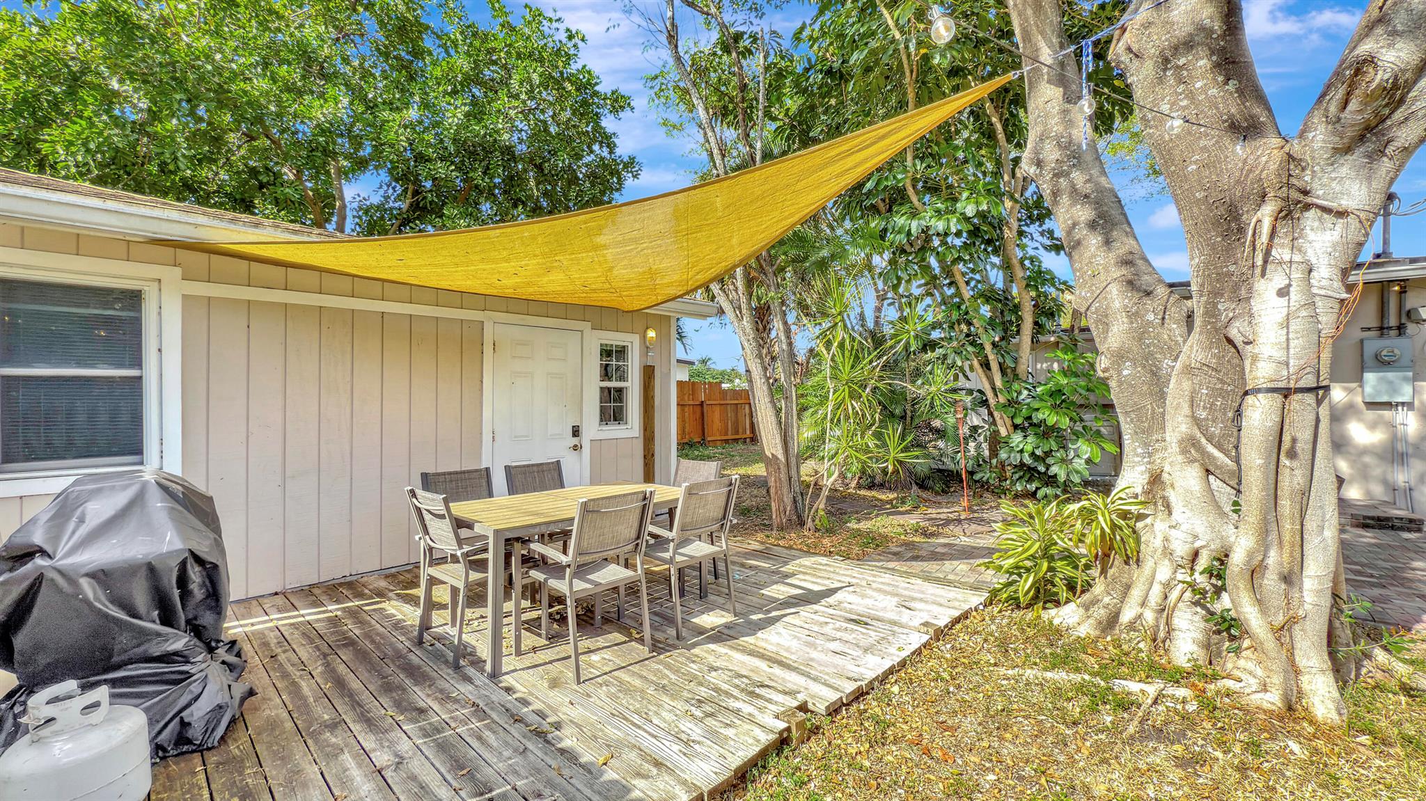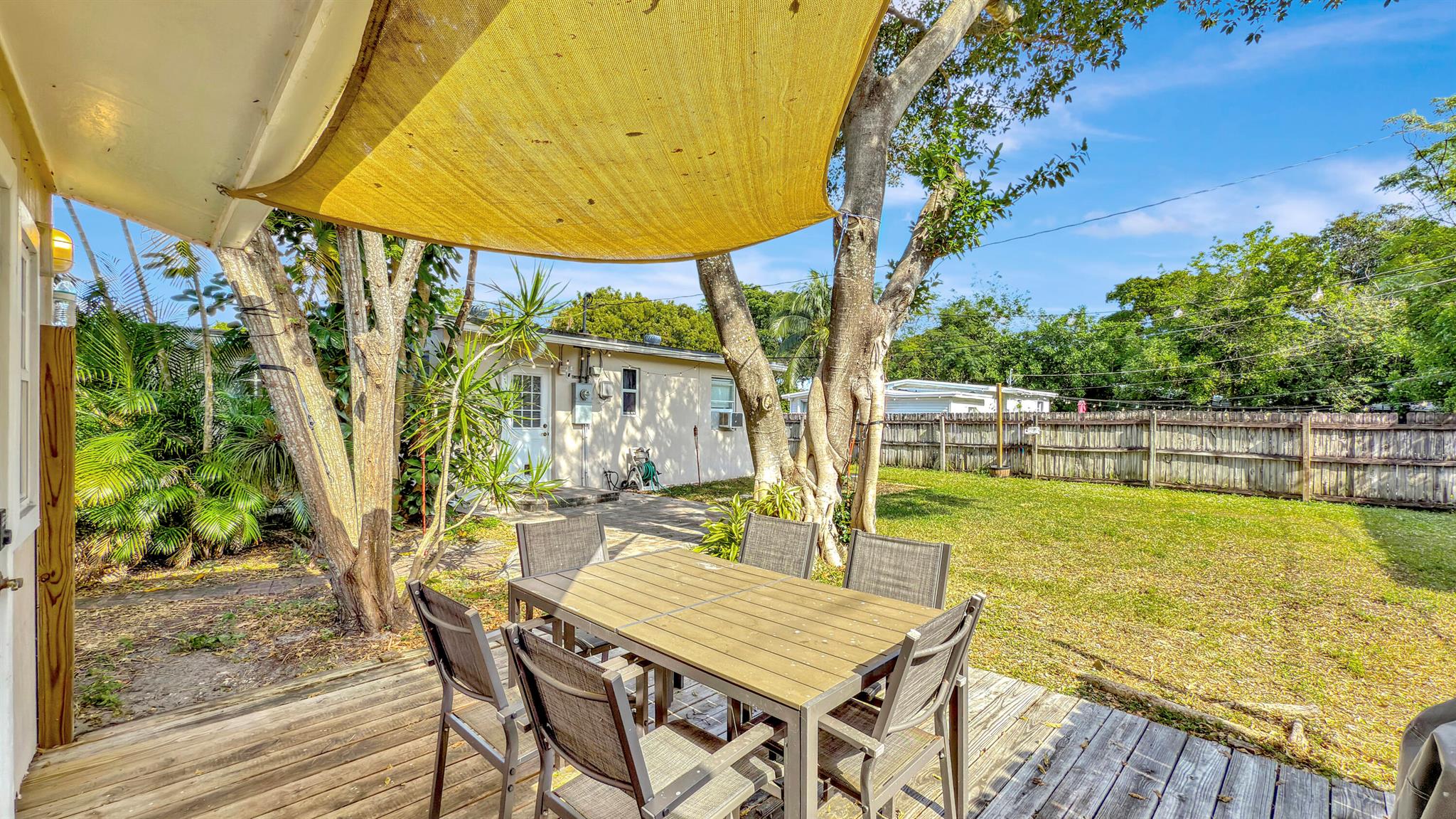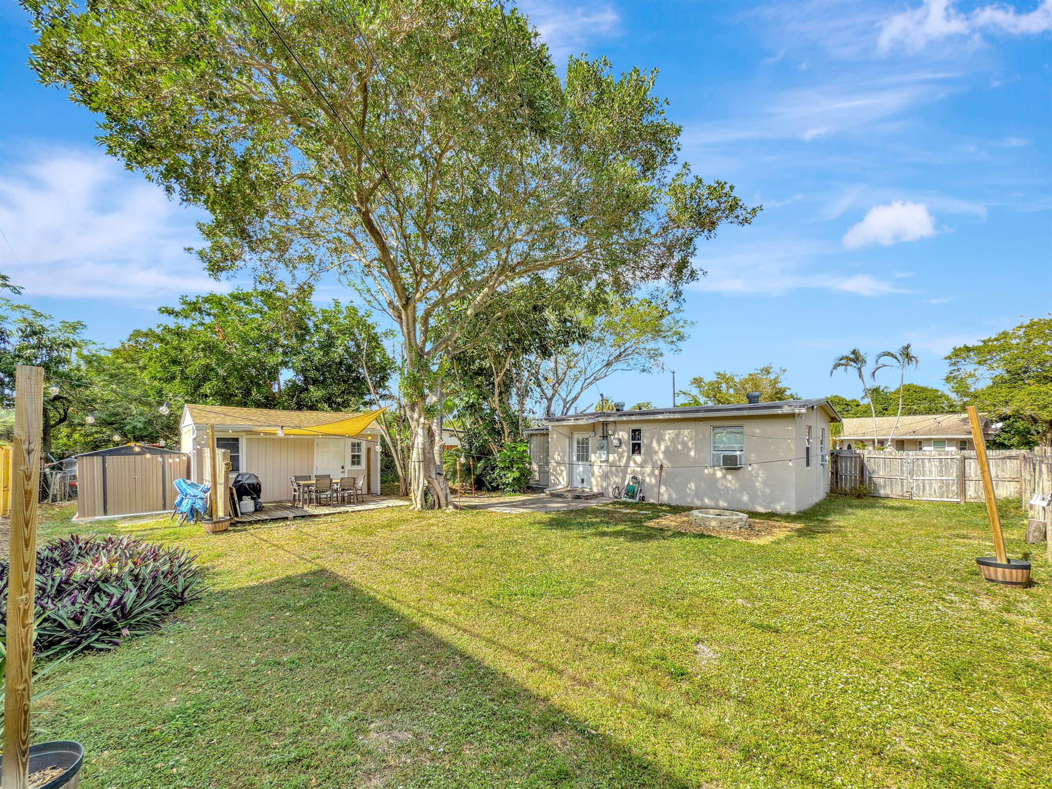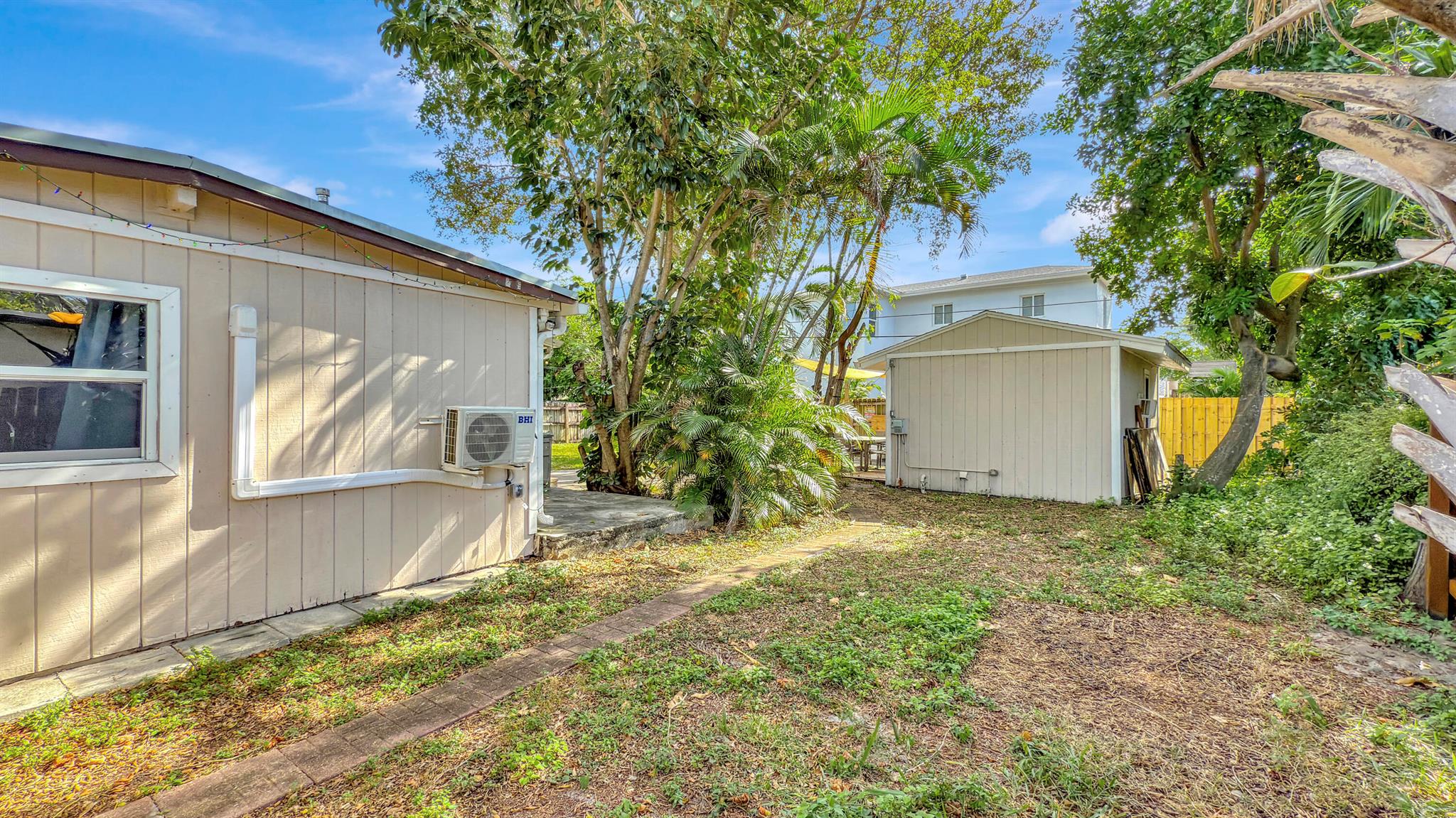Unique opportunity in east Pompano Beach. Two-bedroom one-bath main residence in true move-in condition, situated on a spacious lot, with a 12' by 18' accessory building that can be used as an extra room, an office, or a storage space. It has plumbing and electricity and houses the washer and dryer. With some minor renovations by a contractor, the options for this space are numerous. The backyard features a 12' by 18' deck perfect for enjoying the Florida winters outdoors. The lot also has room to park your work vehicle, boat, RV or jet ski. There is no homeowner's association so there are no restrictions on pets. Located just west of Federal Highway; beautiful beaches, shopping, restaurants and entertainment are a short distance from your front door. Call now for a showing!