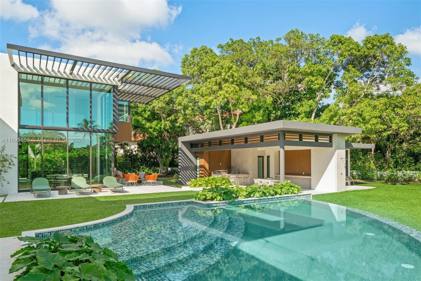 Experience the Pinecrest pinnacle of luxury living in this stunning new construction home. This modern 2-story residence features 7 Bed & 6.5 Baths, perfectly located on a private cul-de-sac. The home lifts the standards of quality & architecture w/ extraordinary European luxury marble, wood, + stone floors imported from Italy & Spain; integrating in & out with nature and the Miami sunlight through special large size windows/doors all across the house. Inside, the gourmet kitchen is equipped w/ high-end appliances & a custom wine cellar flowing effortlessly into a welcoming family area. The master private living room includes elevator & a spa-inspired bathroom, complete with a skylight, a freestanding tub, & dual vanities. Outside oasis features an infinity-edge pool, guest house, & more.