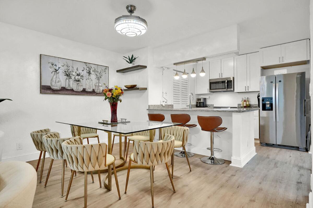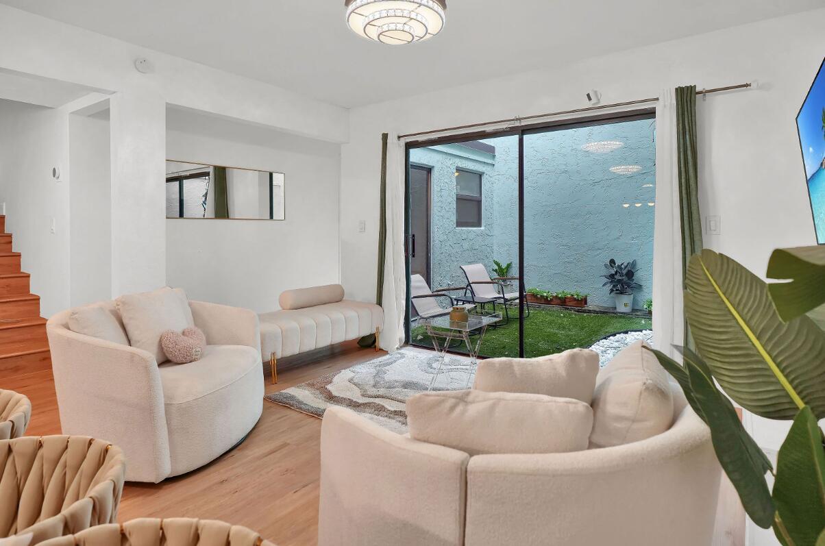 From the Moment You Step Into Your Private Courtyard Entrance;This 3 BR 2 BA, Contemporary Corner Townhome Already Feels Like Home! Renovated to Perfection Beautiful White Kitchen Cabinetry, Granite Counters, Double Sinks ,Designer Lighting & Fans ,Airy, Bright, Open, Laundry Closet Off Kitchen , Another Cozy Atrium Patio Off Living ,Dining,Redone Bathrooms, One Master Suite Down One Master Suite Up & Huge 3rd Bedroom Up,Perfect for Office Or Playroom, Guestroom, AC(2023),Water Heater (2020)Smooth Ceilings,Luxury Vinyl Flooring (2024) Roof (2024)Partial Hurricane Windows, Sliders not Impact Stair Storage A+ Schools & Gifted Program, Walk to Shops & House of Worship Don't Miss This Opportunity, Great Location! Don't Wait! See & Fall In Love!