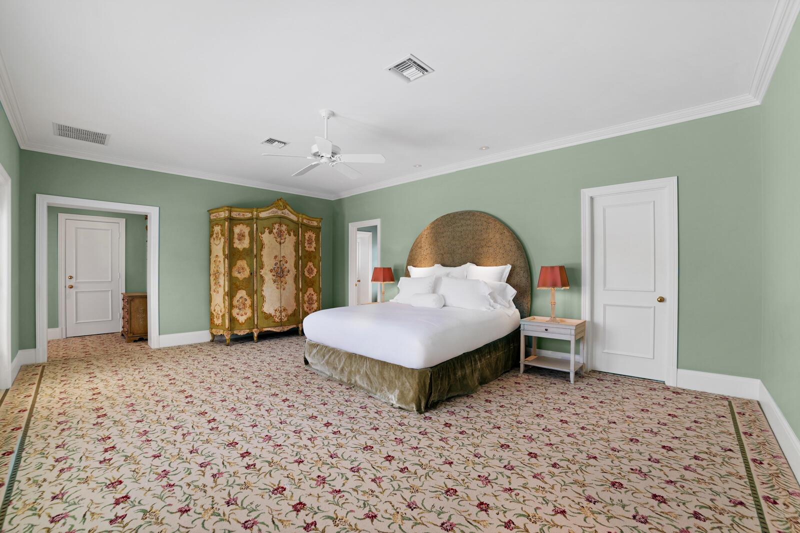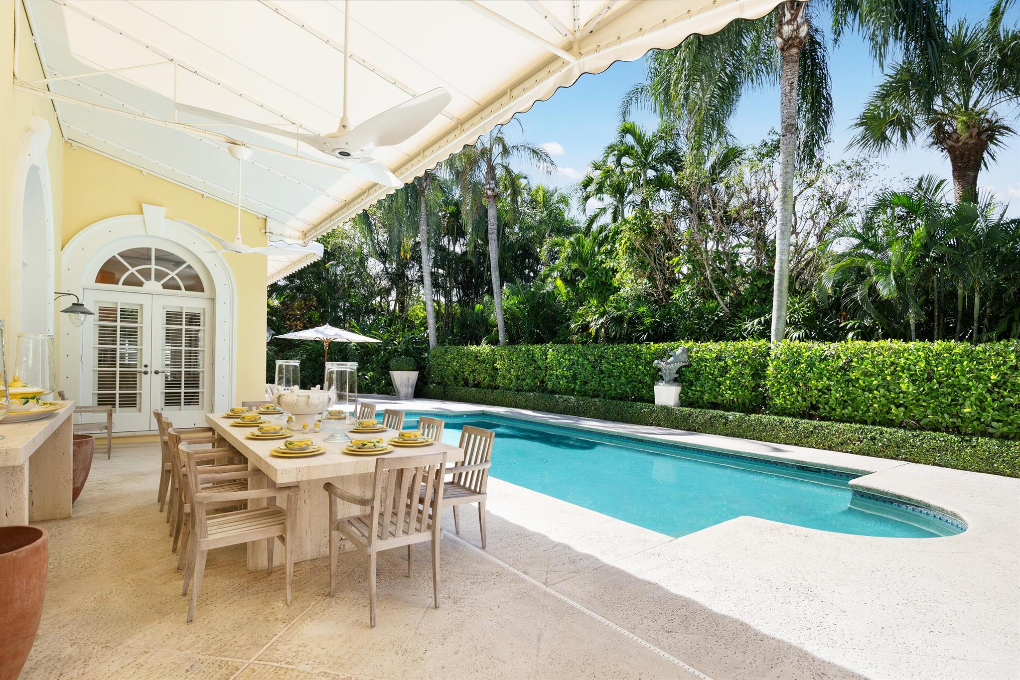 This British Colonial residence offers 6,922+/- total square feet with five bedrooms and six and a half bathrooms. Set on a 100' x 172' lot at the corner of Tangier Avenue and North Lake Way, the property features a large pool, covered loggia, and beautifully maintained grounds.The spacious foyer opens to the formal living room and a central gallery hall that connects the main living areas. The family room, located on the south side, opens through French doors to the covered loggia and pool. On the north side, the gallery leads to the formal dining room, library, and kitchen with adjoining dining area--an ideal layout for both everyday living and entertaining.Two guest bedrooms are located on the first floor, each with en suite baths and walk-in closets--one currently serving as a