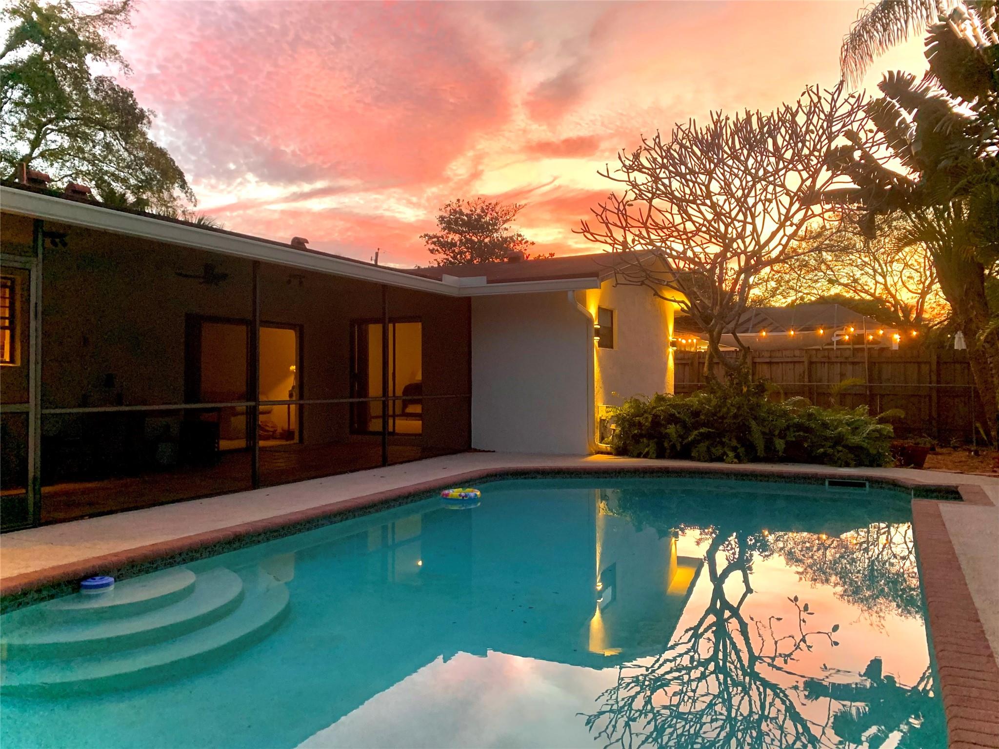 This 3-bedroom, 2-bath gem in the sought-after Riverland neighborhood is conveniently located near major highways and local boat ramps, and just 10 minutes from downtown Fort Lauderdale, the airport, and Seminole Hard Rock Casino. Solid wood double-entry doors welcome you to a sunken living room. The original kitchen boasts one-year-old stainless appliances, a stylish tiled backsplash and a peninsula adjacent to a family room/den. The primary bedroom has a walk-in closet and ensuite bathroom with updated, oversized shower. Two additional bedrooms feature large closets and share a bathroom. A one-car garage is home to almost-new washer and dryer. The large backyard is a private tropical oasis and offers a screened patio, sparkling pool, covered gazebo and lush, mature landscaping.