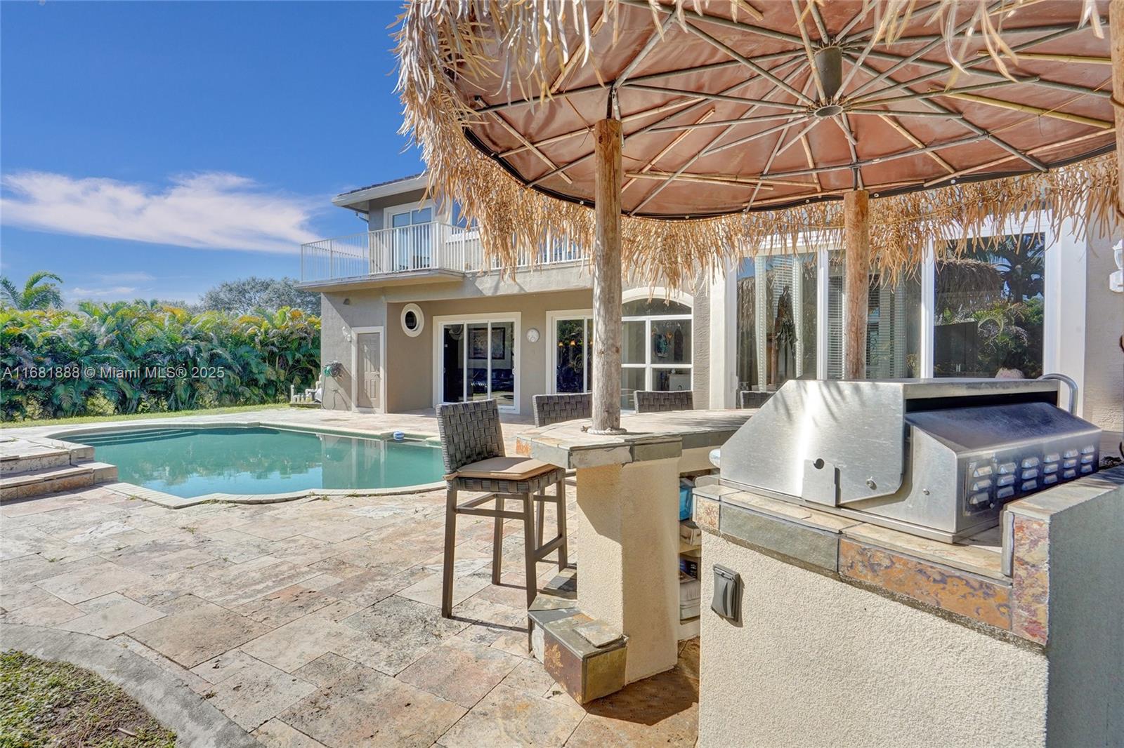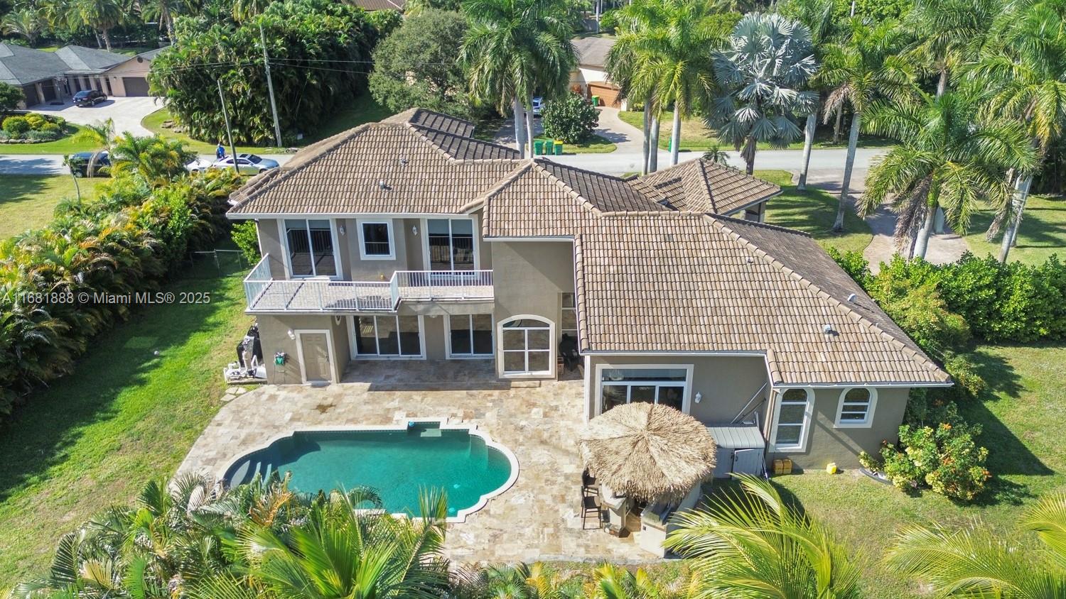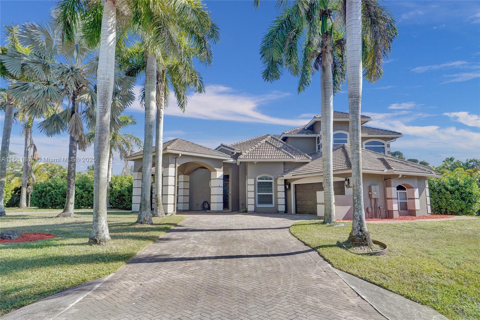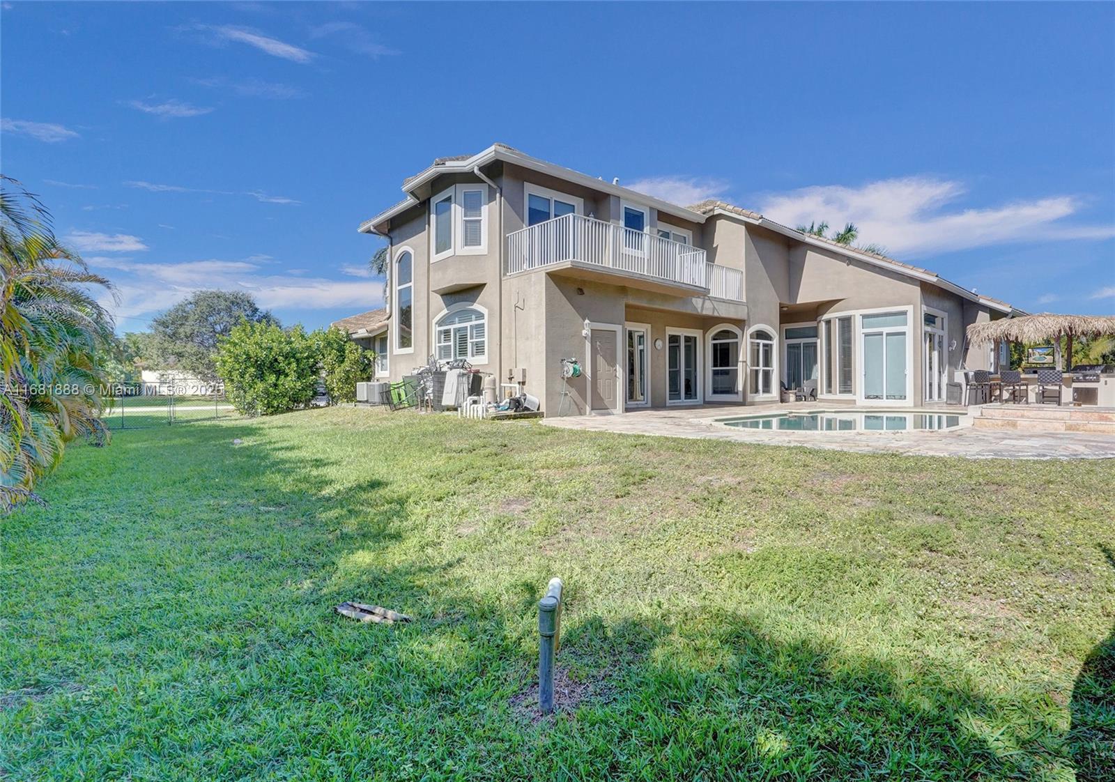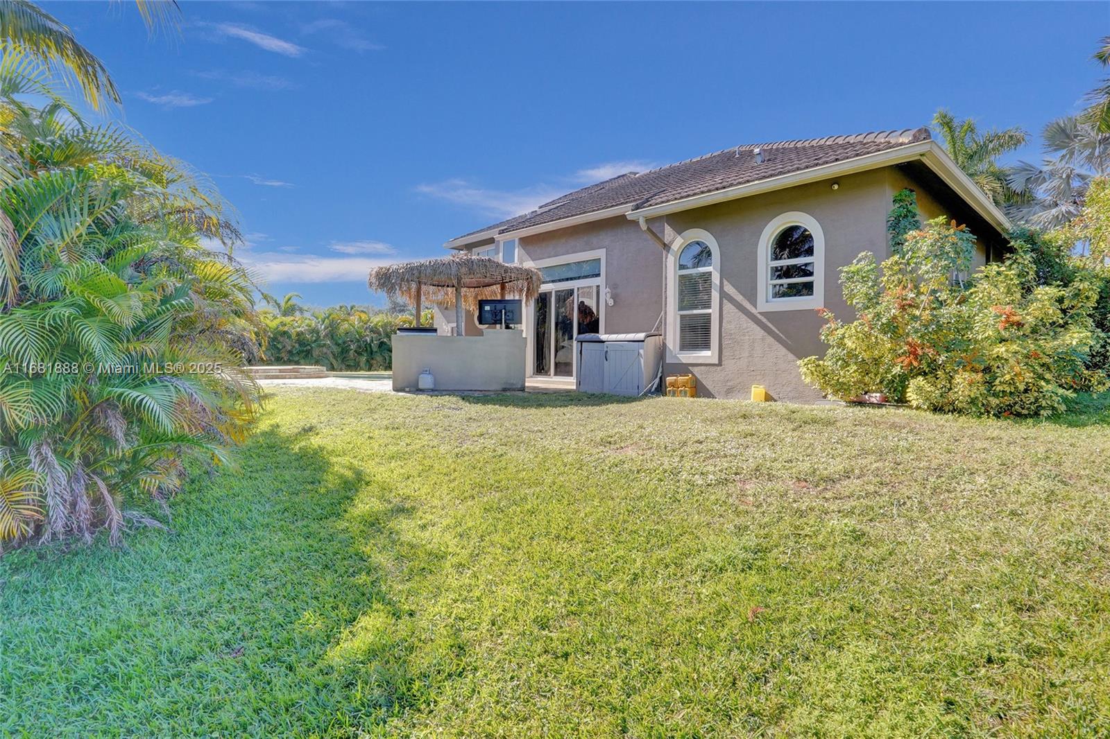 Resort style living built in 2008. 4-bed, 4-bath home now available with impact windows & doors! Private and comfortable residence features a formal living & dining room, ideal for entertaining. The spacious kitchen is equipped with S.S. appliances for cooking enthusiasts. Custom step-down bar for those family/friend gatherings. The master suite boasts high ceilings, a large bath with a jacuzzi tub, and a walk-in shower on the first floor. Upstairs are the other 3 bedrooms as well as loft area. Enjoy outdoor relaxation on the open back pool area with travertine tiles & outdoor Tiki with kitchen. The backyard offers a resort-style pool and entertainment area. Fenced for privacy with lush landscaping, this home is conveniently located near highways, shopping, dining, hospitals, & more.