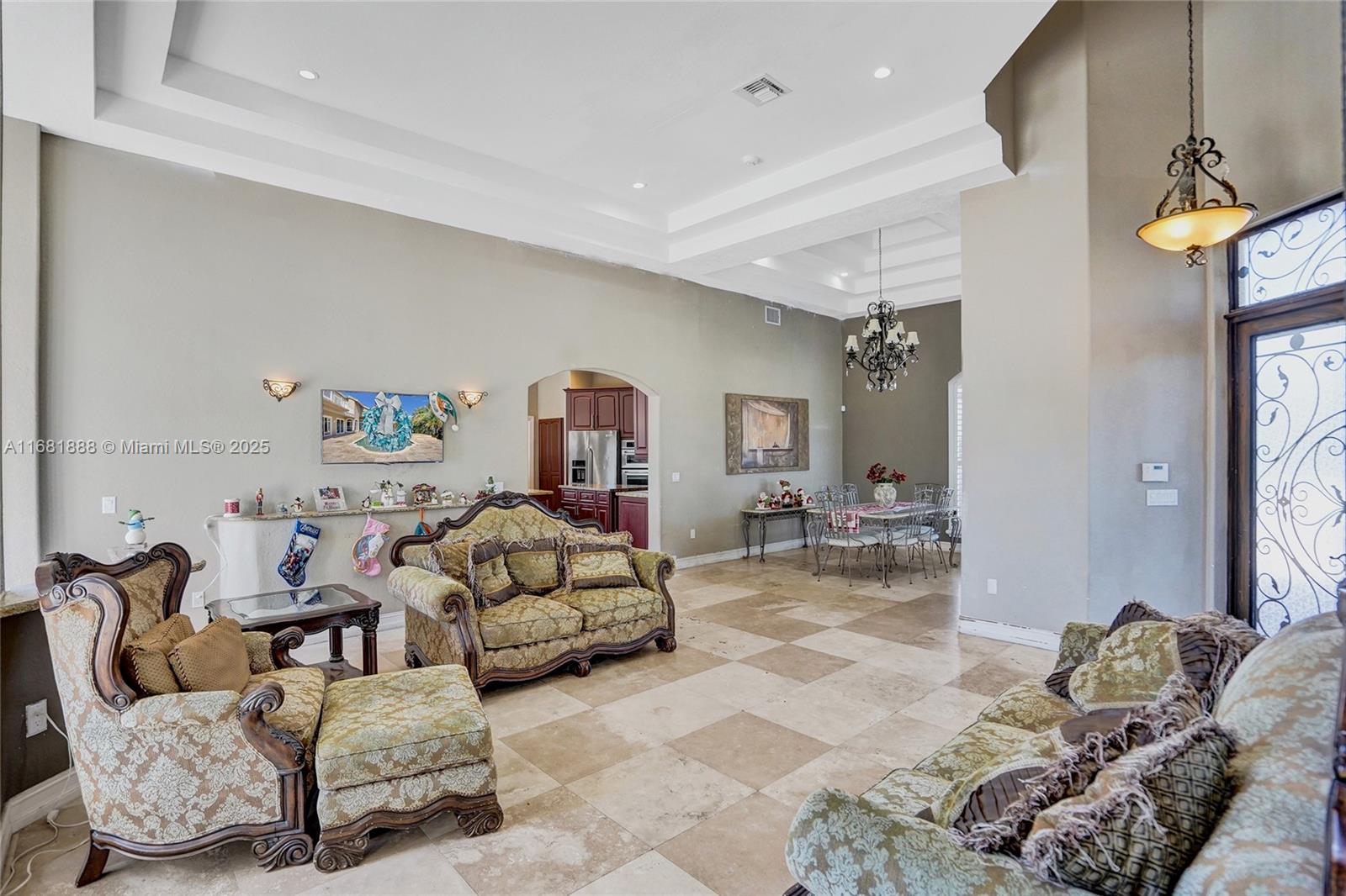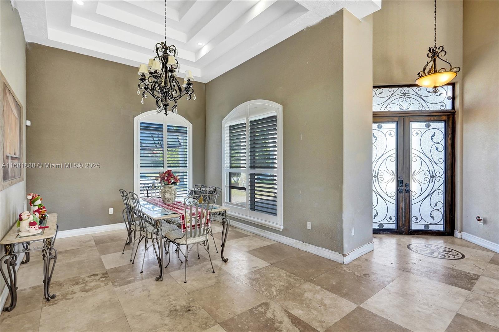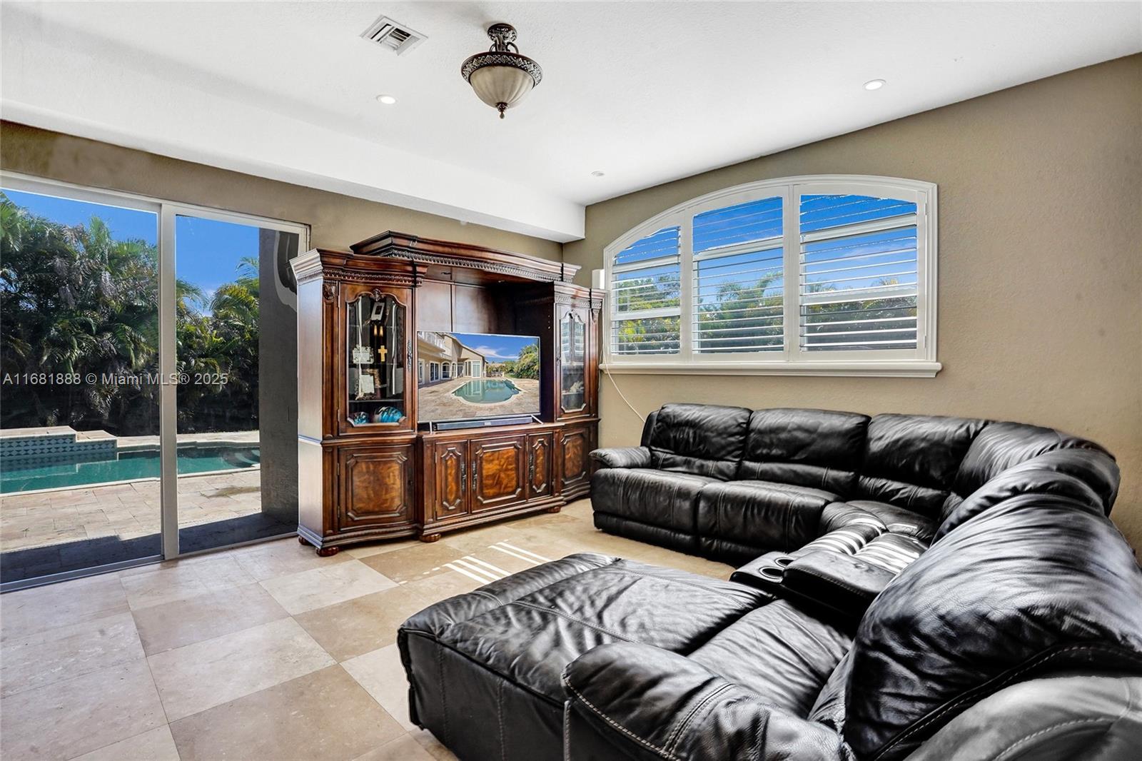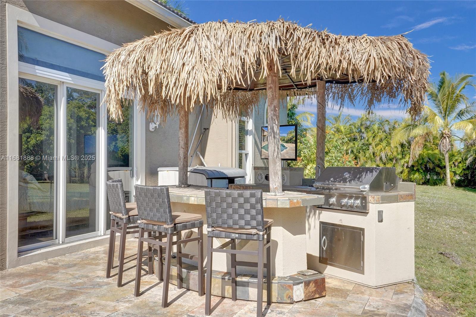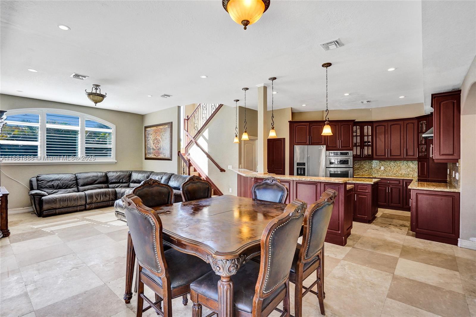 Resort style living built in 2008. 4-bed, 4-bath home now available with impact windows & doors! Private and comfortable residence features a formal living & dining room, ideal for entertaining. The spacious kitchen is equipped with S.S. appliances for cooking enthusiasts. Custom step-down bar for those family/friend gatherings. The master suite boasts high ceilings, a large bath with a jacuzzi tub, and a walk-in shower on the first floor. Upstairs are the other 3 bedrooms as well as loft area. Enjoy outdoor relaxation on the open back pool area with travertine tiles & outdoor Tiki with kitchen. The backyard offers a resort-style pool and entertainment area. Fenced for privacy with lush landscaping, this home is conveniently located near highways, shopping, dining, hospitals, & more.