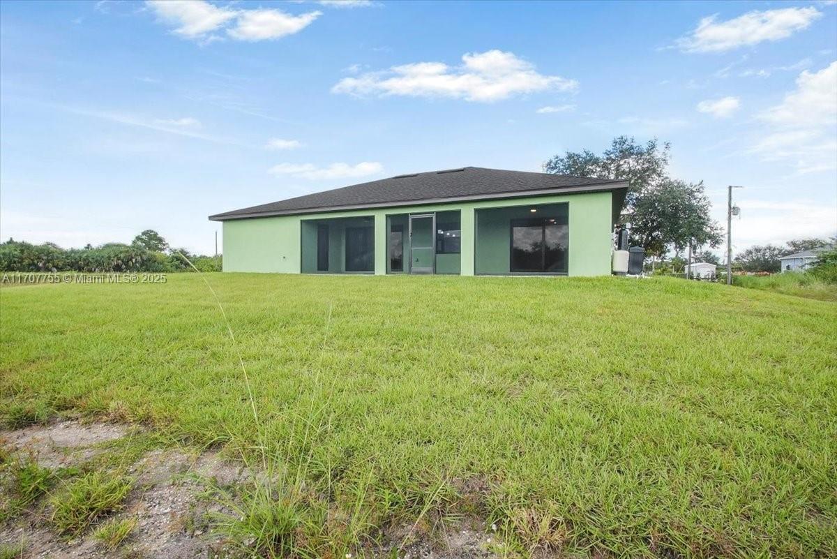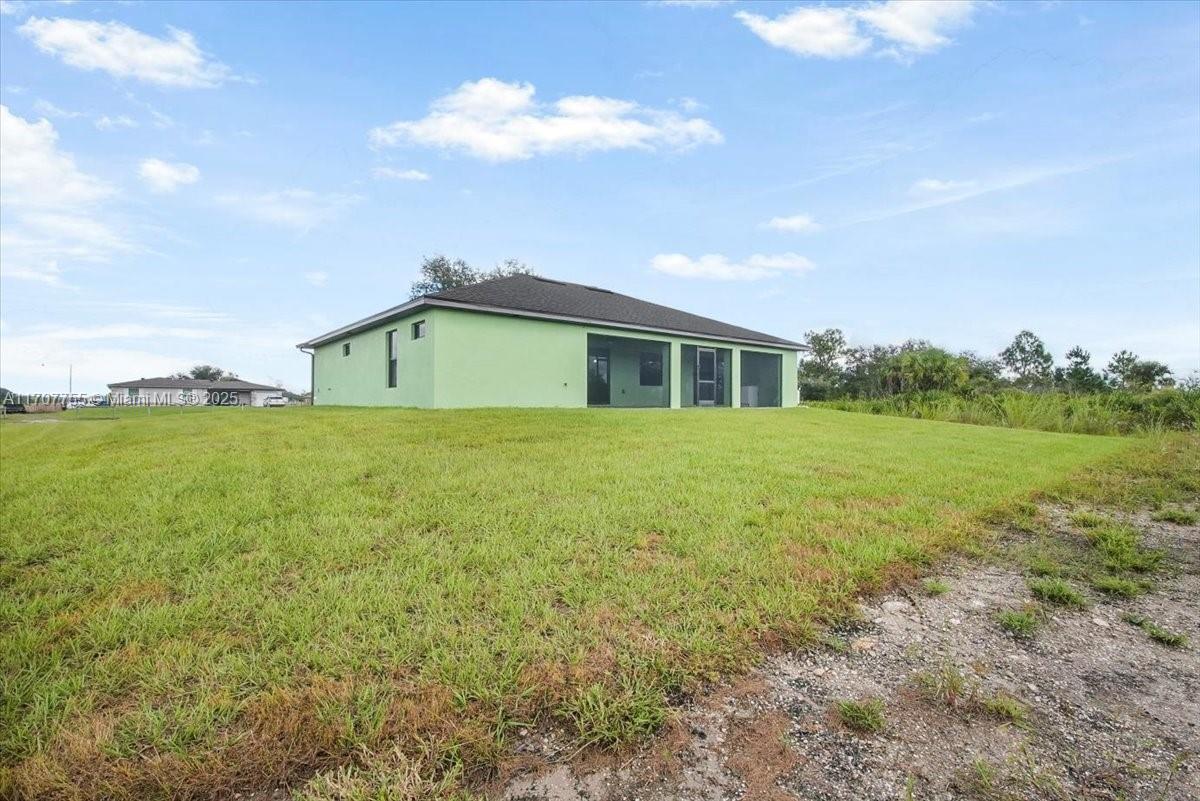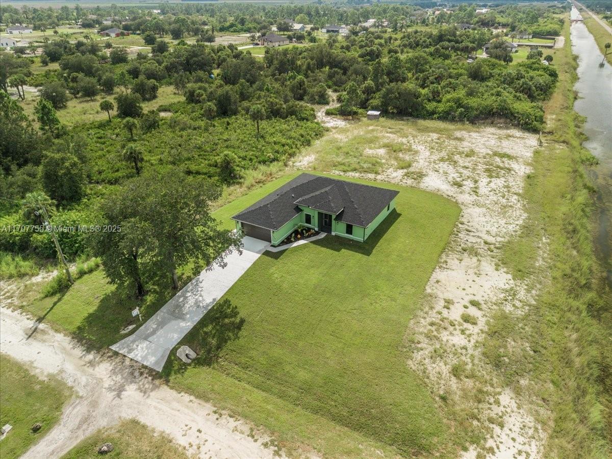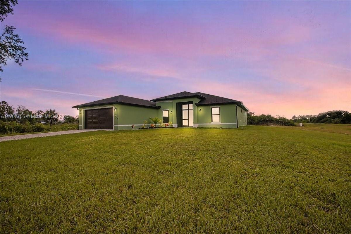 Ready for its New Owner! Beautiful 3BR, 3BA + Den home on 1.25 Acres. Features include granite countertops, center island with a sink & dishwasher, 2 master suites, automated sprinkler system & 2-10 New Home Warranty. Primary suite features his/her closets, sinks, & relaxing soaking tub. 2nd Master Suite bathroom has private door to lanai making a perfect private oasis for an in-law suite or active teenager. Entertain family and friends on the oversized screened lanai, while enjoying fishing in the nearby canal. Plenty of space to add a pool, a detached garage, barn, or other outbuildings. Barnyard animals are welcome (some restrictions). Don't miss out on the chance to live in the country yet close to shopping, I75, SWFL Airport, Casino. Make this home yours before it's too late!