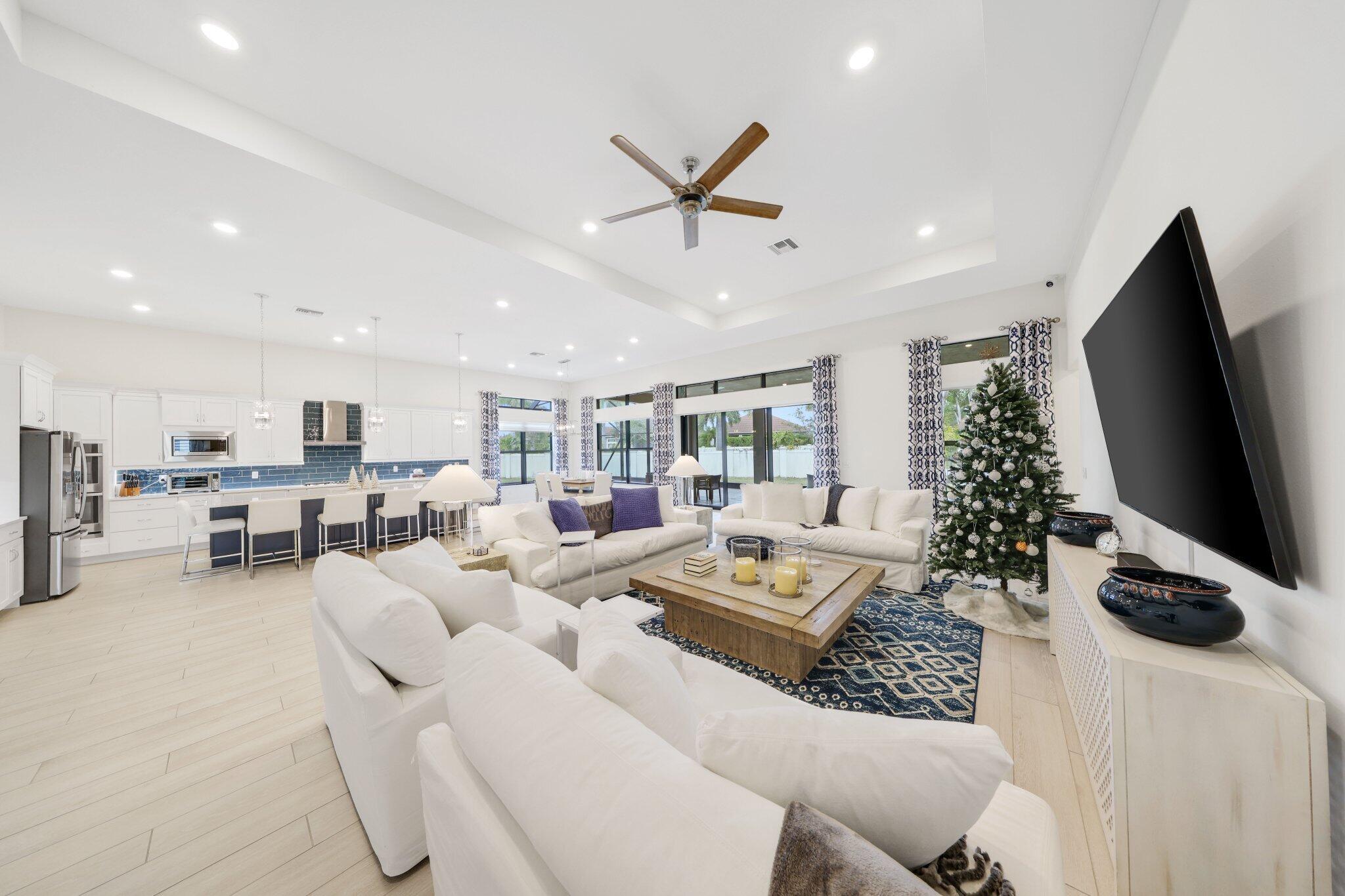 Welcome to the Soleil Model home at 9412 Porto Way in Four Seasons Parkland, where luxury and functionality converge. This exquisite residence offers 3,290 square feet of beautifully designed living space, featuring 2 Bedrooms, 2 1/2 bathrooms, a den/office and a 3 car garage. The highly crafted interior finishes exude elegance throughout. Culinary enthusiasts will adore the large gourmet kitchen, which flows seamlessly into a separate dining room, making it an entertainer's dream. The spacious primary bedroom retreat includes a spa-like bathroom, providing a serene escape. Outside, the screened-in lanai and heated swimming pool offer a perfect setting for relaxation and entertaining. Situated on a 16,003 square foot lot, this home epitomizes luxury.