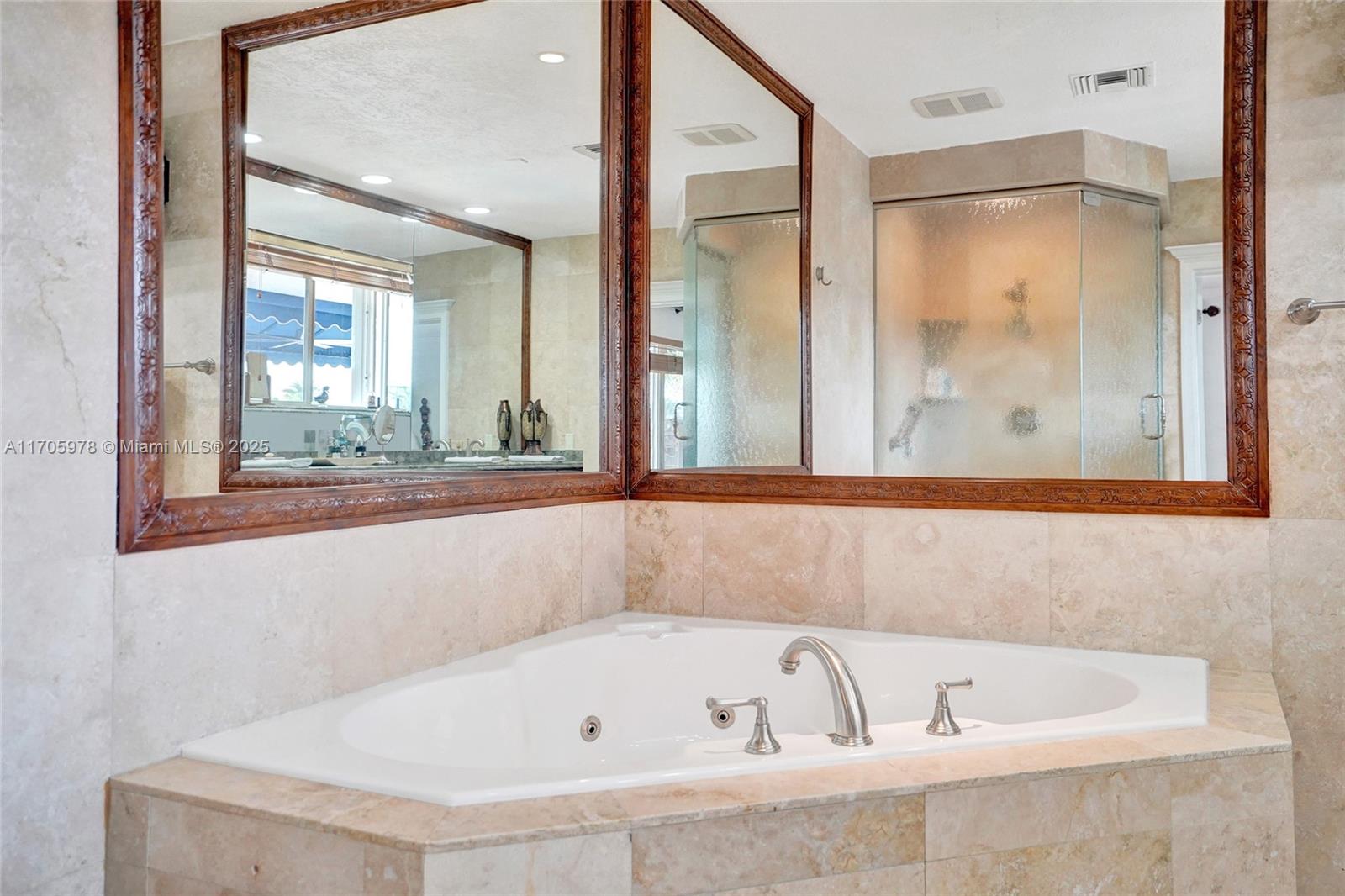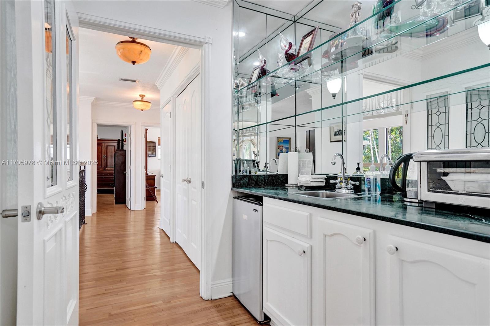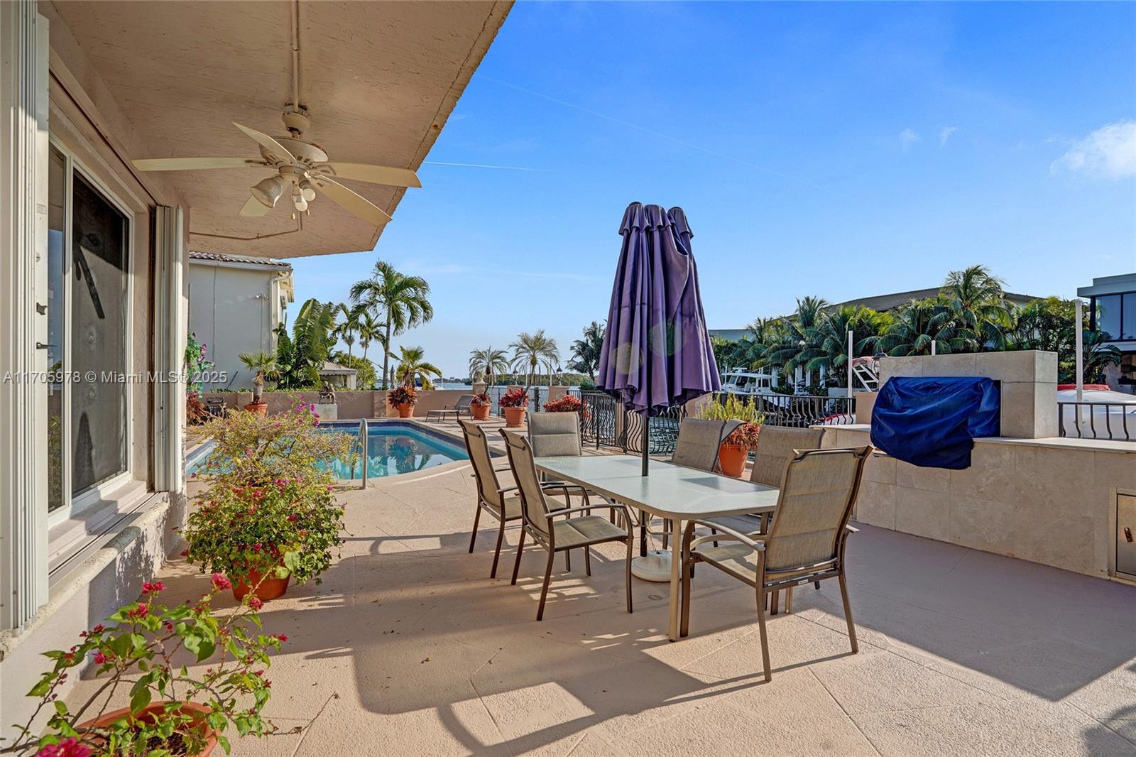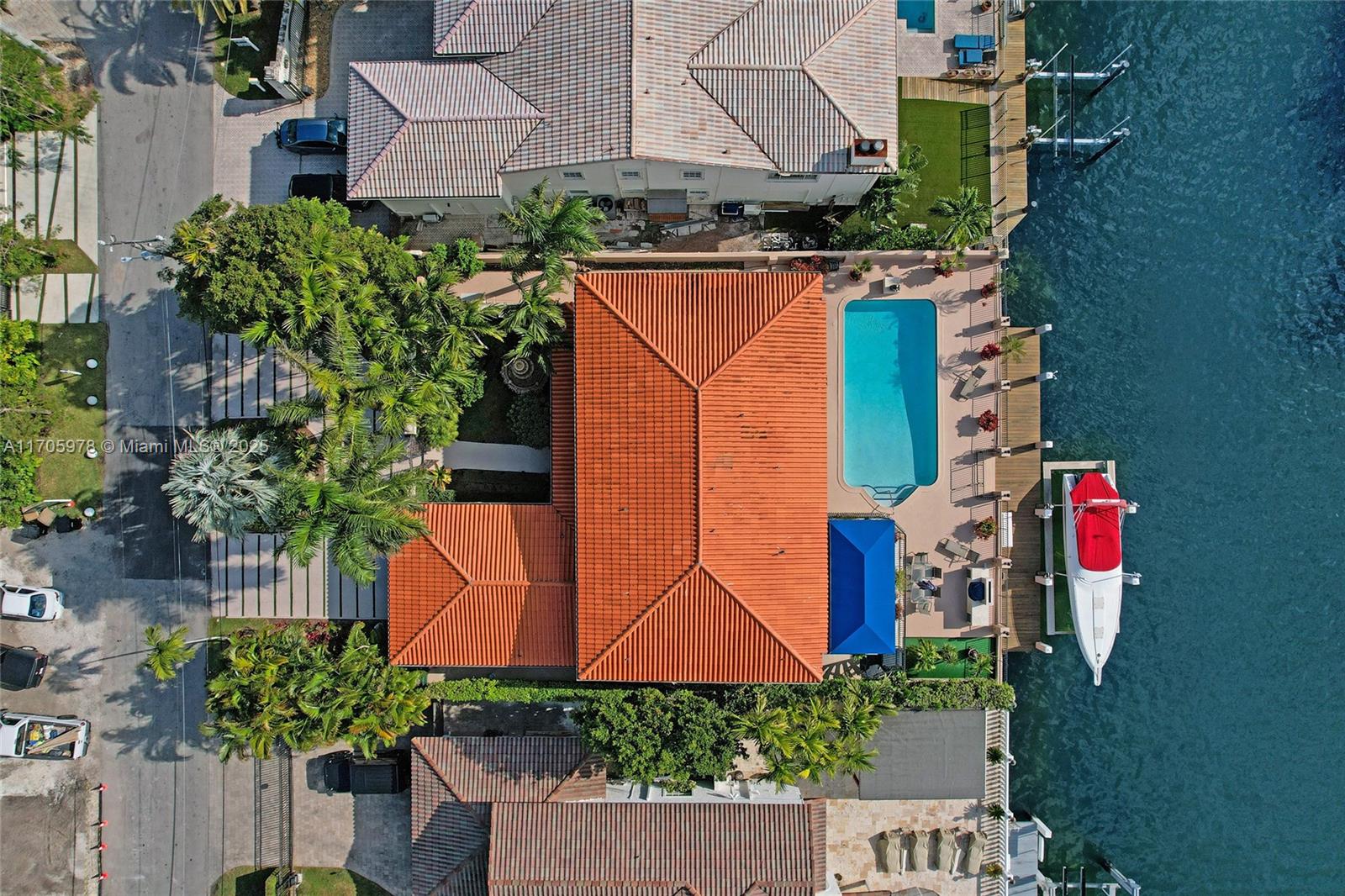 One of a kind with Bay views!!!! Located in the gated, police-protected community of Sans Souci Estates, this 2-story concrete home offers breathtaking open bay views and an extra-wide deep-water canal with ocean access just minutes away. Perfect for larger boats, it features a 20,000-lb boat lift and a sprawling outdoor entertaining area with a pool, lush landscaping, and up-lighting. Inside, enjoy 5BR/4BA, soaring ceilings, marble floors, and natural light throughout. The oversized master suite boasts one of the largest layouts in the area, a spa-like bath, and a huge private terrace overlooking the bay. The air-conditioned 2-car garage doubles as flexible space. This premium property shines day and night, offering luxury waterfront living at its finest.