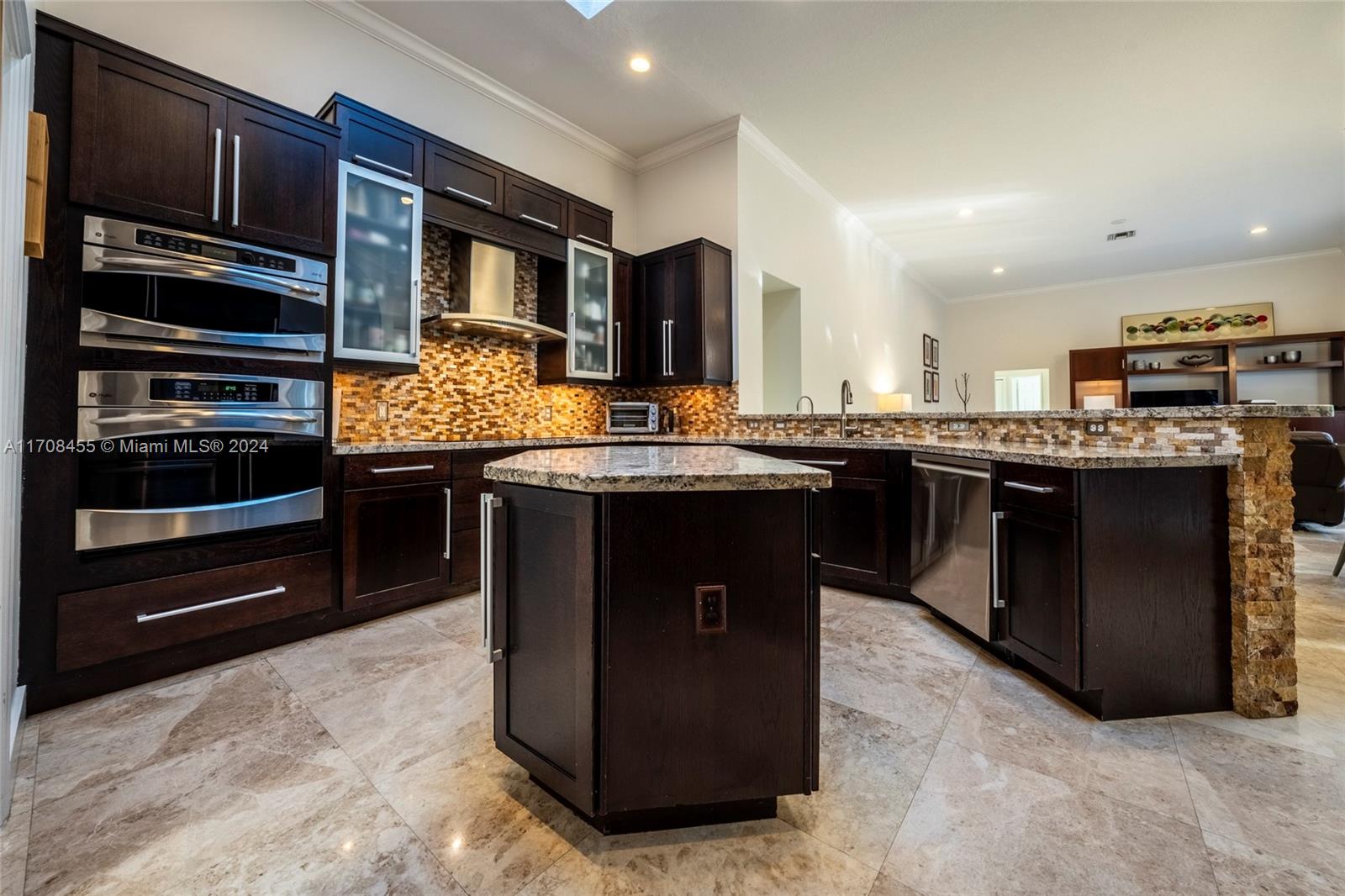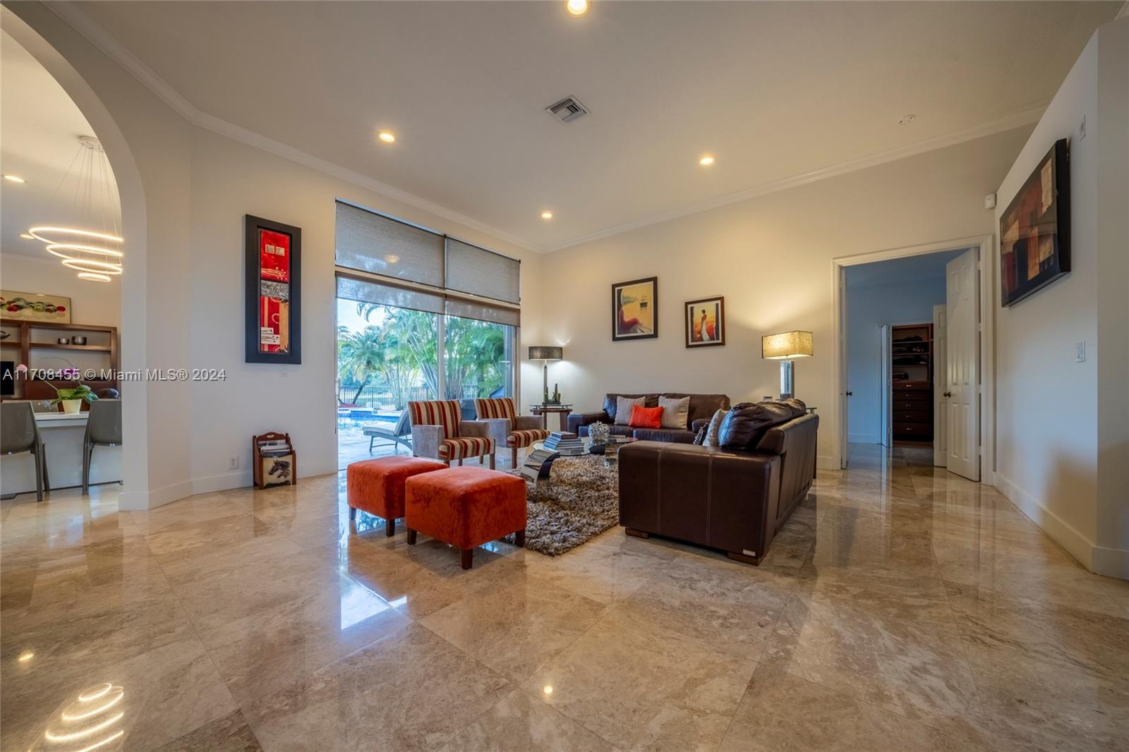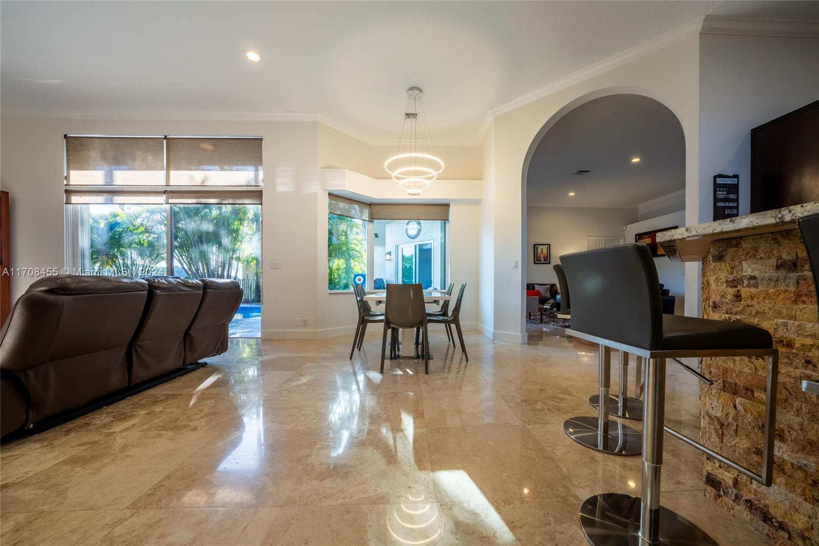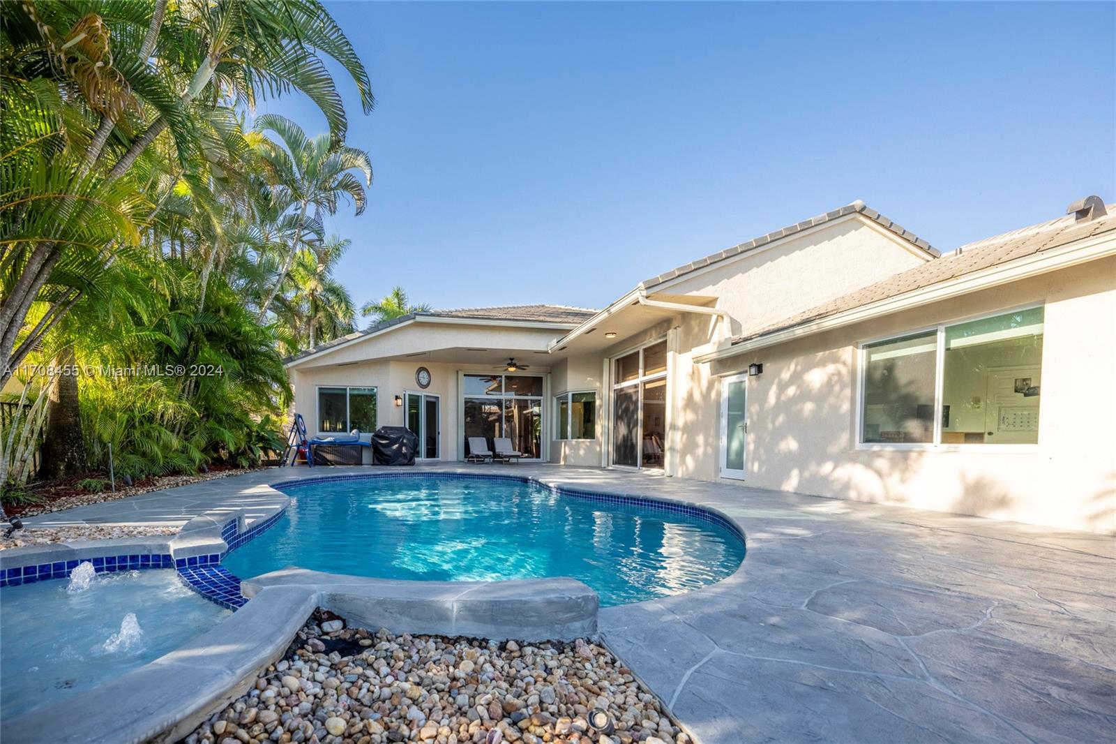 Fully Renovated Home in Weston Hills CC! This 5-bedroom, 4.5-bathroom home with an office and den offers modern elegance with a NEW ROOF (23), FULLY IMPACT WINDOWS (24), and a NEW HVAC system (22). The gourmet kitchen is a chef's paradise, featuring granite countertops, a center island, brand-new stainless steel appliances, a wine fridge, an osmosis-alkaline water system, and an oversized pantry. Enjoy 24x24 marble flooring in the living areas and European wooden floors in the owner’s suite, office, and guest room. Step outside to your private oasis, complete with a resurfaced Diamond Brite freeform pool with a fountain, a new pool deck, and a covered patio with a cabana bath. Luxury, style, and comfort await—schedule your tour today!