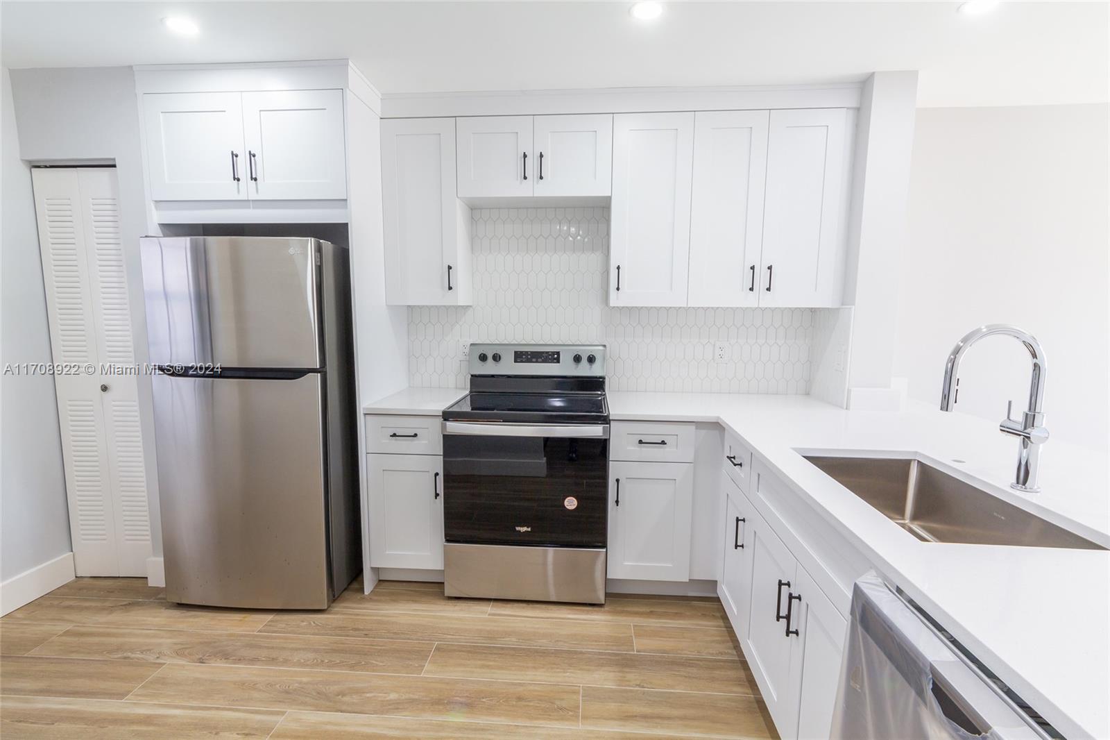 Beautifully renovated lake view townhome located in the 24/7 guard gated community of Pierpointe II. This bright and spacious 3-bedroom, 2.5-bath corner unit was elegantly updated with a new kitchen with quartz counters, white wood cabinets, stainless steel appliances, all-new bathrooms, new baseboards, and new floors with LVP downstairs and carpet upstairs. Enjoy a new A/C system, new water heater, and impact windows and doors for full hurricane protection. Washer and Dryer inside the unit. Ample fenced patio with access to the lake and walking path. Complete external building renovation just 3 years ago, new roof, new stucco, and paint. Directly across from the community pool. Near Shopping and transportation. 700+ Credit Score Requirement.