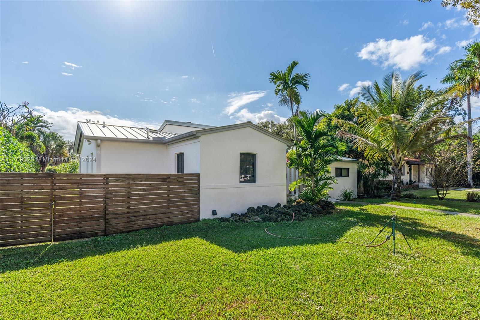 Single family home on beautiful tree line street in Miami Shores. This 3bdrm/2 bath home features an open concept with attached garage. The home underwent construction for an addition and new metal roof 8 years ago. High ceilings with beautiful skylights and beams bring so much charm to this home. Large backyard deck area perfect for grilling, and Private patio off master to back yard. Owner also has a 500 underground propane tank installed for the built in generator for the home. Home has an ally way with private access to the one car garage. Seller to contribute 10k for cosmetic repairs