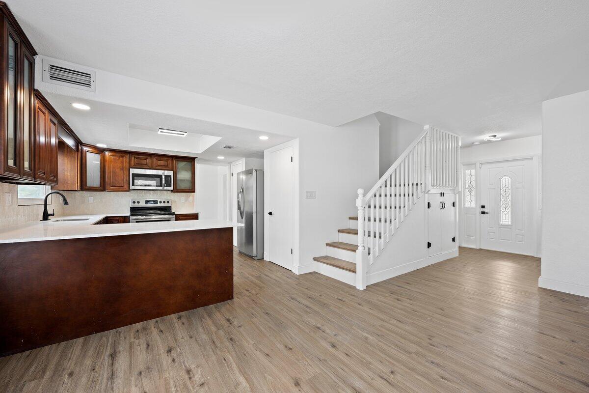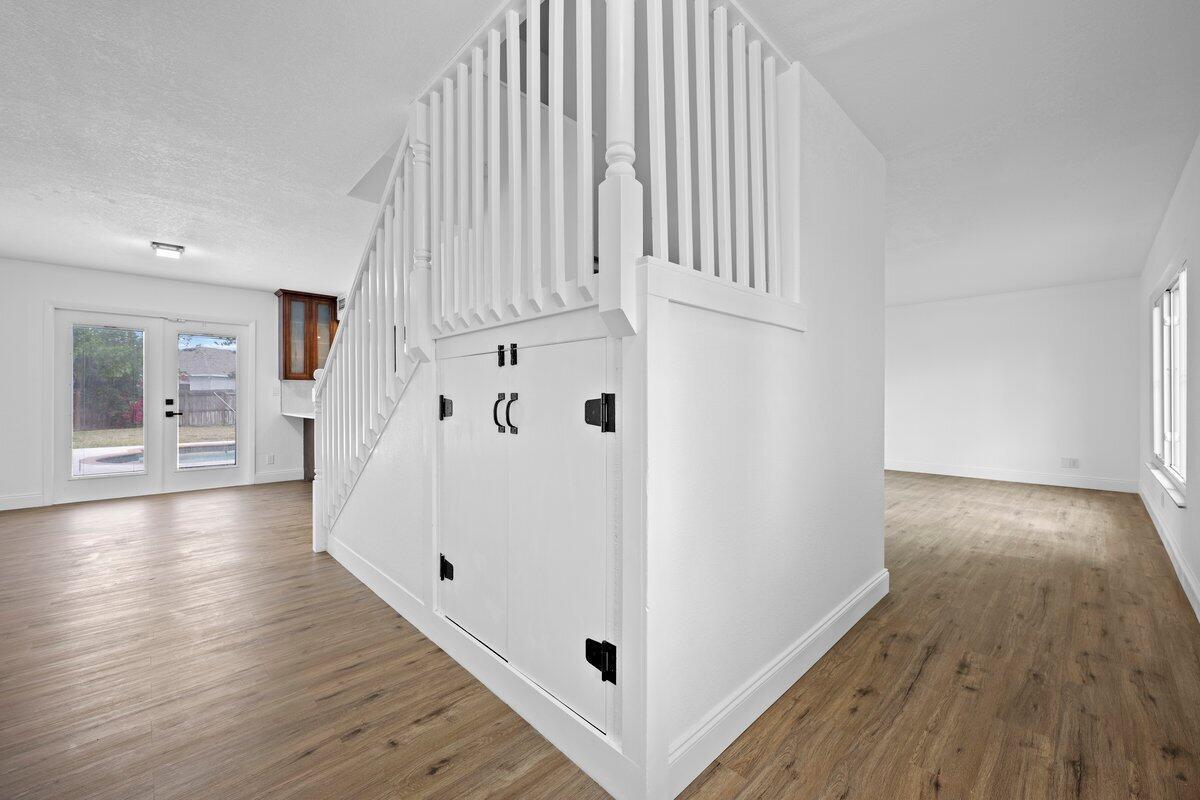 IMPACT WINDOWS = lower insurance. This is the most affordable renovated pool home for miles around in St lucie. 4 bedrooms yes, but some of the bedrooms are smaller. Beautiful luxury lifetime warranty plank flooring, Large open living space downstairs for entertaining or living. Corner lot with extra large yard and of course the pool! Designer inspired Bathrooms with beautiful tiles. Oversized large 2 car garage. Back yard fenced to allow pets to roam. Previously under contract and APPRAISED for 410,000. LISTED TO MOVE under appraisal value . Don't miss out--schedule your private showing today!