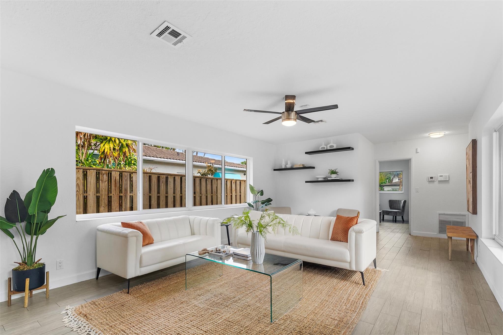 Welcome to this charming 2 bedroom, 2 bathroom home in desirable Lake Ridge positioned on a corner lot providing additional privacy and tranquility. This home perfectly blends comfort, style, and functionality, this beautiful residence is a must-see. Key features include, impact windows and doors, updated kitchen with stainless steel appliances, brick fireplace elegantly dividing living and dining rooms and spacious laundry room with ample storage. Fenced-in backyard oasis with deck, perfect for outdoor entertaining. Lake Ridge is the perfect suburb of Ft. Lauderdale located 1.5 Miles from Ocean and Las Olas, Walking distance to Gateway theater, shopping and restaurants and 1/2 mile to Galleria Mall, Holiday Park and Dog Park. No HOA/Restrictions. See attachments for insurance inspections