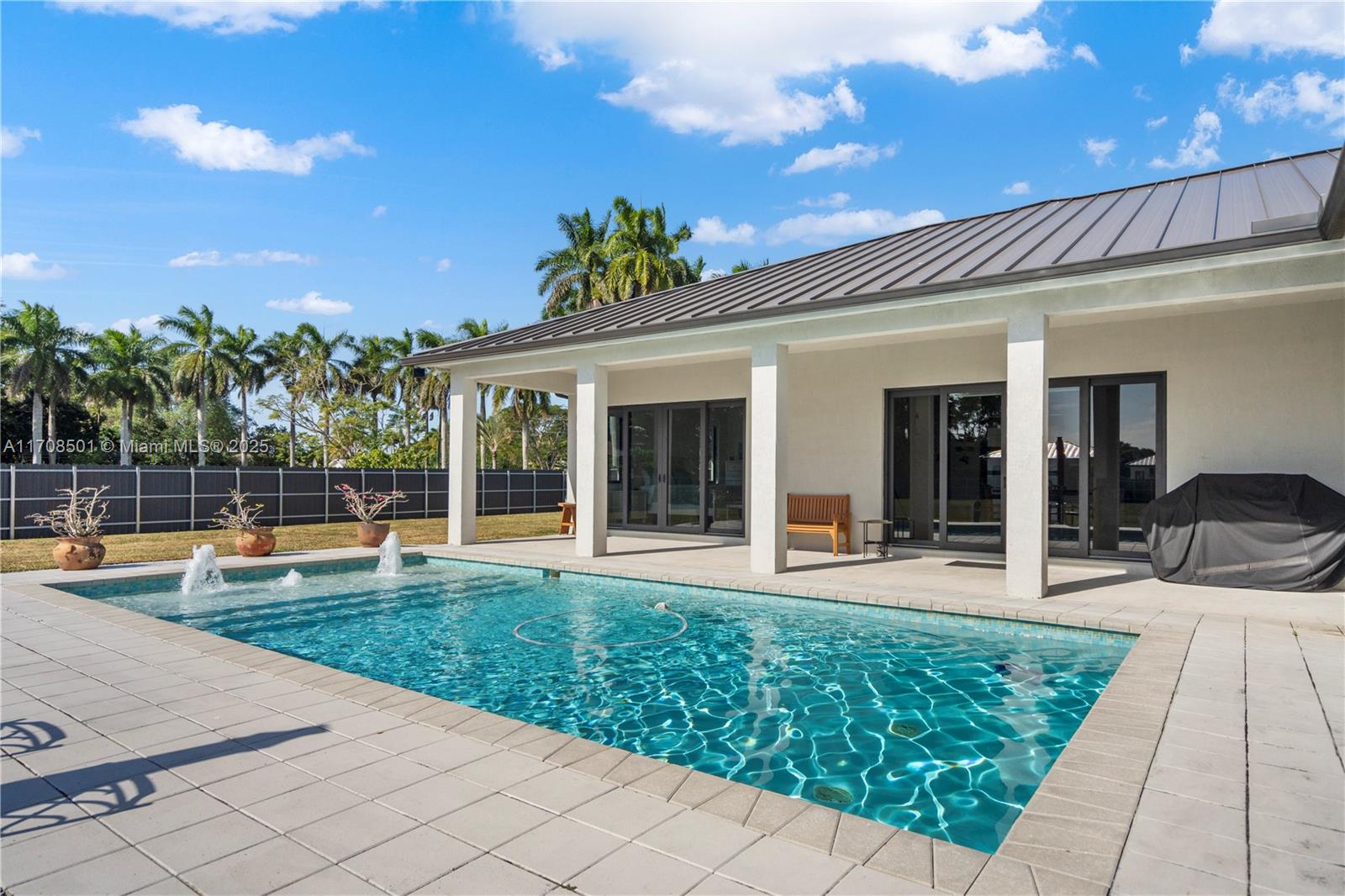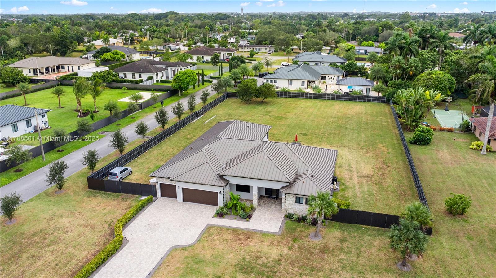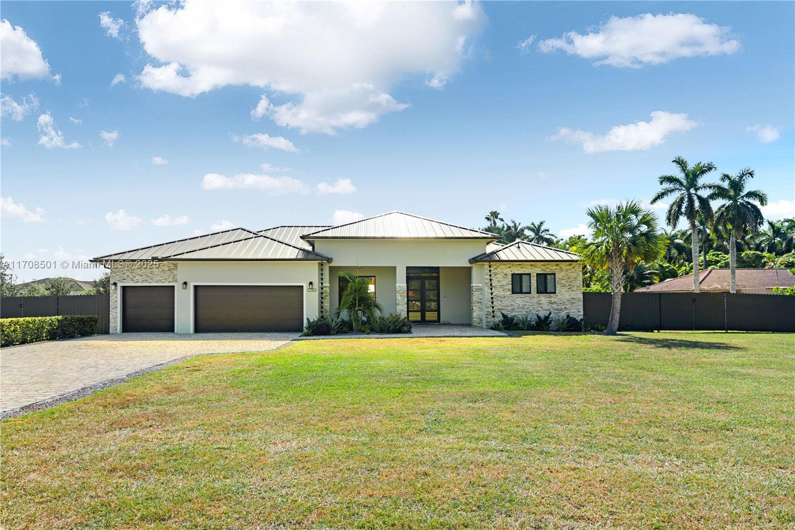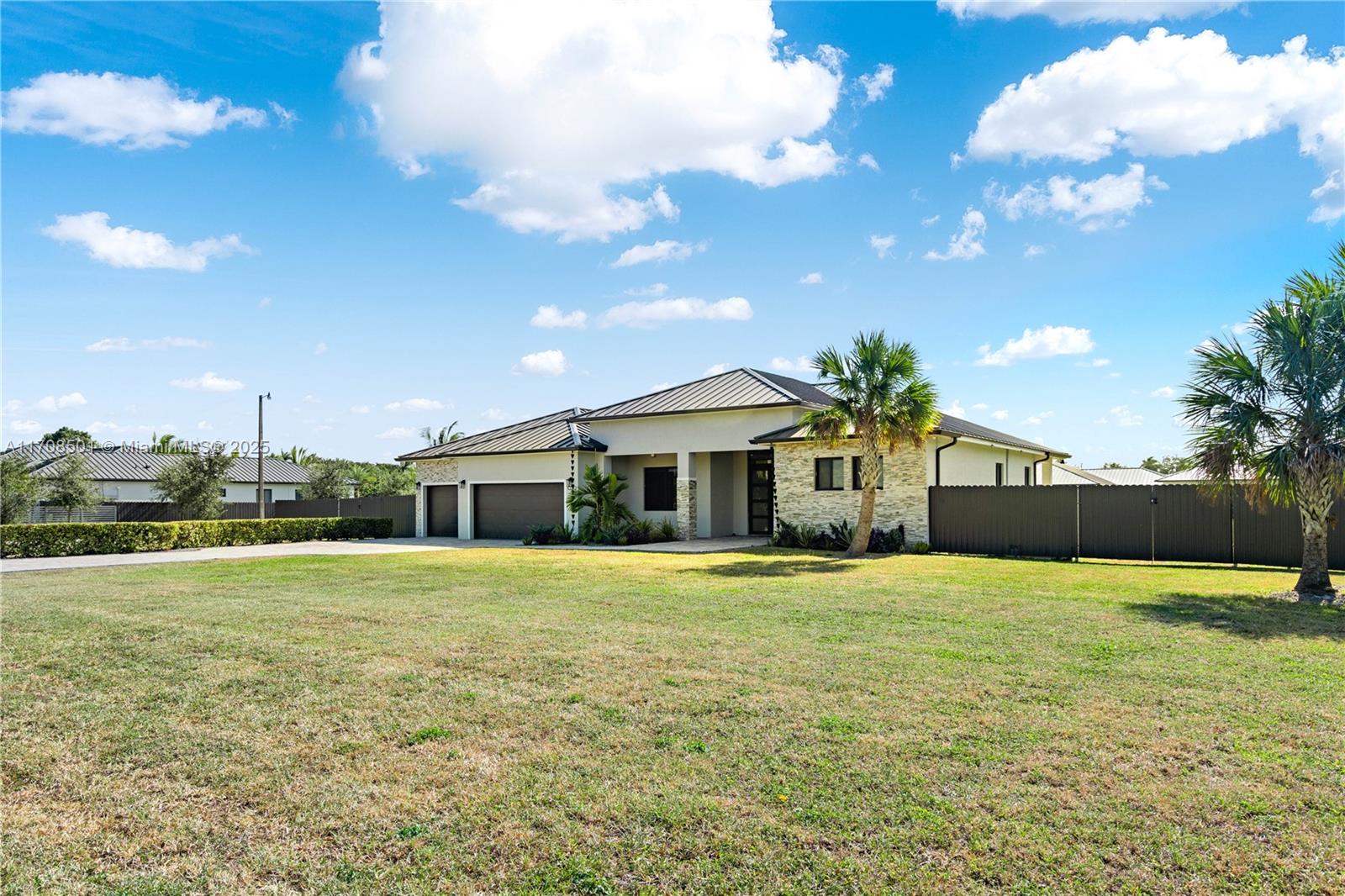 Step into the luxurious Avocado Estate, a stunning 5-bedroom, 4-bathroom home with a 3-car garage, situated on a sprawling 1-acre property. This exquisite residence features a saltwater Pool with captivating LED lights and a stunning aqua quartz finish. Inside, you'll find modern touches such as porcelain wood plank flooring, a dream kitchen featuring top-of-the-line Samsung appliances, quartz countertops and a grand cooking island with pull-out cabinets. The custom walk-in closets provide ample storage, while flat screen TVs in every room & a smart electric fireplace offer the ultimate in convenience and comfort. Ideal for hosting extended family or guests, the in-law suite offers a private sanctuary. Additional highlights include metal roof, impact doors/windows & private metal fence..
