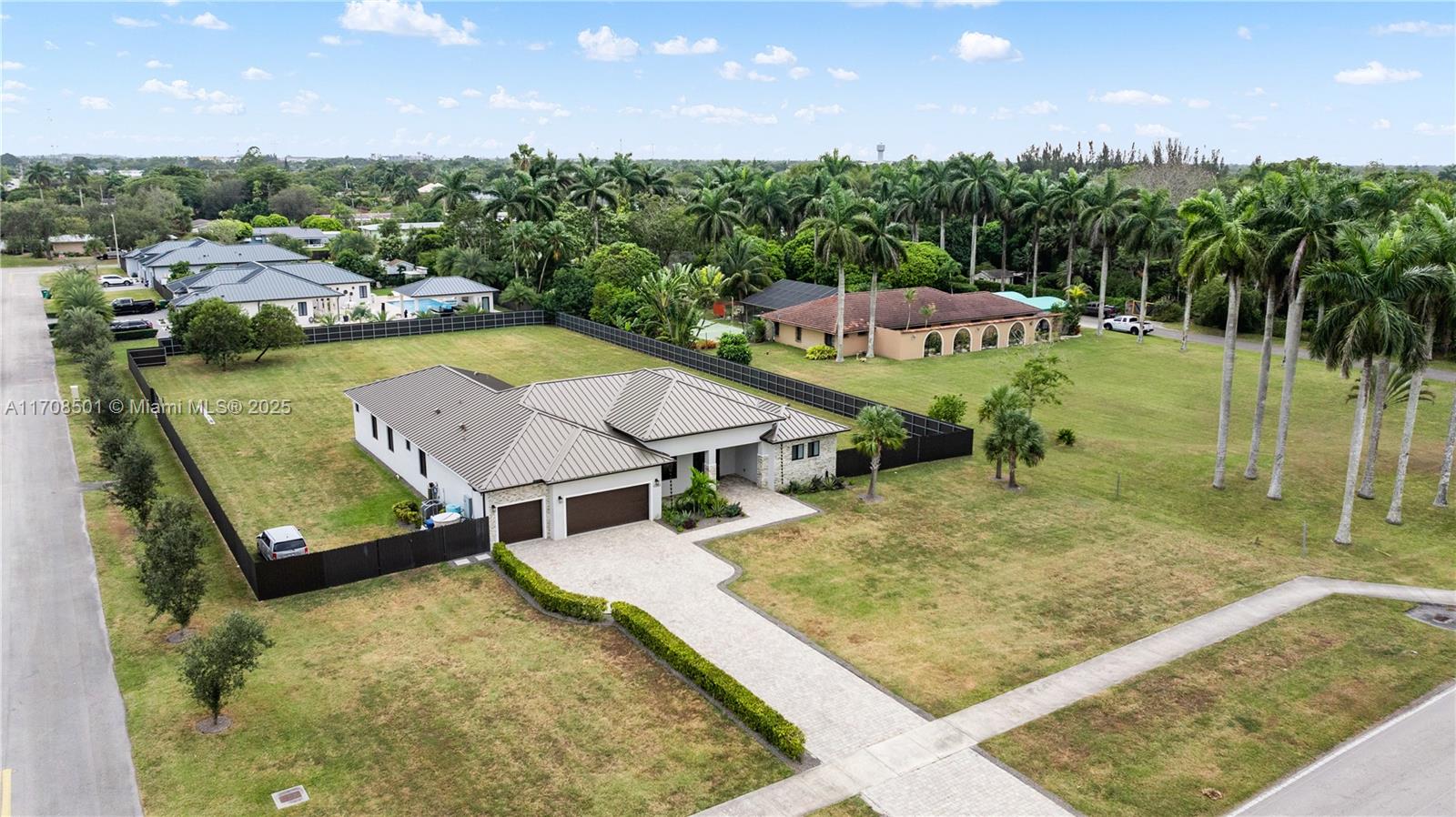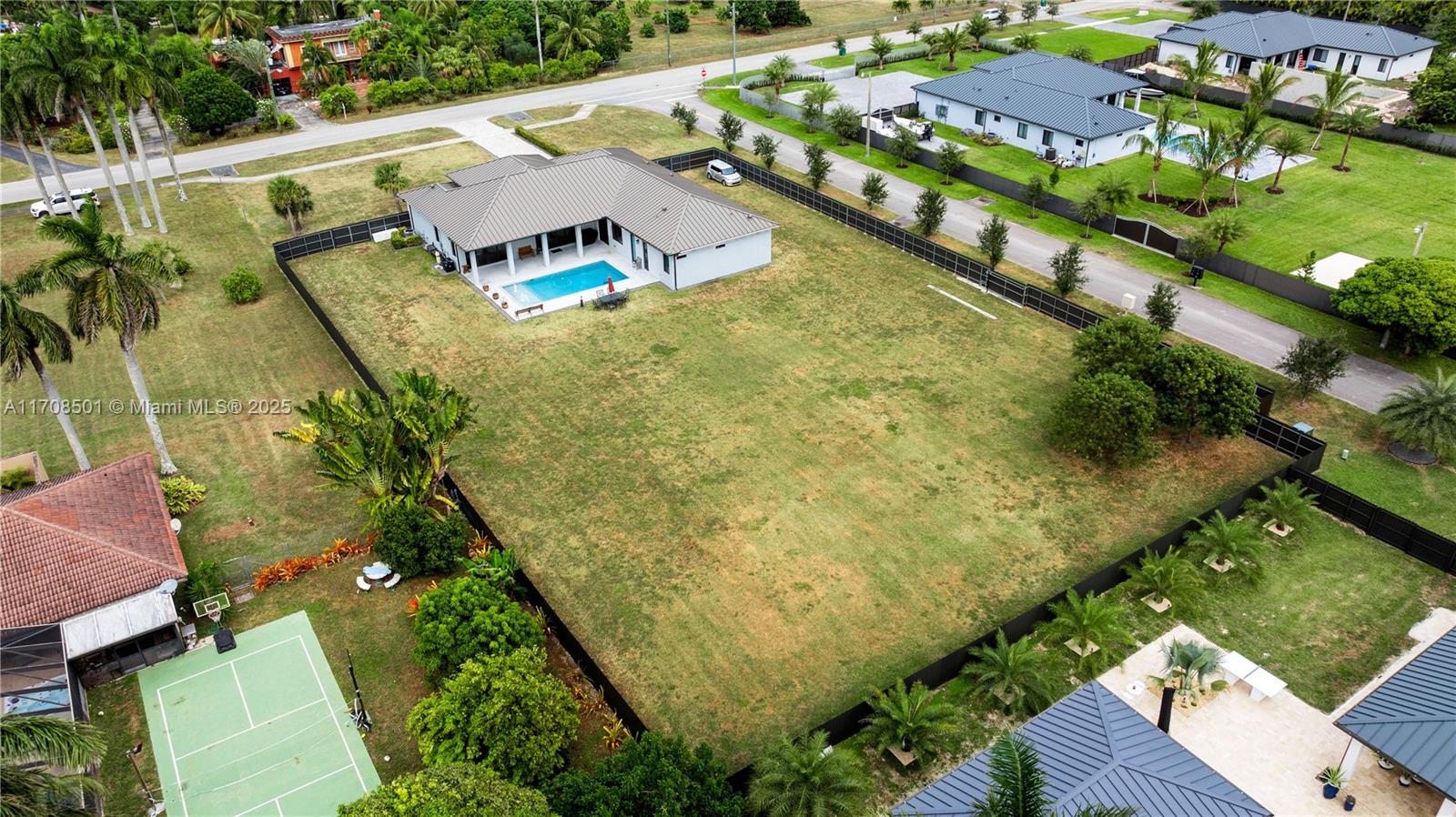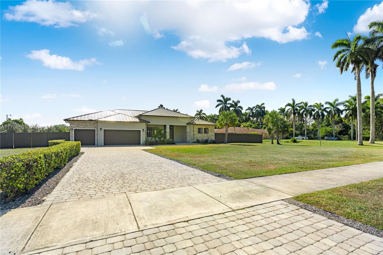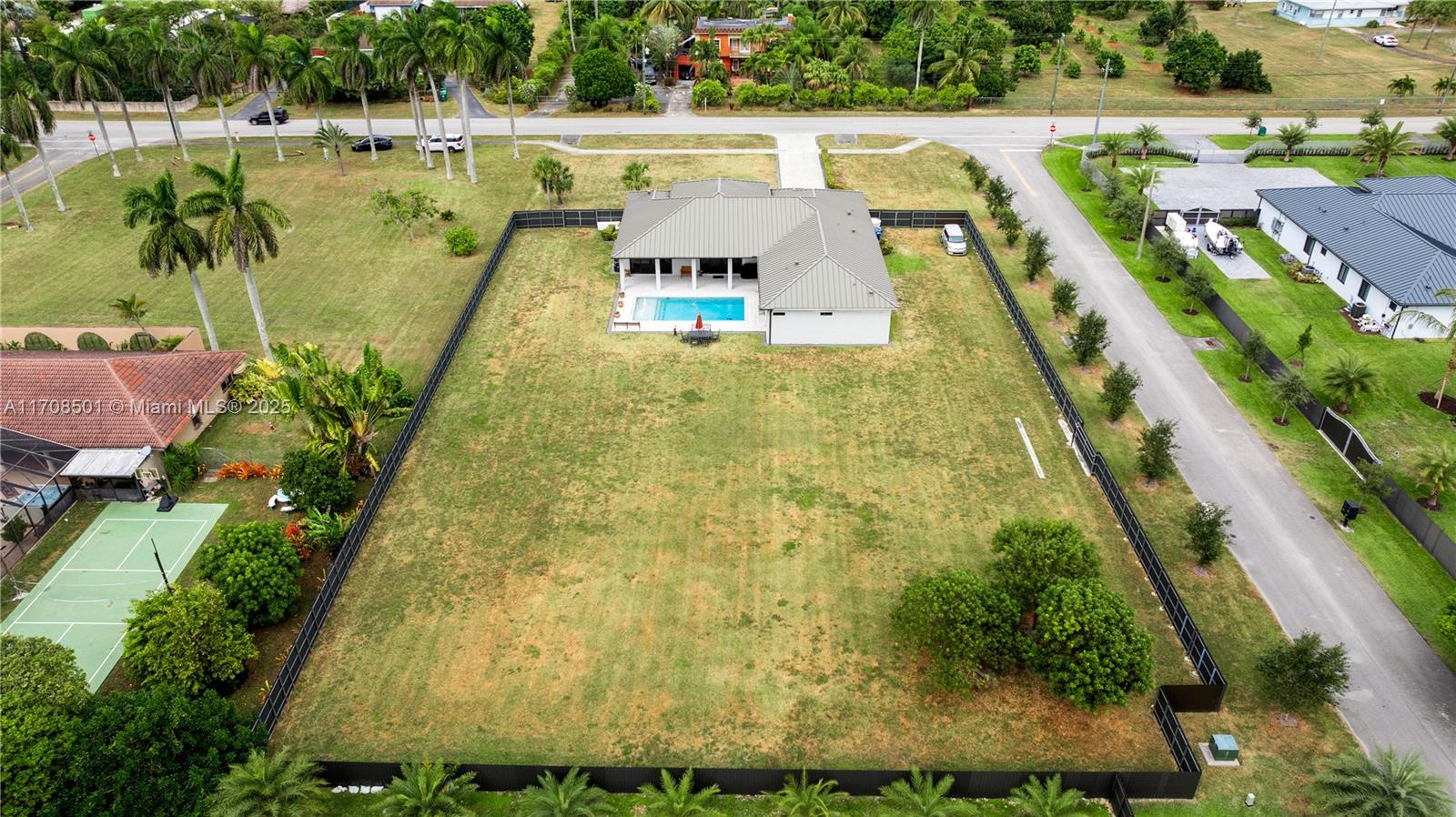 Step into the luxurious Avocado Estate, a stunning 5-bedroom, 4-bathroom home with a 3-car garage, situated on a sprawling 1-acre property. This exquisite residence features a saltwater Pool with captivating LED lights and a stunning aqua quartz finish. Inside, you'll find modern touches such as porcelain wood plank flooring, a dream kitchen featuring top-of-the-line Samsung appliances, quartz countertops and a grand cooking island with pull-out cabinets. The custom walk-in closets provide ample storage, while flat screen TVs in every room & a smart electric fireplace offer the ultimate in convenience and comfort. Ideal for hosting extended family or guests, the in-law suite offers a private sanctuary. Additional highlights include metal roof, impact doors/windows & private metal fence..