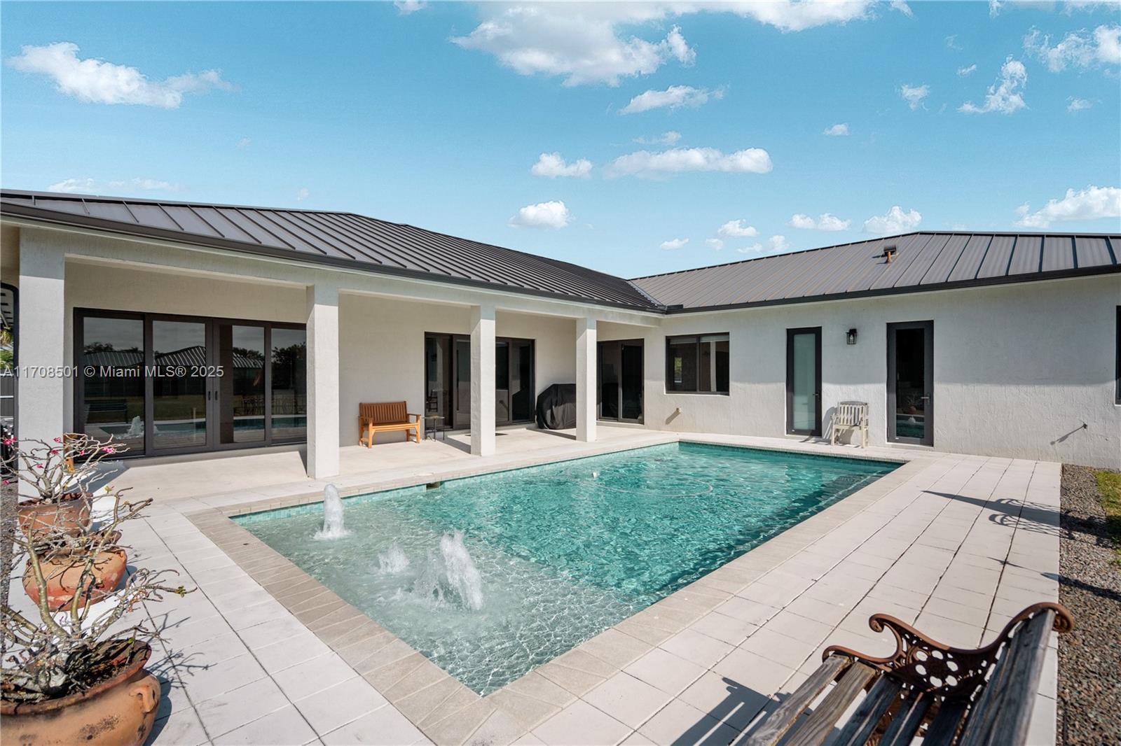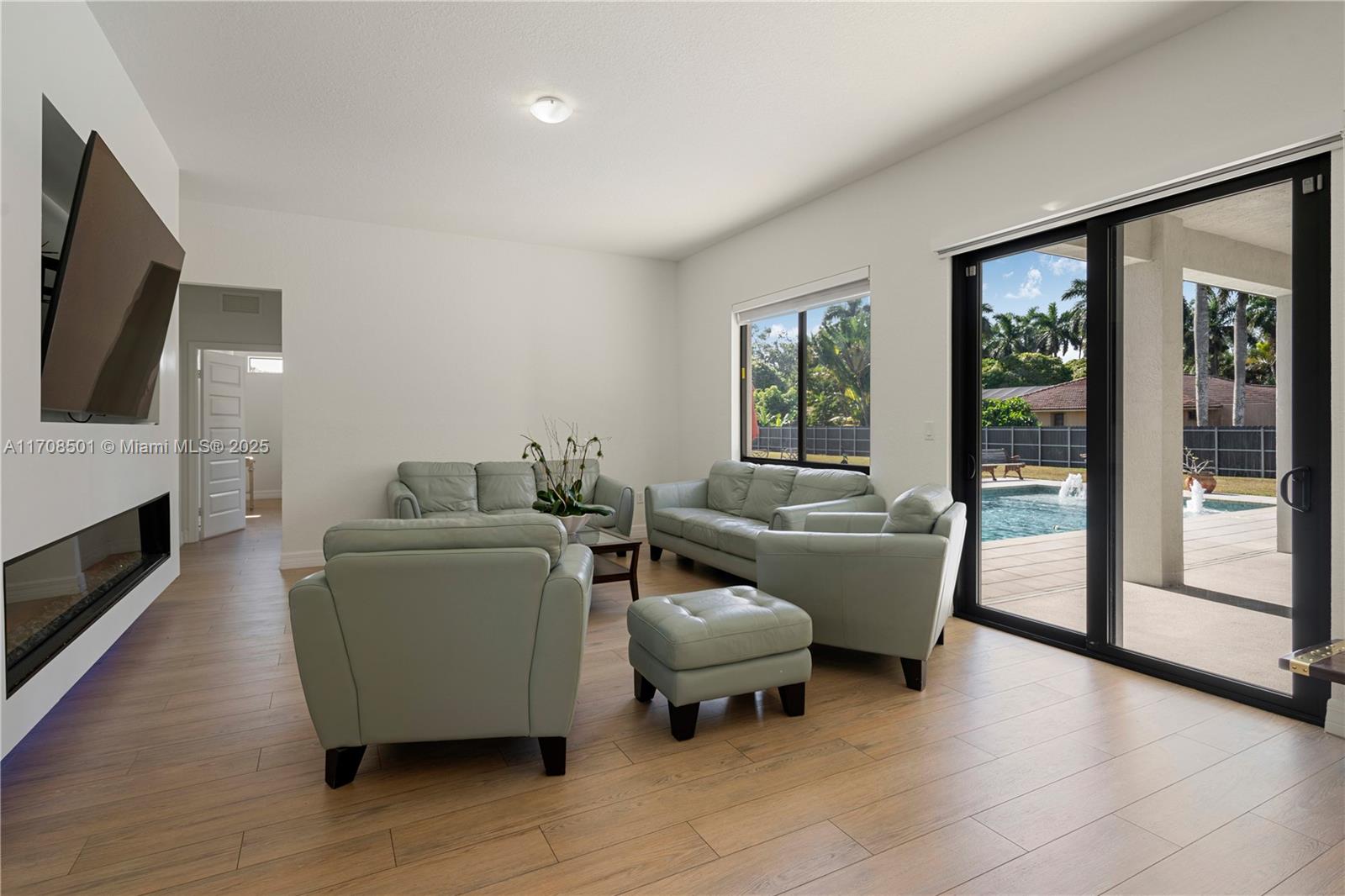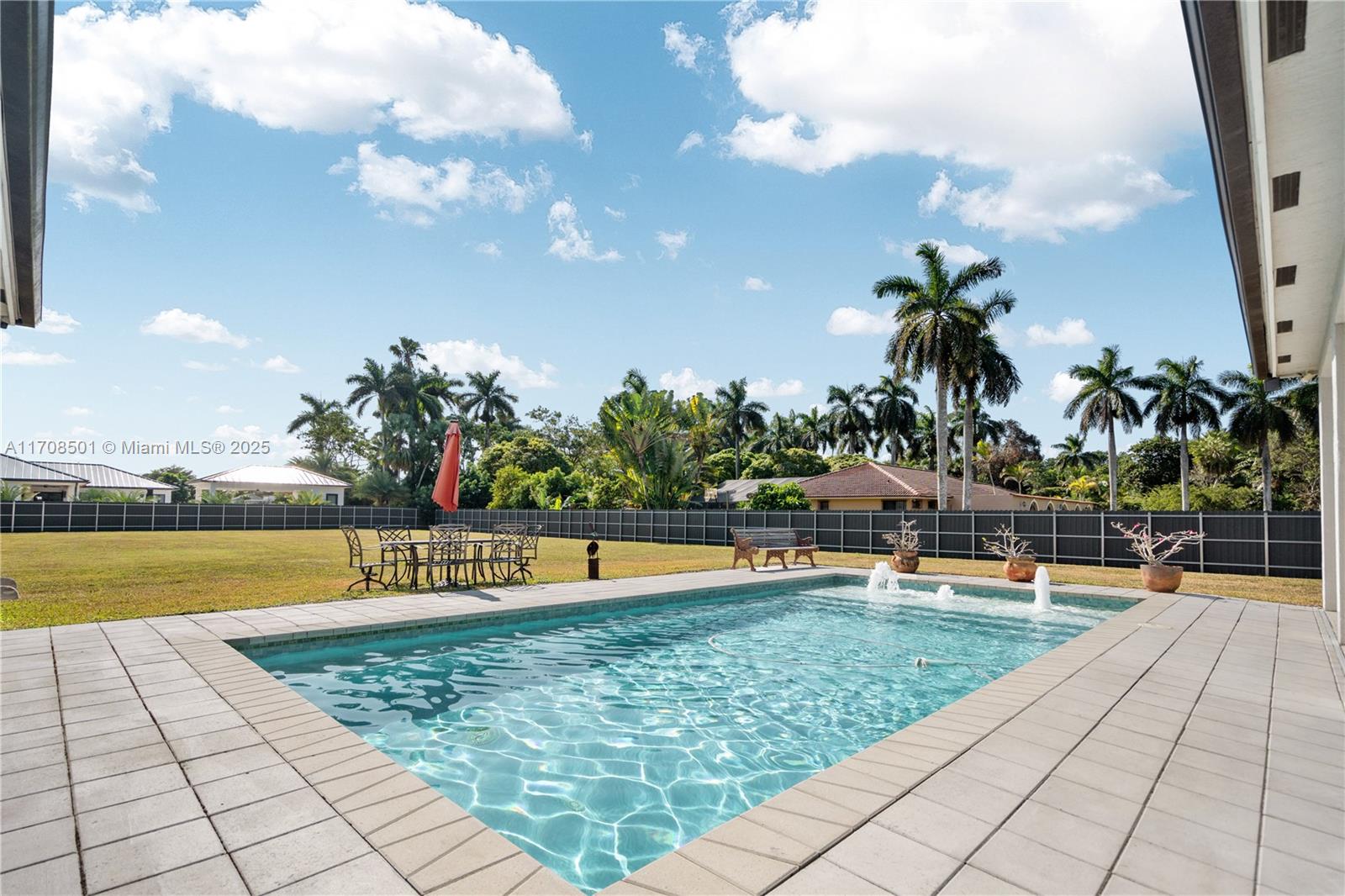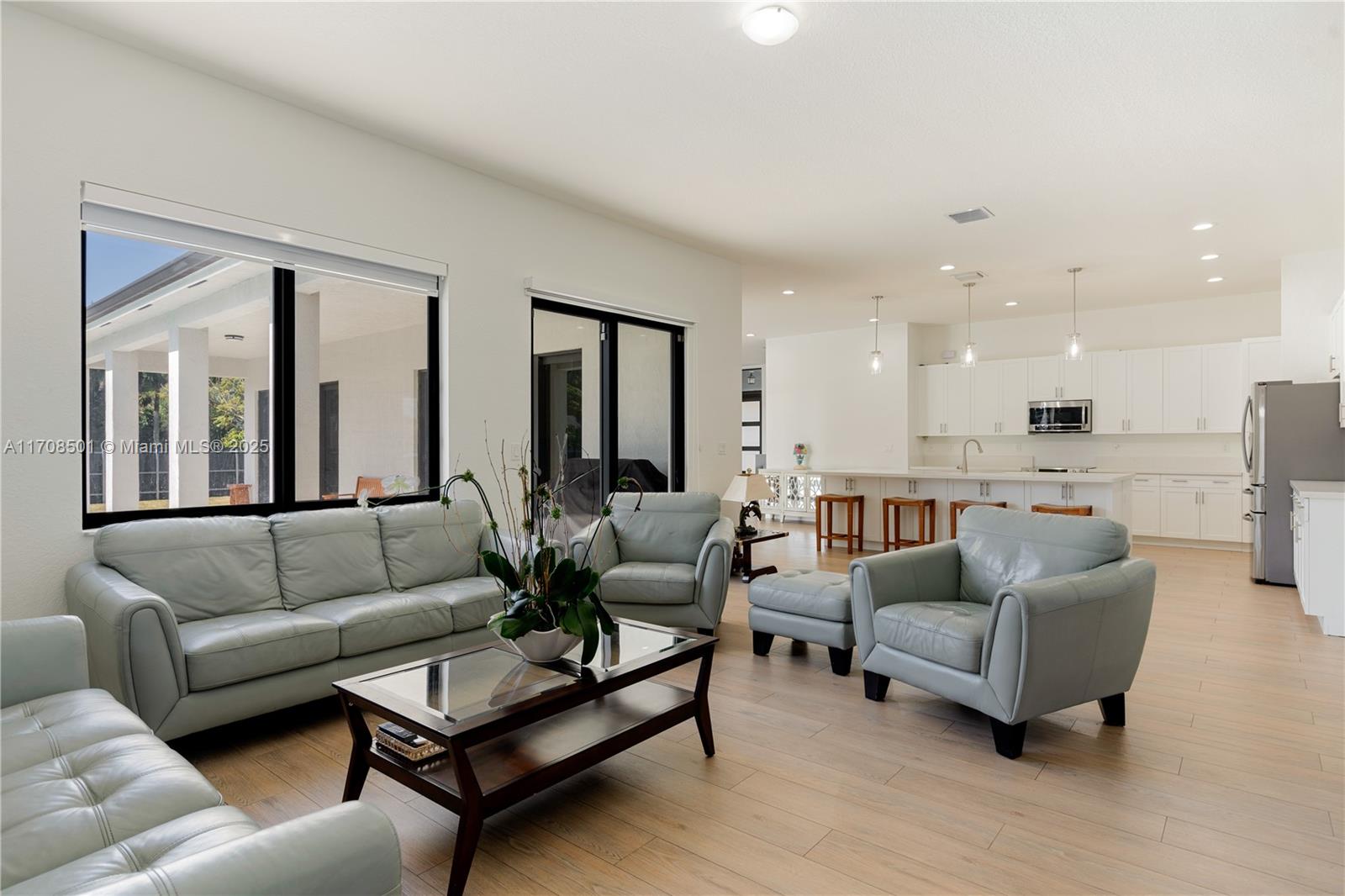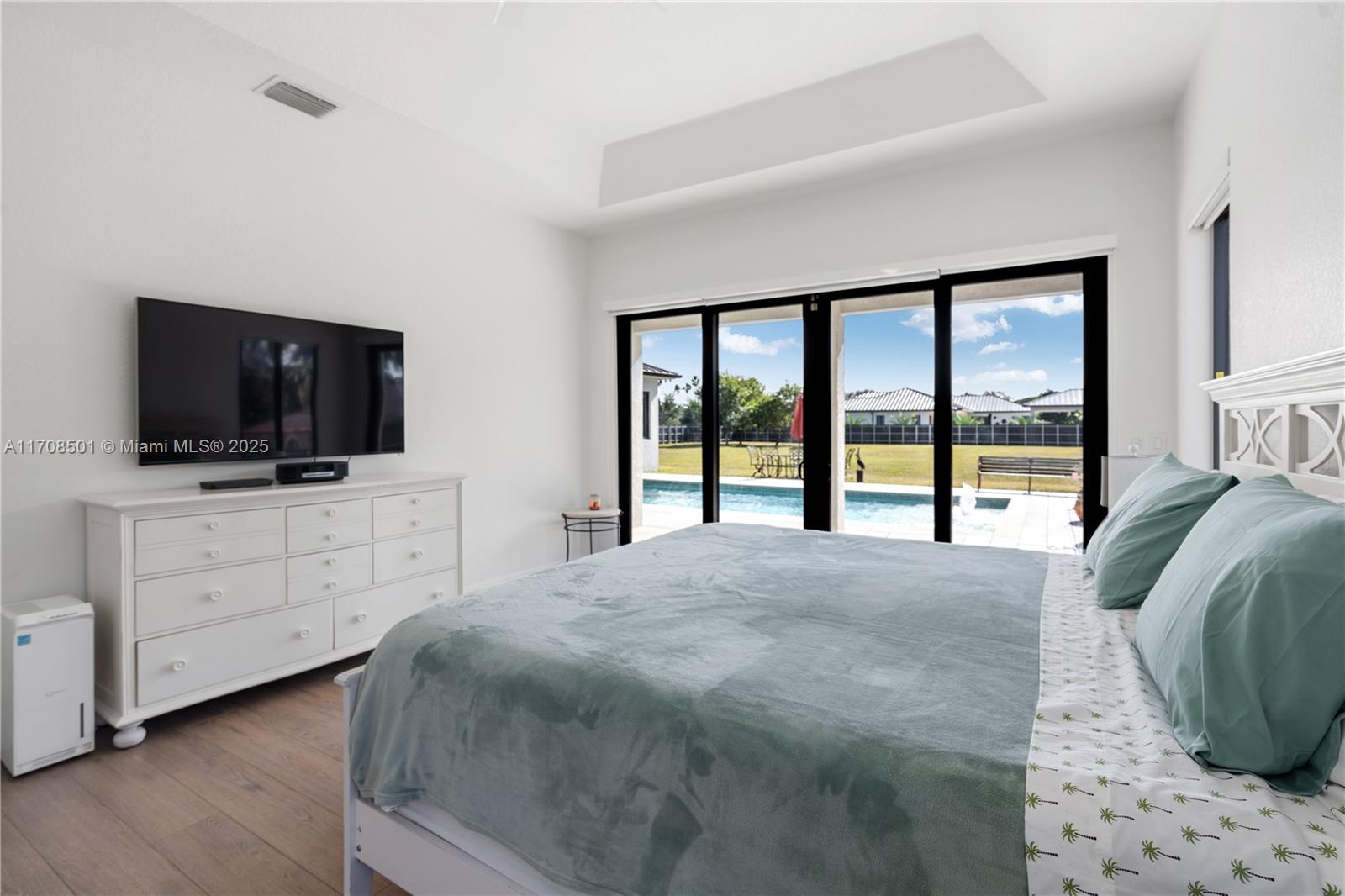 Step into the luxurious Avocado Estate, a stunning 5-bedroom, 4-bathroom home with a 3-car garage, situated on a sprawling 1-acre property. This exquisite residence features a saltwater Pool with captivating LED lights and a stunning aqua quartz finish. Inside, you'll find modern touches such as porcelain wood plank flooring, a dream kitchen featuring top-of-the-line Samsung appliances, quartz countertops and a grand cooking island with pull-out cabinets. The custom walk-in closets provide ample storage, while flat screen TVs in every room & a smart electric fireplace offer the ultimate in convenience and comfort. Ideal for hosting extended family or guests, the in-law suite offers a private sanctuary. Additional highlights include metal roof, impact doors/windows & private metal fence..