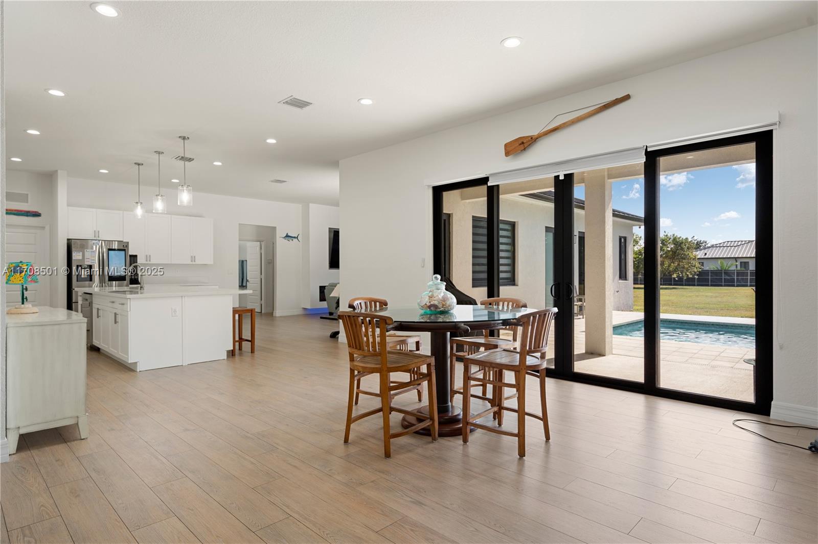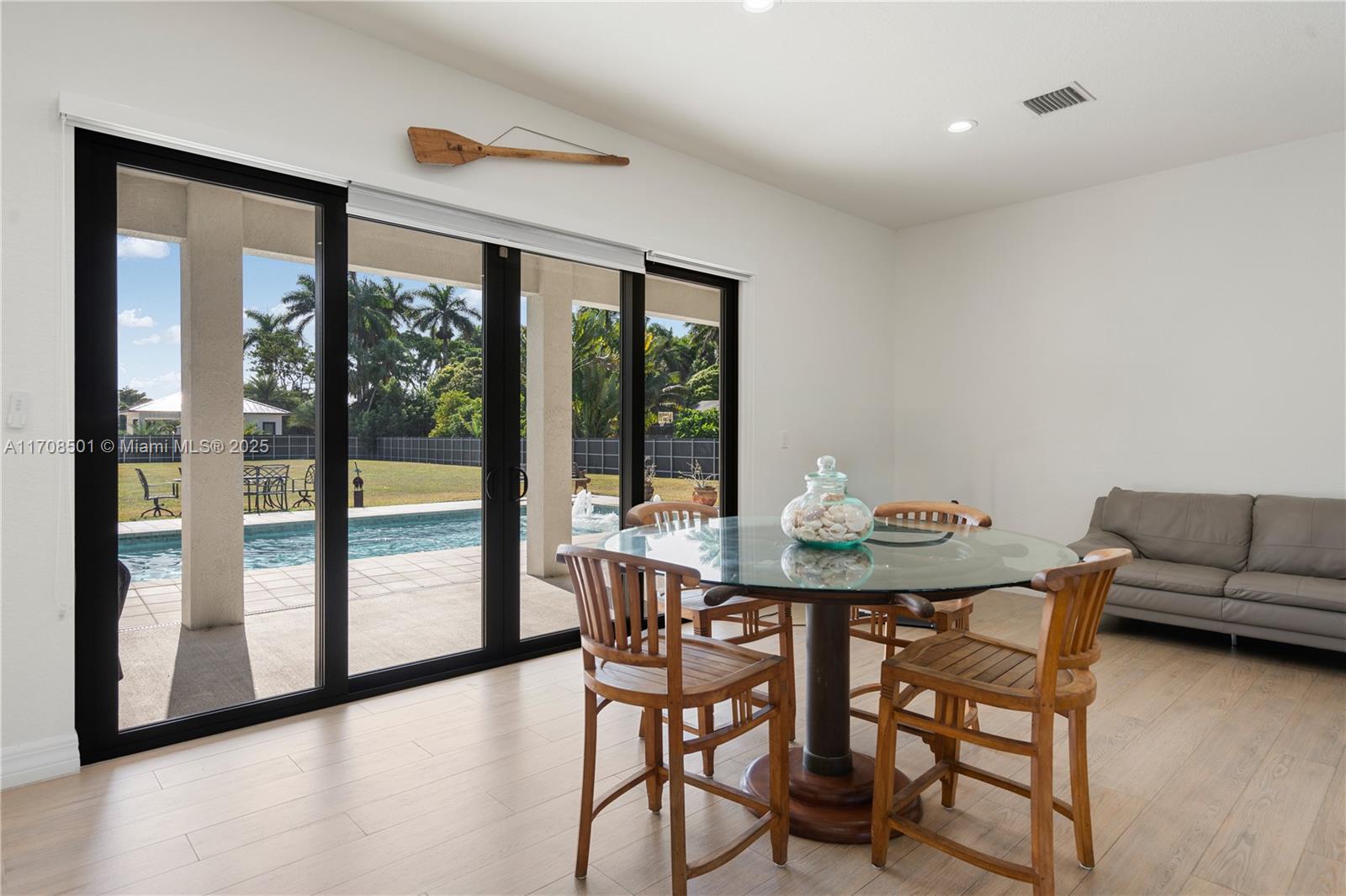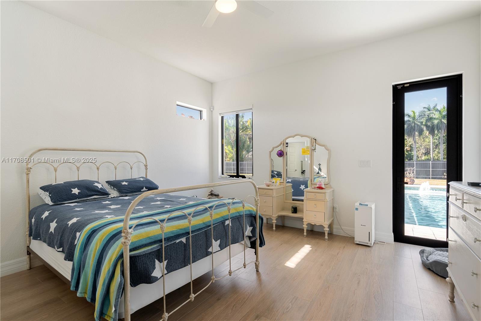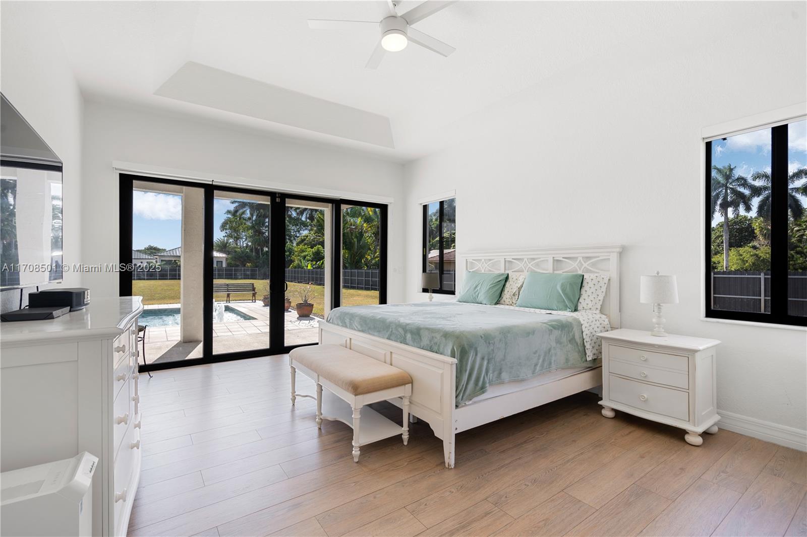 Step into the luxurious Avocado Estate, a stunning 5-bedroom, 4-bathroom home with a 3-car garage, situated on a sprawling 1-acre property. This exquisite residence features a saltwater Pool with captivating LED lights and a stunning aqua quartz finish. Inside, you'll find modern touches such as porcelain wood plank flooring, a dream kitchen featuring top-of-the-line Samsung appliances, quartz countertops and a grand cooking island with pull-out cabinets. The custom walk-in closets provide ample storage, while flat screen TVs in every room & a smart electric fireplace offer the ultimate in convenience and comfort. Ideal for hosting extended family or guests, the in-law suite offers a private sanctuary. Additional highlights include metal roof, impact doors/windows & private metal fence..