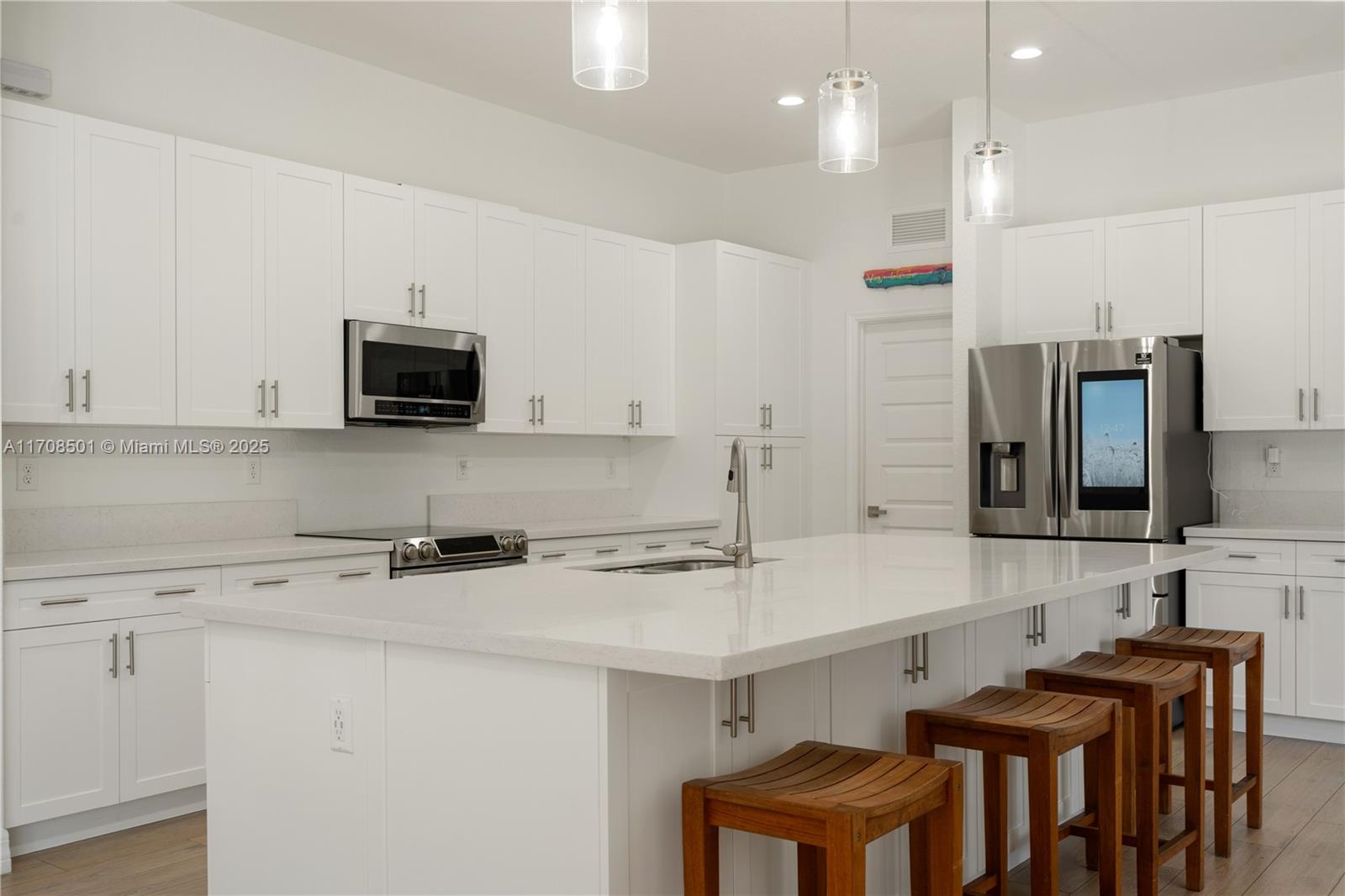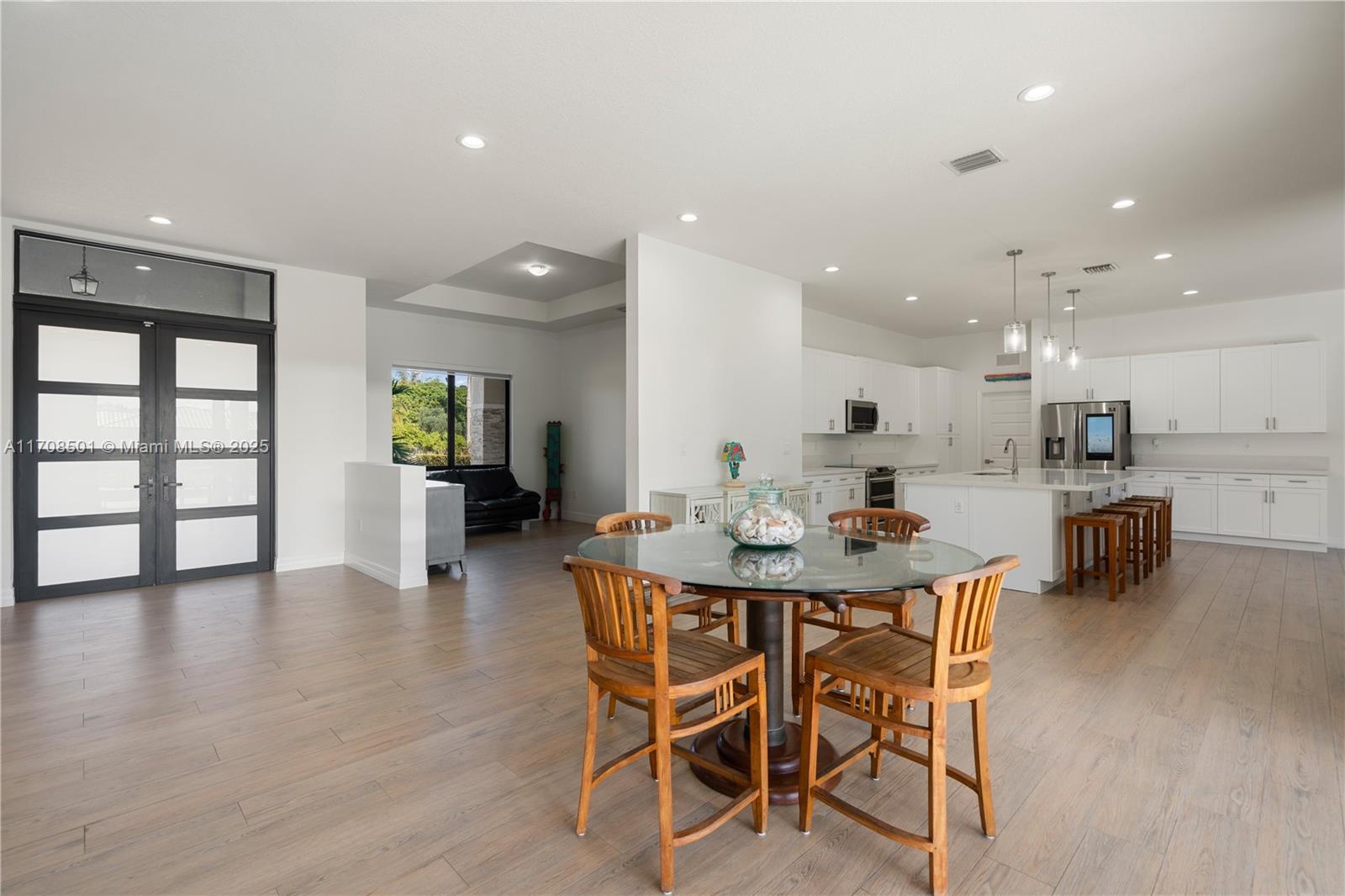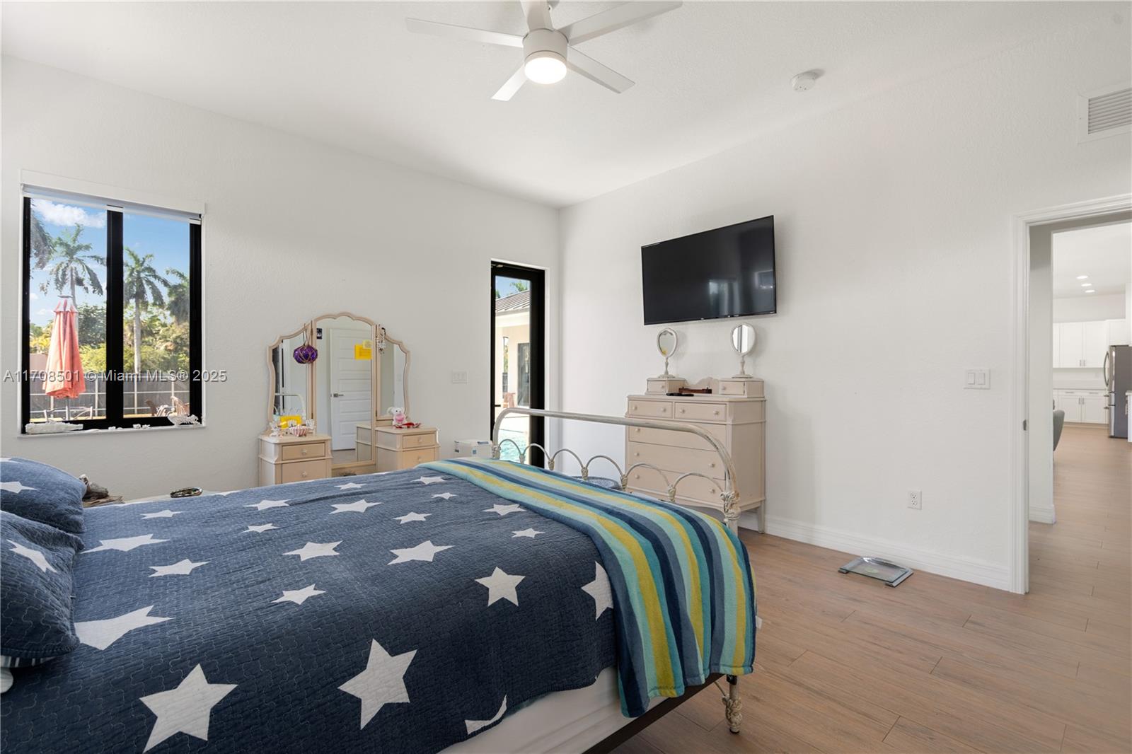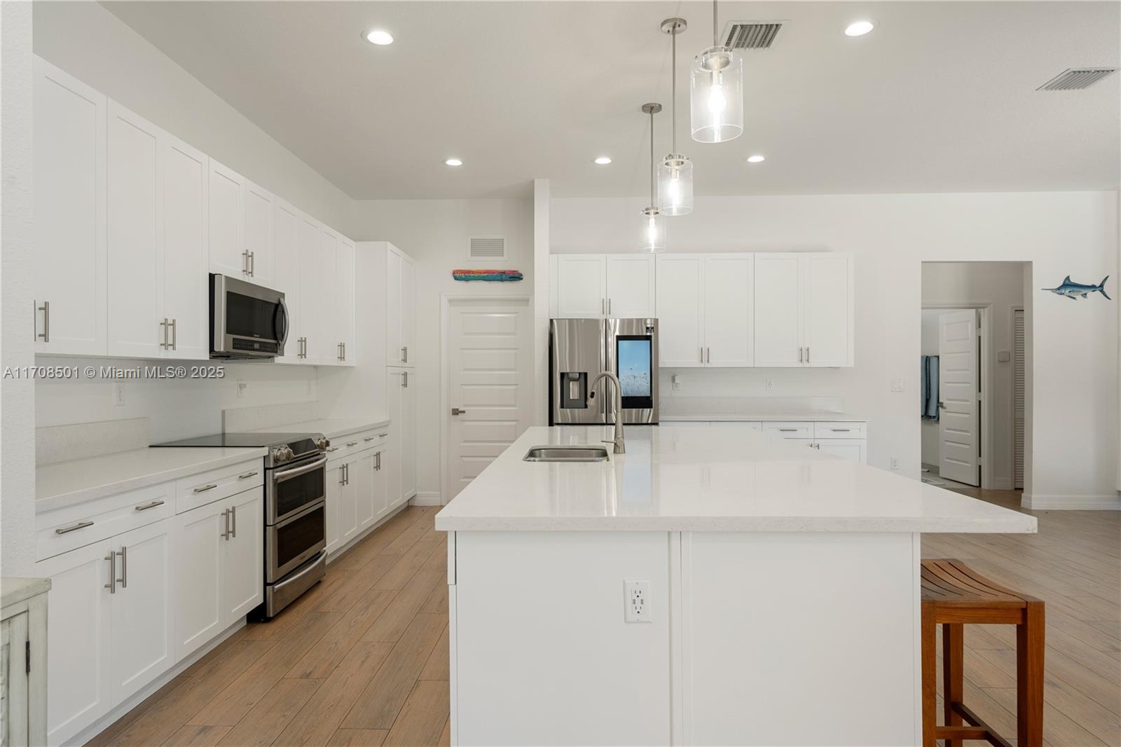 Step into the luxurious Avocado Estate, a stunning 5-bedroom, 4-bathroom home with a 3-car garage, situated on a sprawling 1-acre property. This exquisite residence features a saltwater Pool with captivating LED lights and a stunning aqua quartz finish. Inside, you'll find modern touches such as porcelain wood plank flooring, a dream kitchen featuring top-of-the-line Samsung appliances, quartz countertops and a grand cooking island with pull-out cabinets. The custom walk-in closets provide ample storage, while flat screen TVs in every room & a smart electric fireplace offer the ultimate in convenience and comfort. Ideal for hosting extended family or guests, the in-law suite offers a private sanctuary. Additional highlights include metal roof, impact doors/windows & private metal fence..
