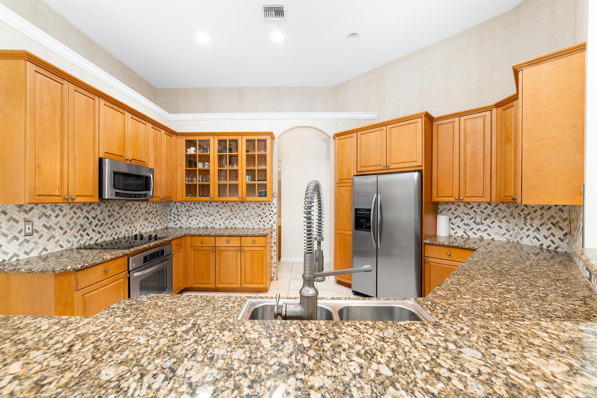 Welcome home to this expansive 4 bedroom 4 bathroom property with an additional office located in the highly sought after Long Cove of Heron Bay. BRAND NEW ROOF 2024! As soon as you walk in, you immediately notice the soaring high ceilings and abundant natural light. The home features tile flooring throughout the living areas with wood themed laminate in the bedrooms. The split bedroom floor plan is ideal for convenience and added privacy with the extra office room adjacent to the primary suite that could easily be converted into a 5th bedroom. The home boasts tons of living space with a formal living and dining room looking out to the pool and a huge family room off of the kitchen. The primary suite provides tons of closet space, high ceilings, gorgeous view to the pool and huge