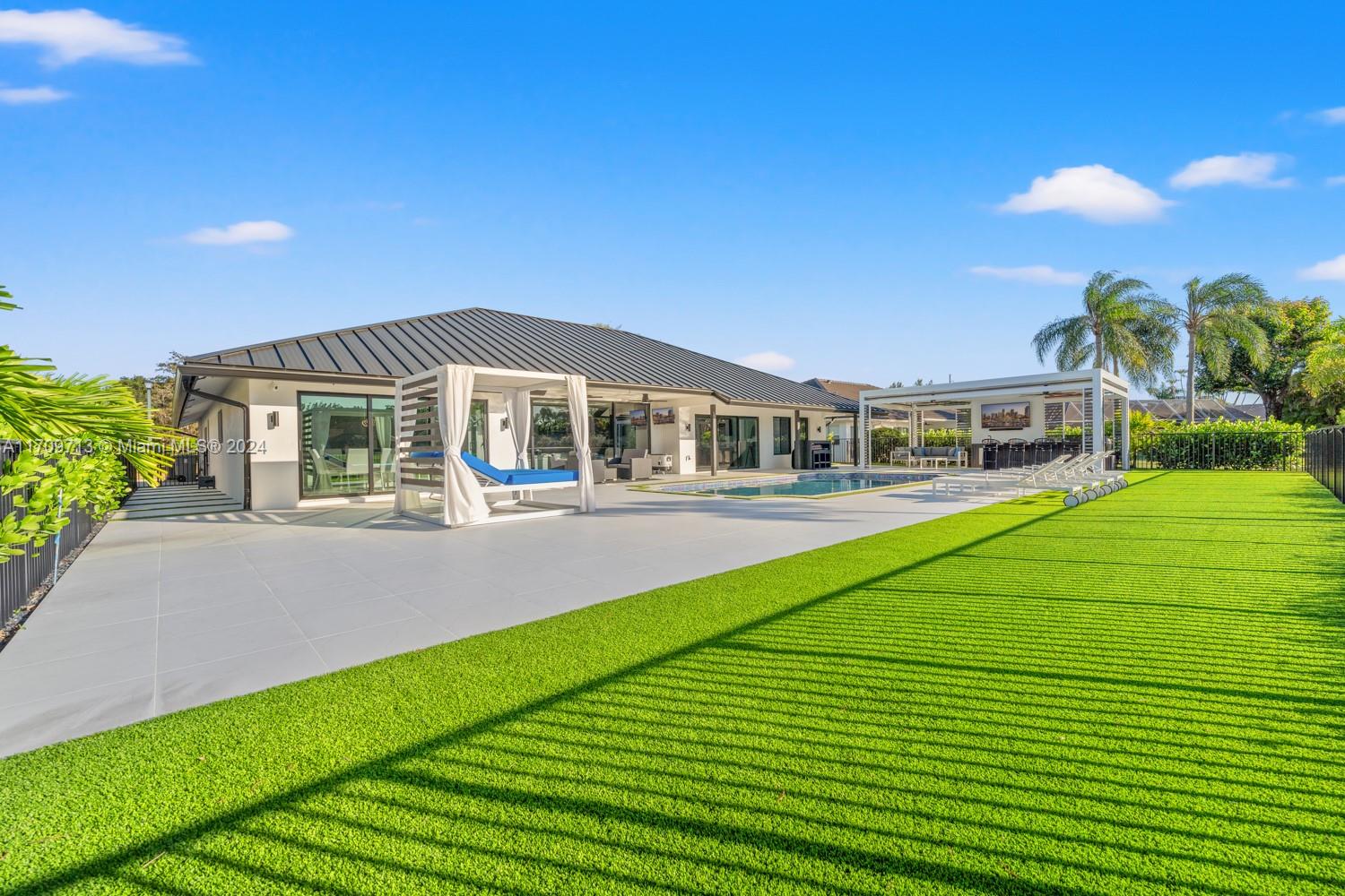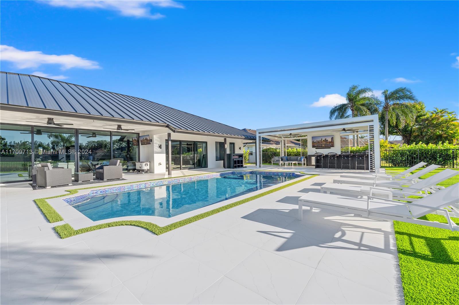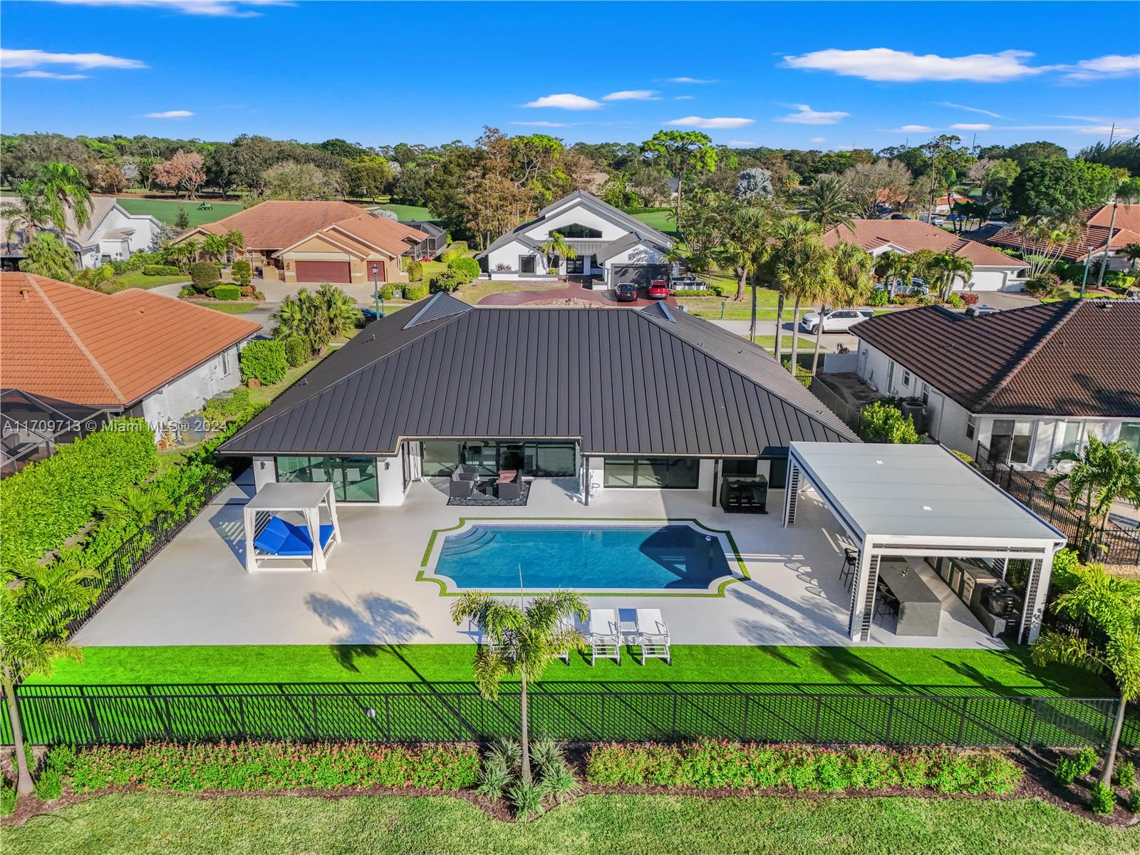 Welcome to an extraordinary opportunity on one of the most desired streets in the Boca Woods Country Club! This exceptional 3-bed, 2.5-bath home with a den/office is nestled on a spacious 14,257 sqft lot located on the signature hole of the Woods golf course. With a brand-new metal roof, impact windows and doors, lush landscaping, and a refinished & heated, saltwater pool - no detail has been overlooked. Inside, enjoy porcelain tiles throughout, while new pool pumps, a insect spray system, and a new sprinkler system elevate the experience. The community offers unparalleled amenities, including but not limited to; new pickleball & tennis courts, 2 golf courses, and a stunning new clubhouse featuring game rooms, boardrooms, & a full-service spa and gym. This is luxury living at its finest!