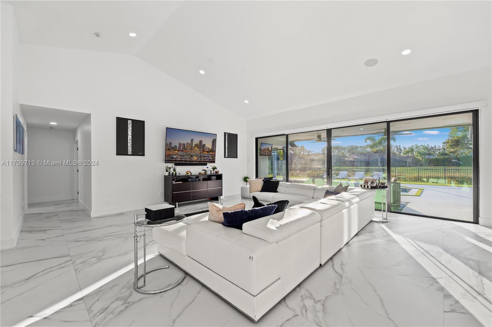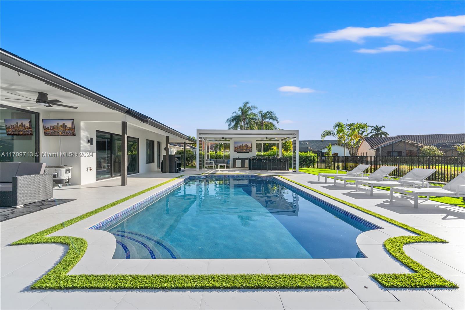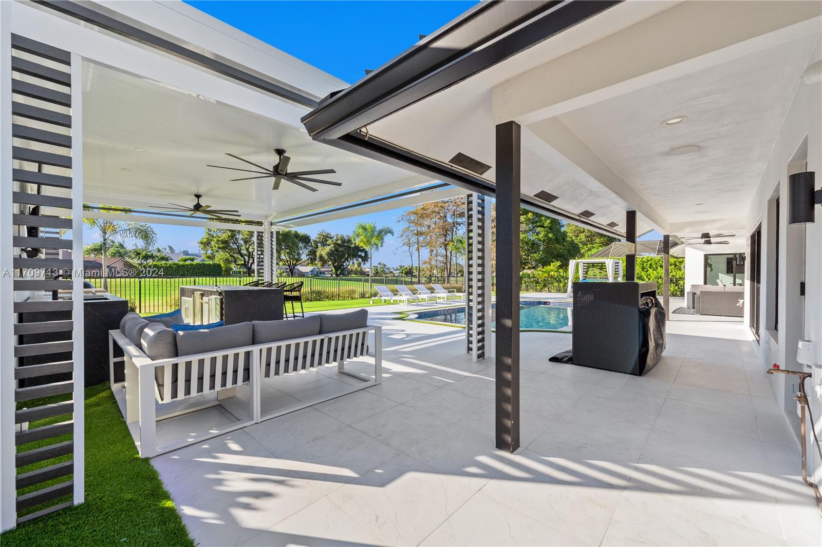 Welcome to an extraordinary opportunity on one of the most desired streets in the Boca Woods Country Club! This exceptional 3-bed, 2.5-bath home with a den/office is nestled on a spacious 14,257 sqft lot located on the signature hole of the Woods golf course. With a brand-new metal roof, impact windows and doors, lush landscaping, and a refinished & heated, saltwater pool - no detail has been overlooked. Inside, enjoy porcelain tiles throughout, while new pool pumps, a insect spray system, and a new sprinkler system elevate the experience. The community offers unparalleled amenities, including but not limited to; new pickleball & tennis courts, 2 golf courses, and a stunning new clubhouse featuring game rooms, boardrooms, & a full-service spa and gym. This is luxury living at its finest!