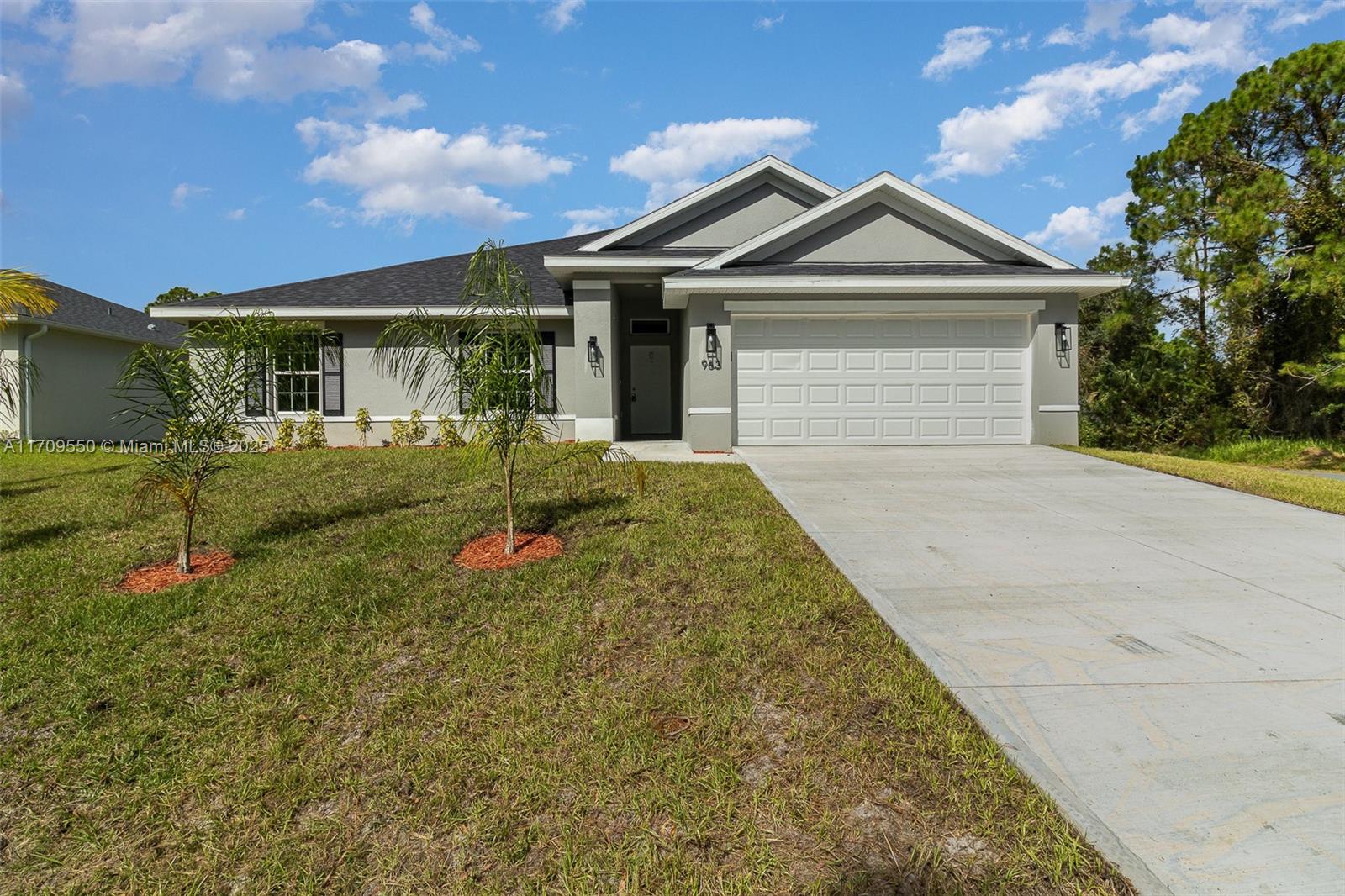 Reduced price now!! Experience modern Florida living in this brand-new 2024 construction home, located in a quiet, desirable area of Palm Bay. With 4 spacious bedrooms and 2 bathrooms, this home offers comfort, elegant design, and **THE BEST PRICE BY SQUARE FOOT IN ALL PALM BAY**—a true value. The open-concept layout connects living, dining, and kitchen areas, creating a bright, welcoming space. High ceilings enhance natural light and openness. The master suite features a large, well-lit bathroom. A smart split floor plan offers privacy, and the 4th bedroom adds flexibility as an office or guest room. Situated on a corner lot and elevated about 4 feet, this home has great curb appeal. Don’t miss this rare opportunity!
