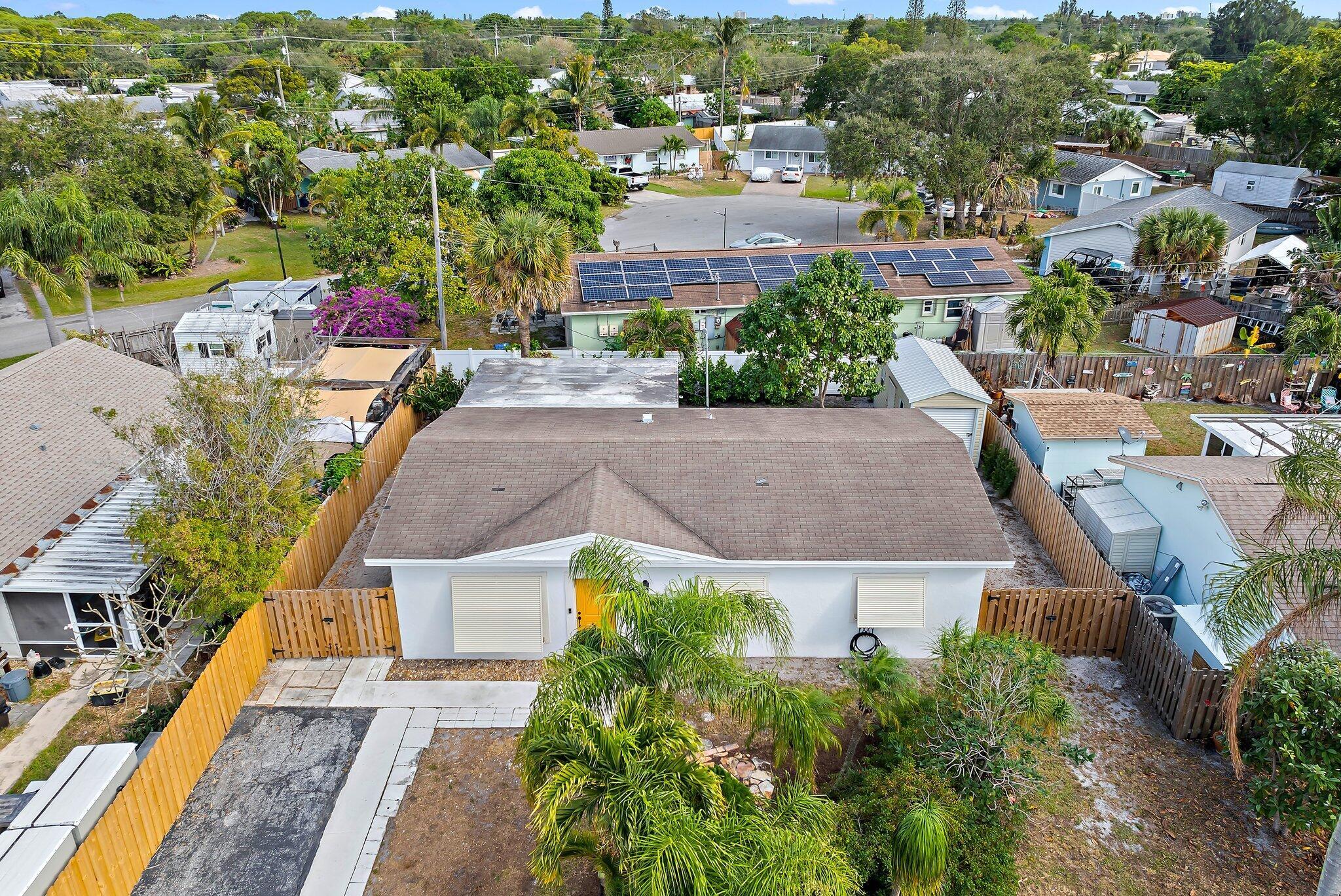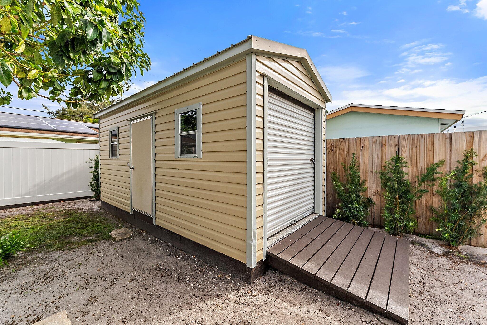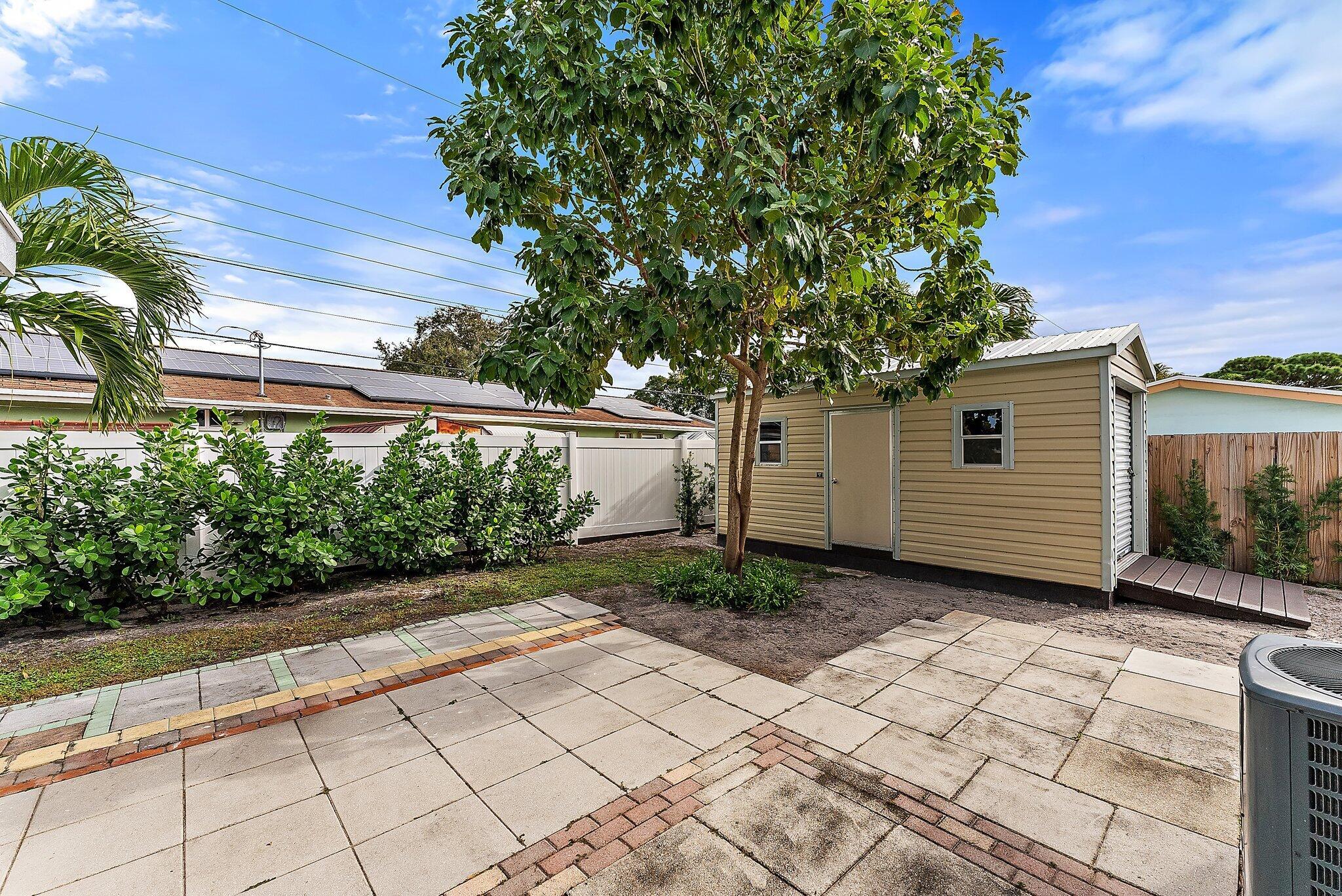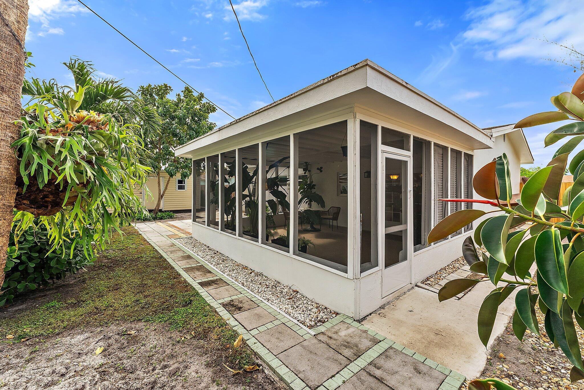 Step into this exquisitely updated CBS bungalow in the heart of Jupiter, where timeless charm meets modern sophistication. Designer details abound, from custom soft-close cabinetry and soapstone countertops to porcelain accents and restored terrazzo floors. The craftsmanship continues with stunning tile work, new impact rated windows framed by silhouettes and drapes, upgraded electrical system, and new premium appliances throughout. Outdoors, enjoy a private, fenced backyard featuring a spacious covered and screened patio perfect for entertaining, along with a new metal storage shed and dual gated access for boat or RV storage.