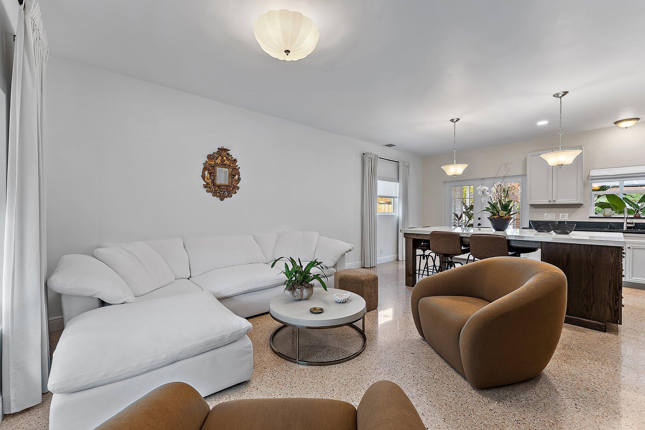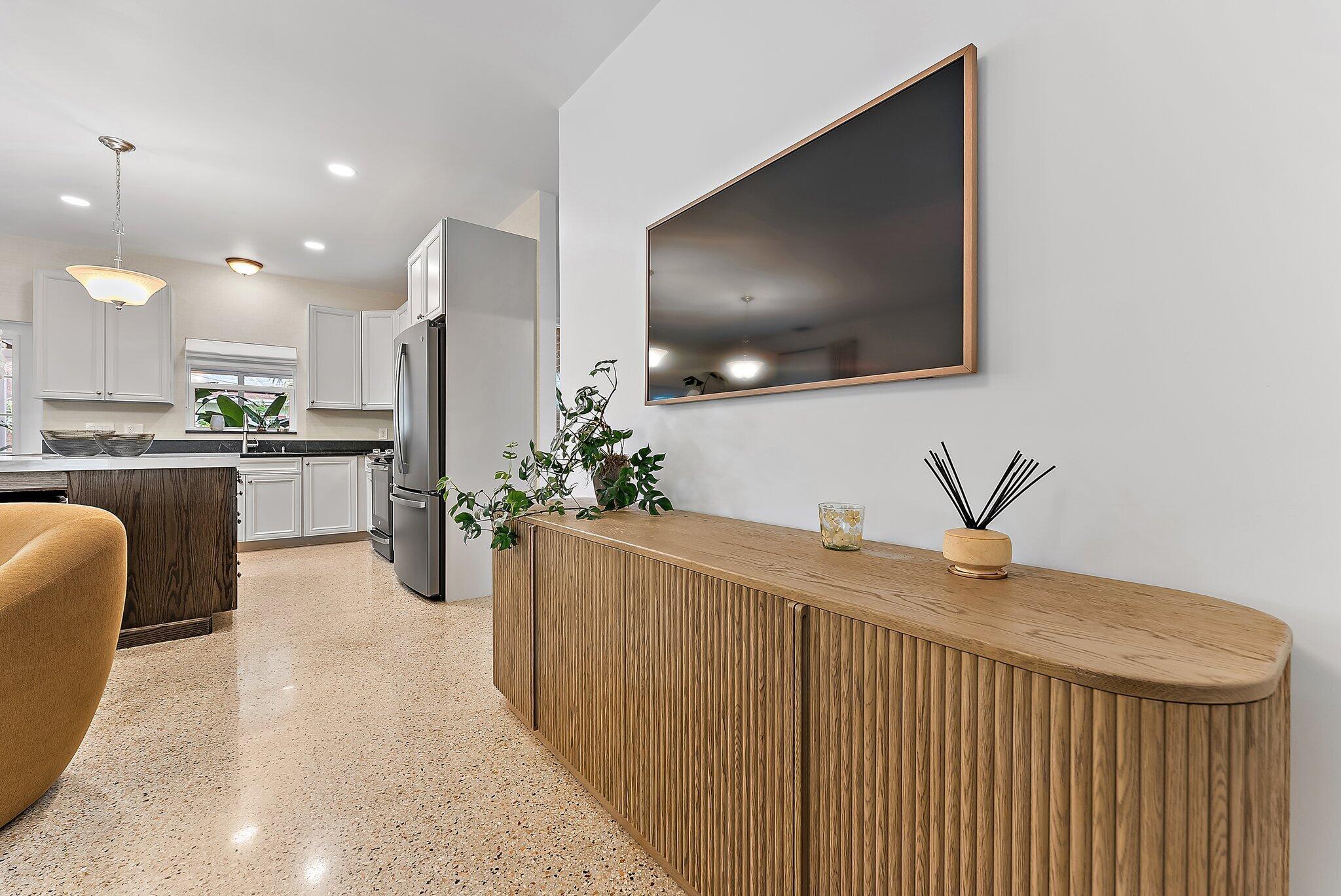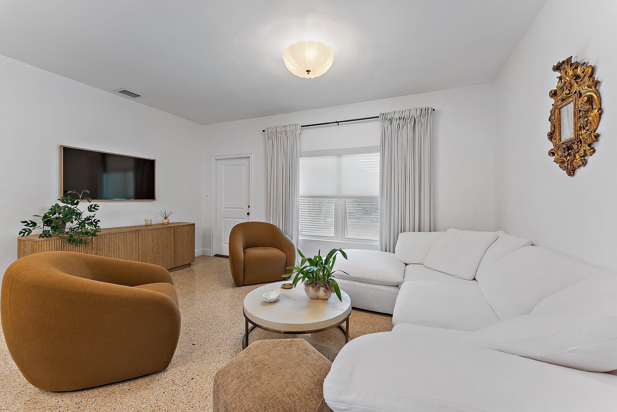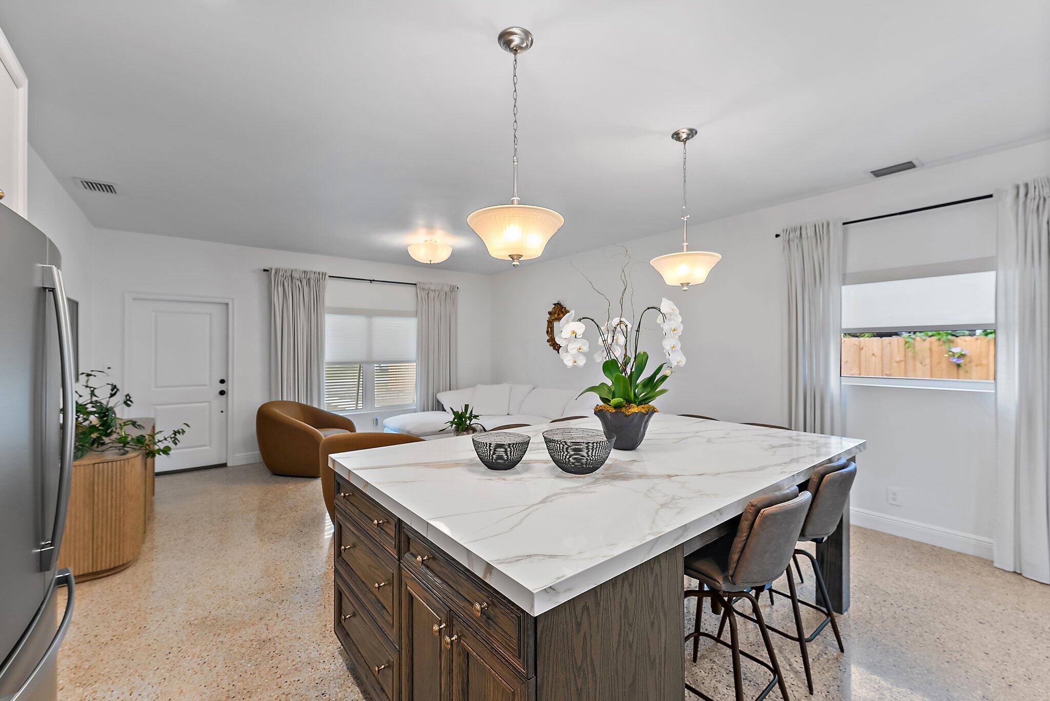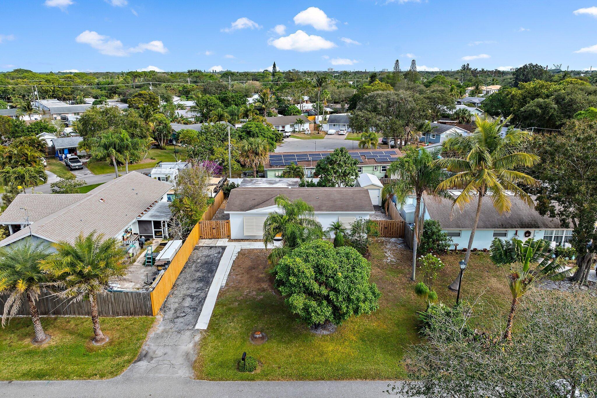 Step into this exquisitely updated CBS bungalow in the heart of Jupiter, where timeless charm meets modern sophistication. Designer details abound, from custom soft-close cabinetry and soapstone countertops to porcelain accents and restored terrazzo floors. The craftsmanship continues with stunning tile work, new impact rated windows framed by silhouettes and drapes, upgraded electrical system, and new premium appliances throughout. Outdoors, enjoy a private, fenced backyard featuring a spacious covered and screened patio perfect for entertaining, along with a new metal storage shed and dual gated access for boat or RV storage.