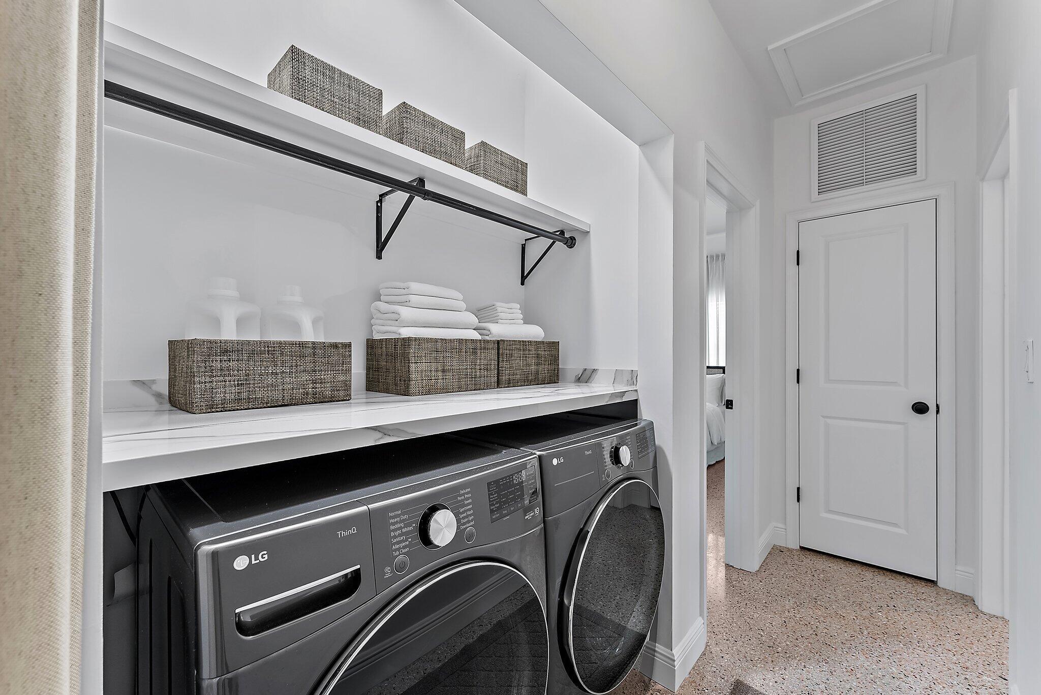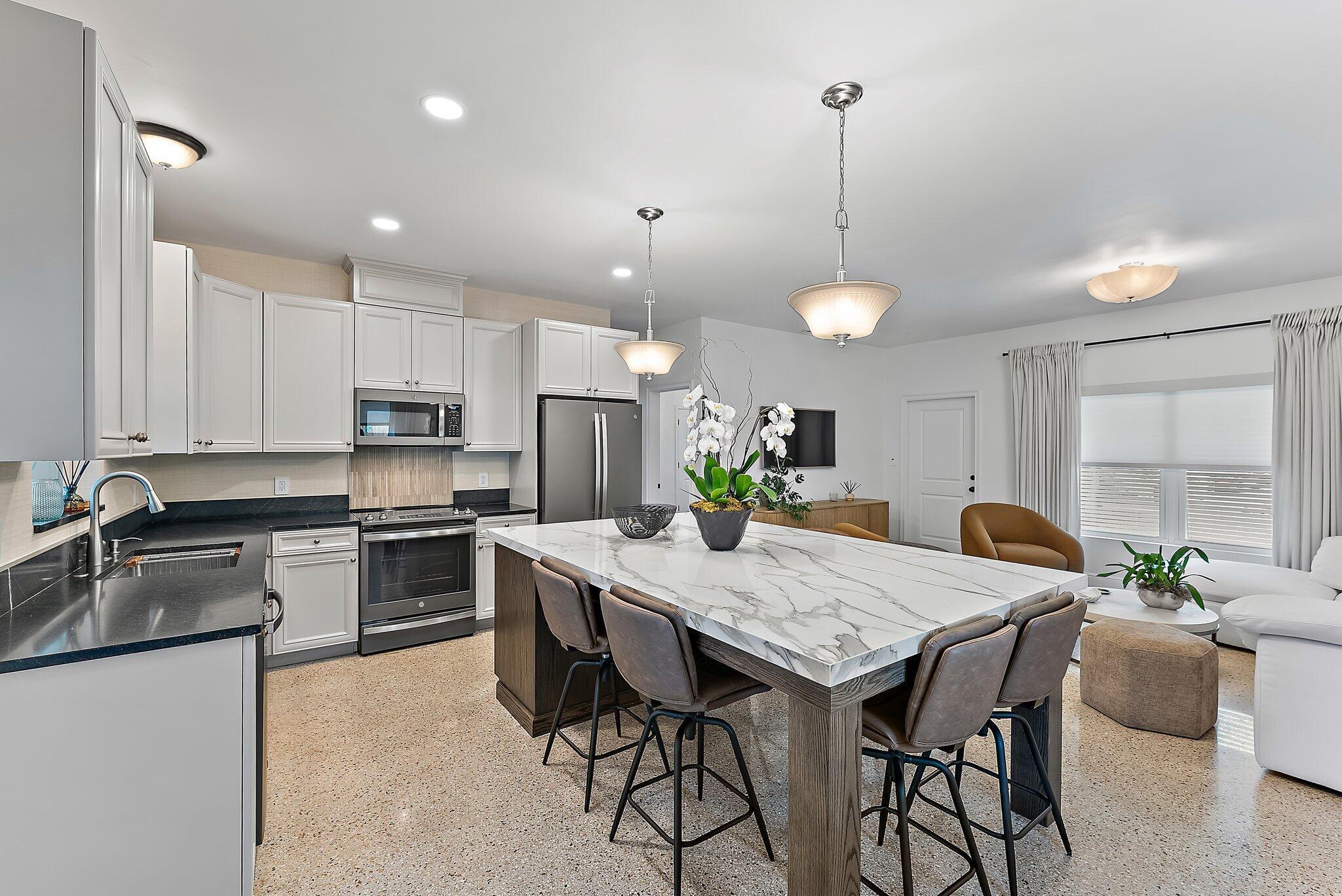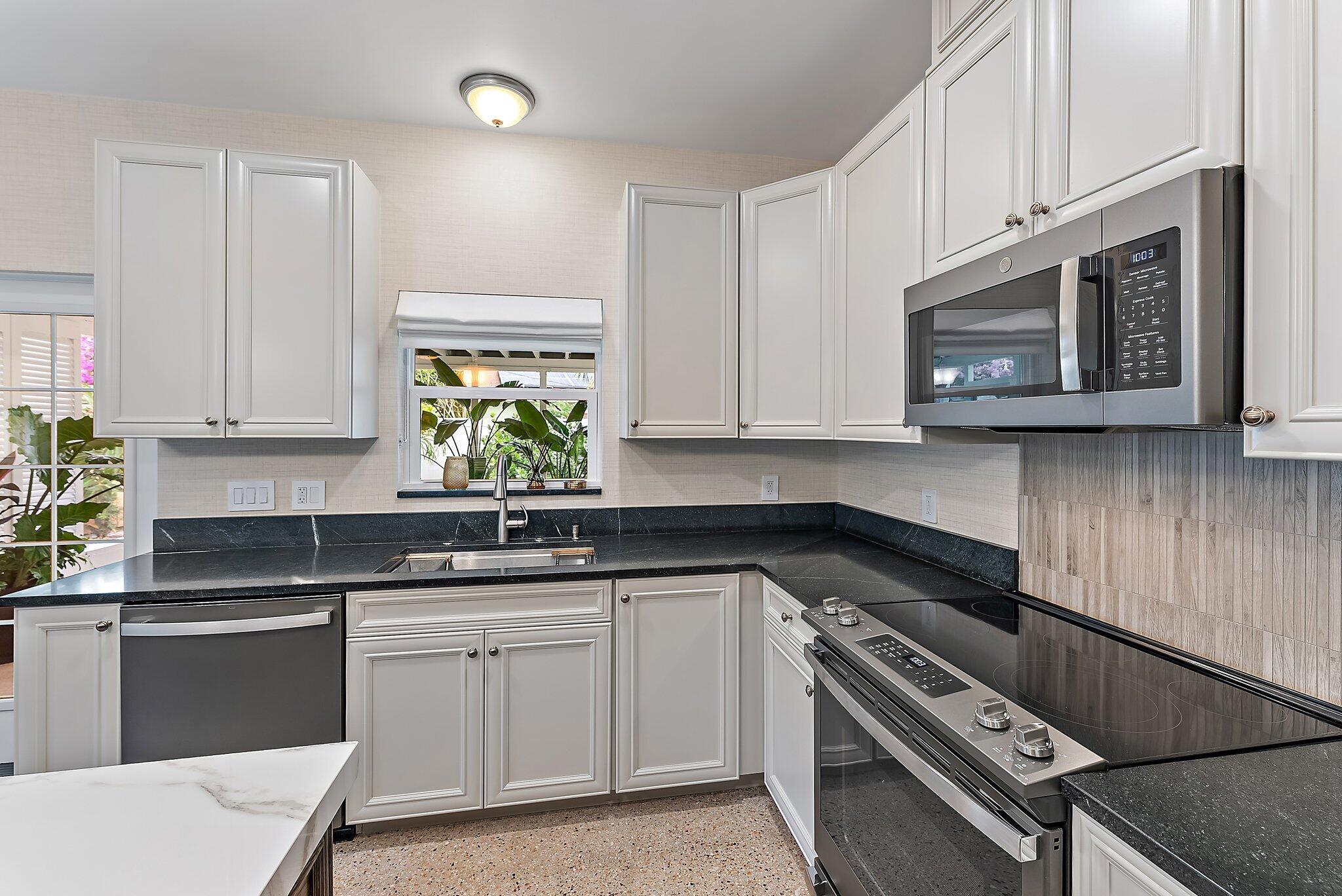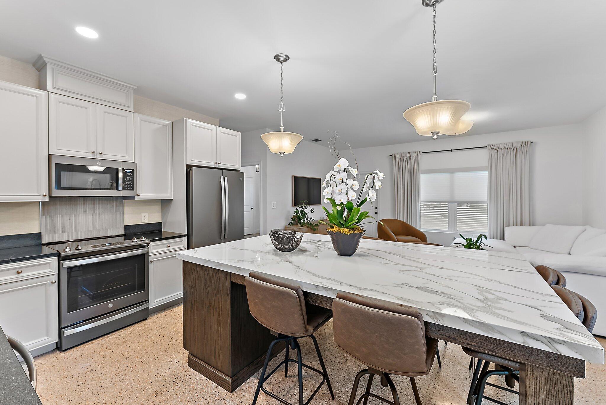 Step into this exquisitely updated CBS bungalow in the heart of Jupiter, where timeless charm meets modern sophistication. Designer details abound, from custom soft-close cabinetry and soapstone countertops to porcelain accents and restored terrazzo floors. The craftsmanship continues with stunning tile work, new impact rated windows framed by silhouettes and drapes, upgraded electrical system, and new premium appliances throughout. Outdoors, enjoy a private, fenced backyard featuring a spacious covered and screened patio perfect for entertaining, along with a new metal storage shed and dual gated access for boat or RV storage.