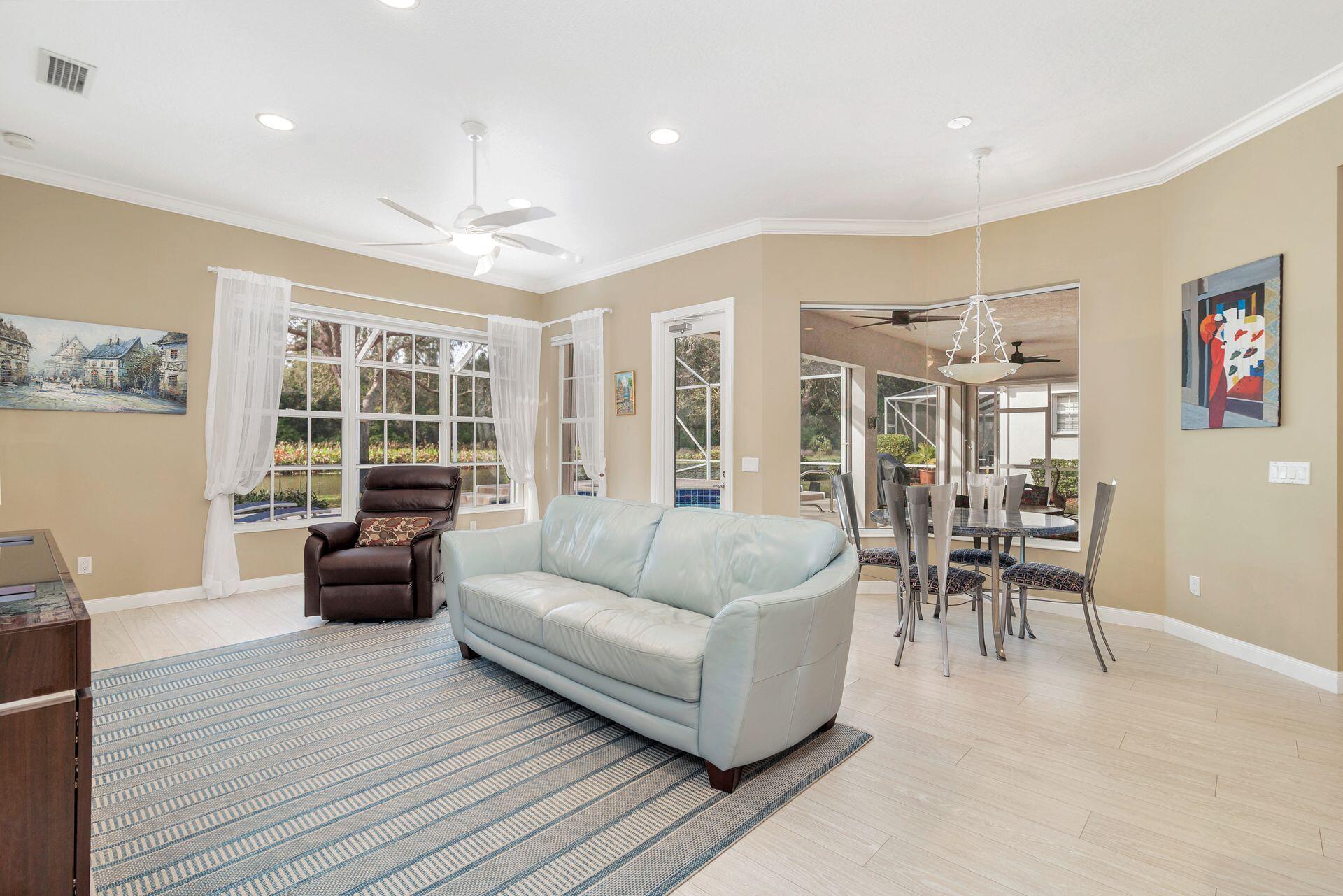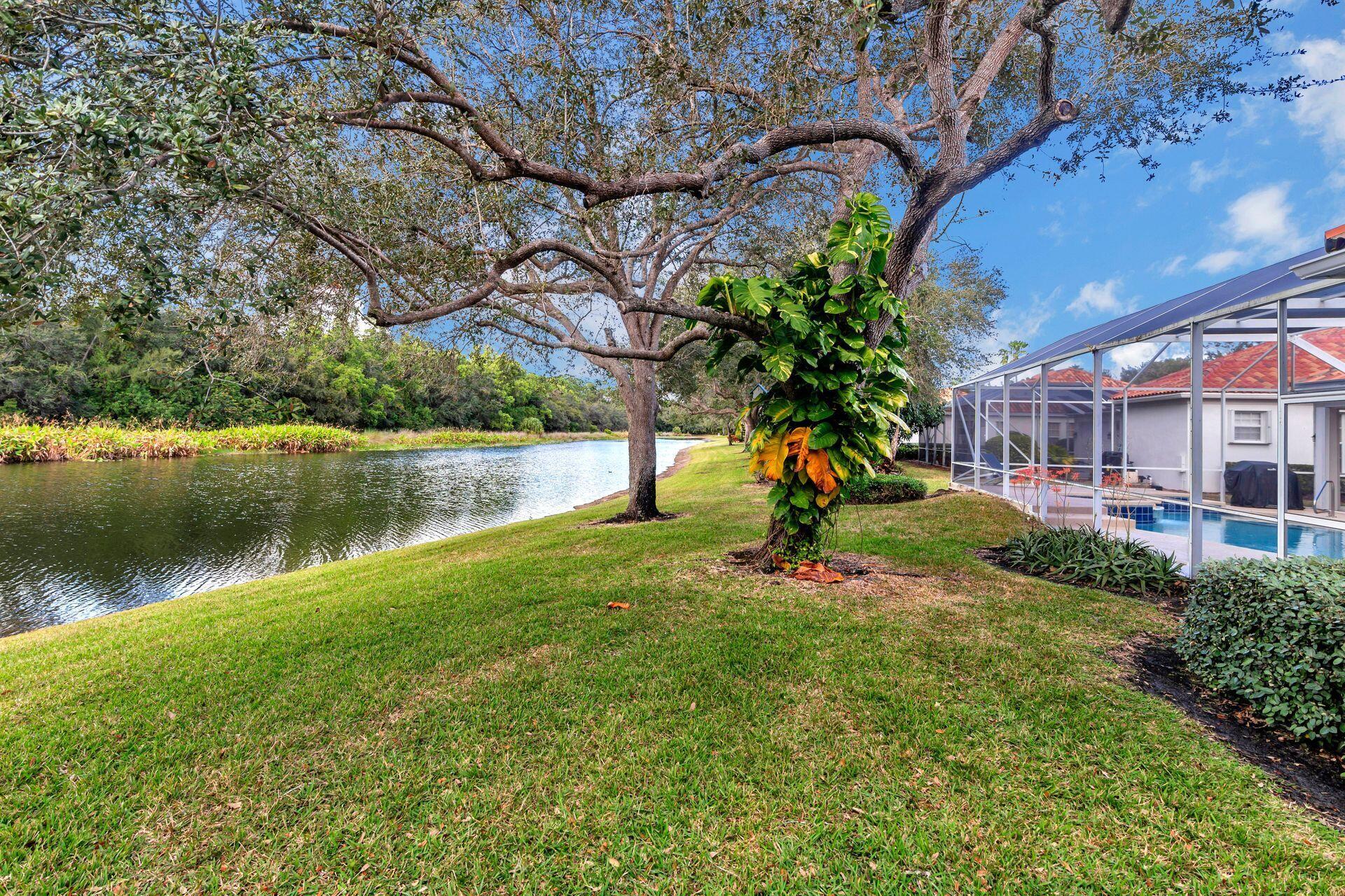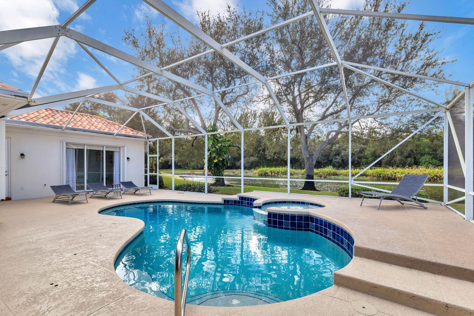 Waterfront paradise in Breakers West situated in the desirable Breakers Pointe cul-de-sac. 4 bedroom, 3 bath, 2774 living square feet complete with pool & hot tub. Pool resurfaced in 2022, A/C 2017, Hot water heater 2021. Ample natural light pours through the public rooms, offering unparalled sunset views. His & her baths, separate tub/shower. Office/den situated conveniently off the master bedroom with custom built ins. Complete accordion hurricane shuttersHOA includes: landscaping, tree trimming; cable and internet, alarm system monitoring, 2 manned guard gates and roving patrol, regular pressure cleaning to roof, gutters, driveway, sidewalks and exterior painting.Non-mandatory membership[s available at Breakers West Country Club, Breakers Ocean & Golf Club, and Mayacoo Lakes CC
