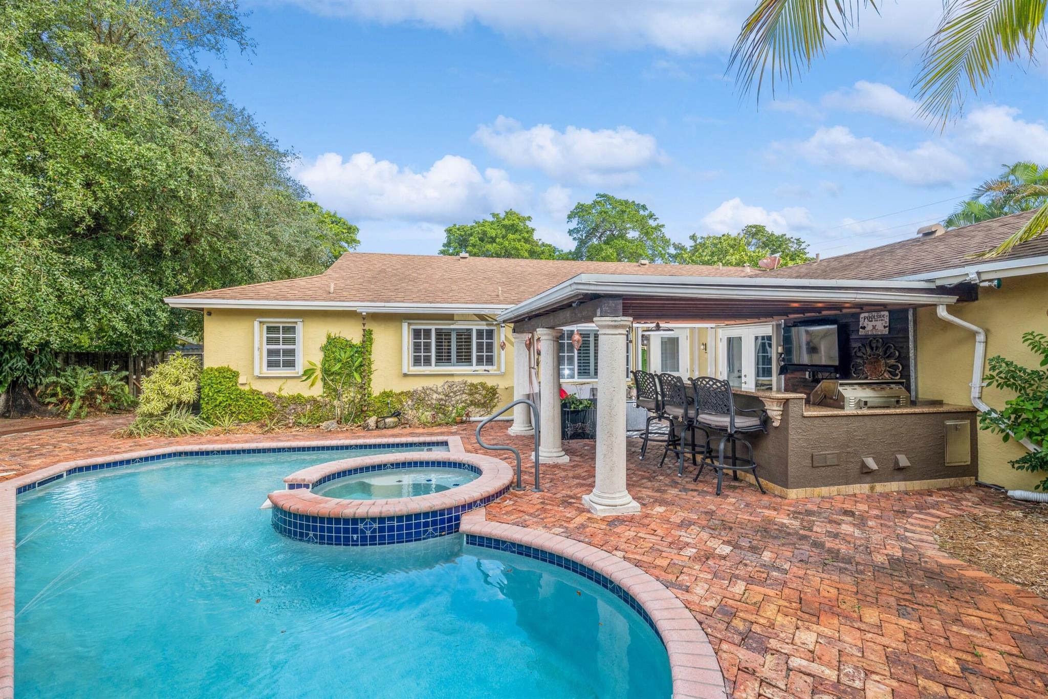 Stunning True 4/2 Retreat in Cooper City nestled on an oversized 10,842 sq. ft. corner lot in the desirable Timberlake community of Cooper City. Prepare to be captivated by the custom kitchen, a true chef's dream. Indulge in the resort-style backyard oasis complete with a sparkling pool, a soothing hot tub, and a complete outdoor kitchen perfect for entertaining guests. Located in a family-friendly area with access to top-rated schools, this home offers an unparalleled blend of privacy, comfort, and convenience. Enjoy close proximity to an array of parks, vibrant dining options, and convenient shopping destinations. This is the perfect haven for those seeking a luxurious and fulfilling lifestyle. Schedule your private tour today and experience the magic of this remarkable property.