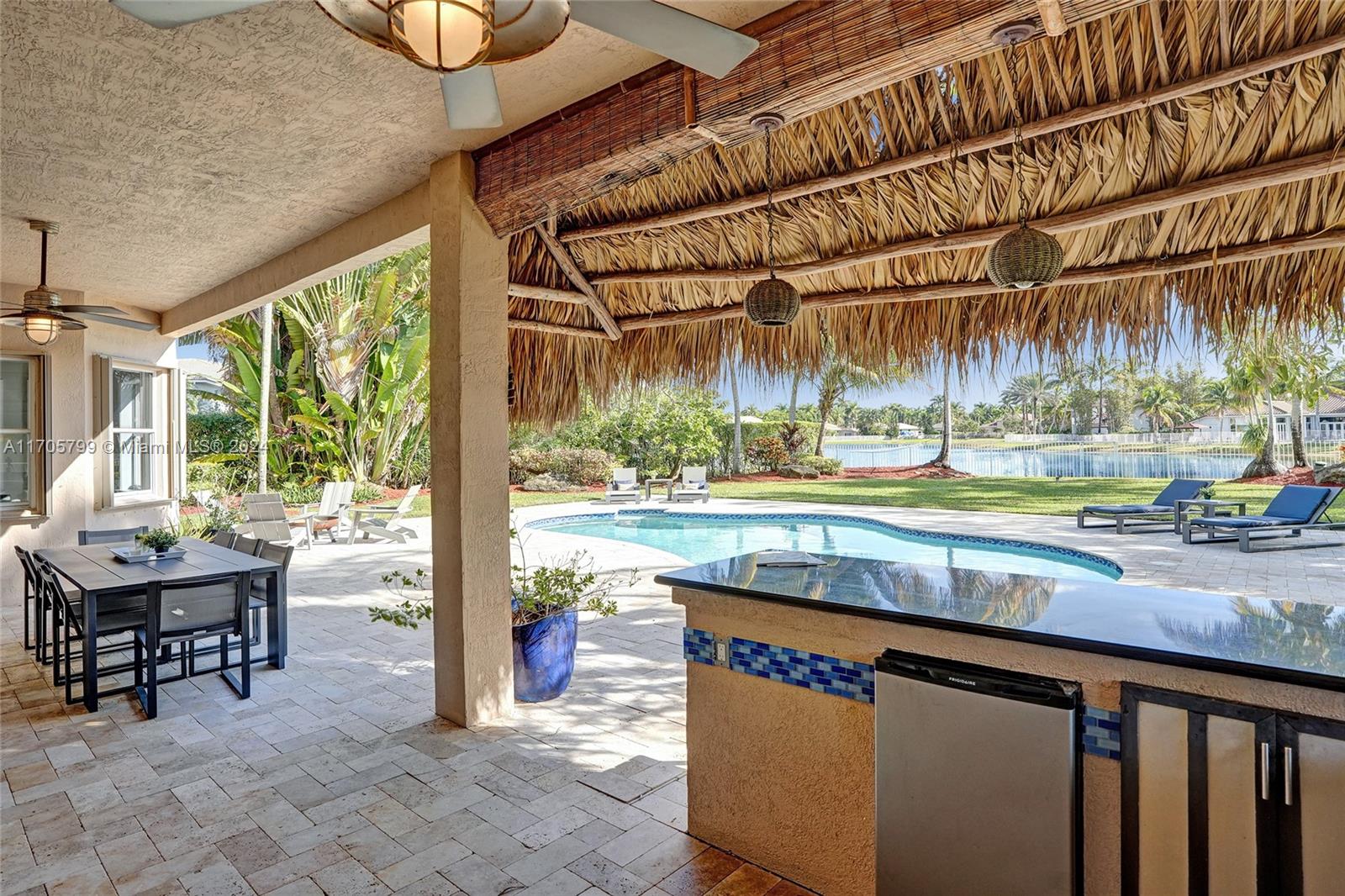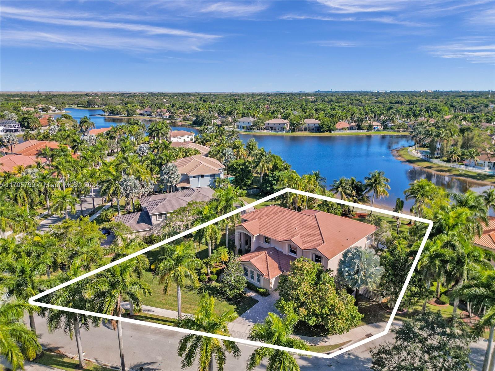This stunning, palatial lakefront 5Bed/5Bath/3CG residence of almost 5000SF/ac w/game/media room, office/playroom situated on an amazing 1/2 acre corner/cul-de-sac lot in Savanna's most prestigious enclave, The Cove. Fully fenced resort-style backyard retreat w/sparkling pool, covered patio & tiki-hut w/fully equipped summer kitchen. Gourmet kitchen features dual toned cabinetry, gorgeous quartzite counters, top of line Miele & Sub-Zero appliances. Downstairs features an office & large game room, cabana bath & powder room. Upstairs, the luxury primary suite w/generous sitting rm, leads to wide balcony w/breathtaking lake/pool views.Double staircases, marble & wood flooring, newer AC's & W/H. Enjoy the incredible Clubhouse,w/lap pool, miniature golf, waterslide/tot pool, Weston's A+ schools