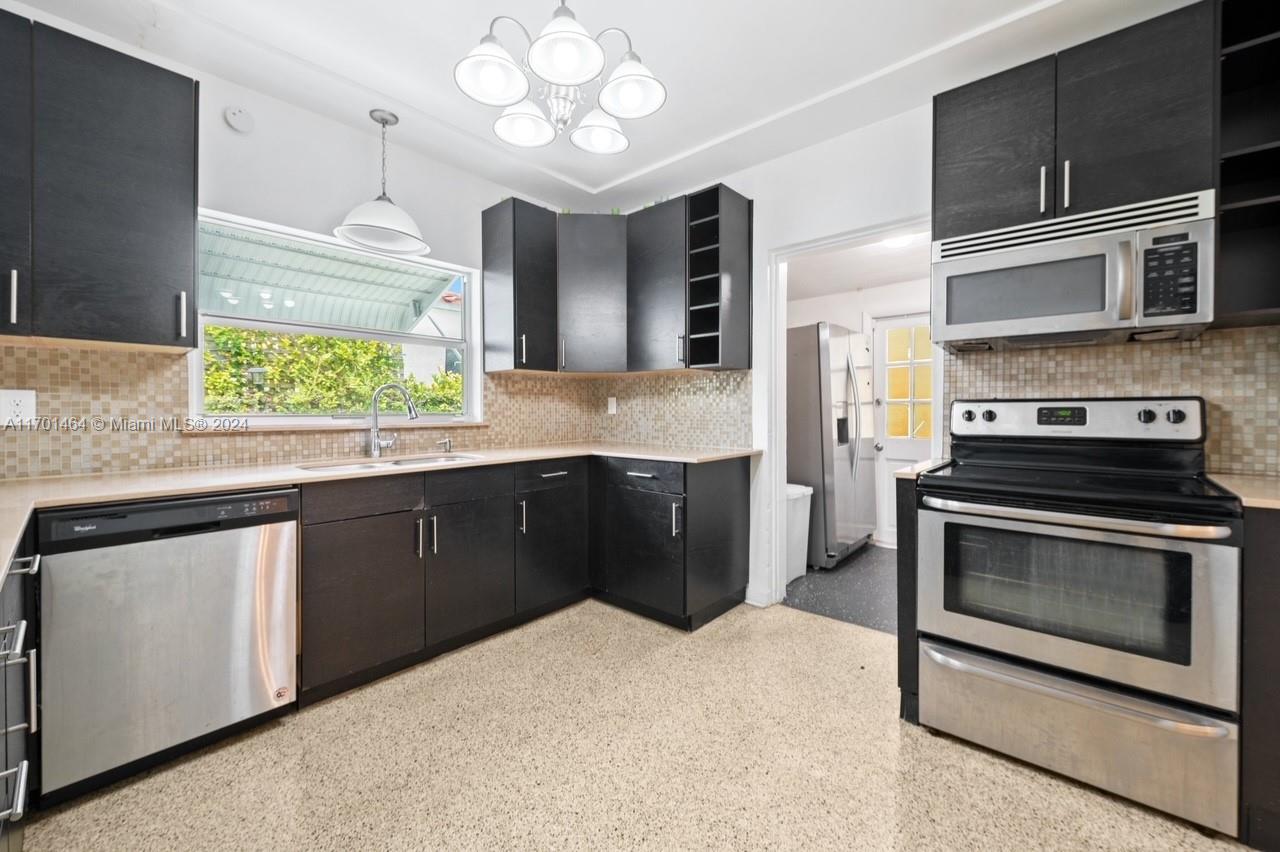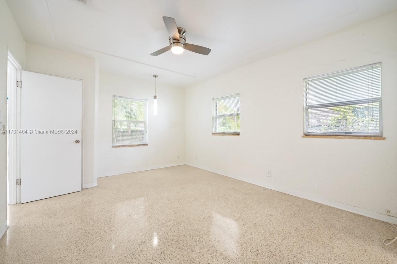 This charming 1936 Spanish-Style Home in Miami Beach offers timeless appeal and classic character. Featuring polished terrazzo floors, a spacious split floor plan, and a decorative fireplace, the home exudes warmth and style. Vaulted ceilings with exposed wood beams and an abundance of natural light create an open, airy atmosphere. This property also includes an in-law's quarters and a studio, offering flexible space for guests, a home office, or rental potential. While this charmer is in need of some updates, it presents a fantastic canvas for anyone looking to bring a historic gem into modern times.