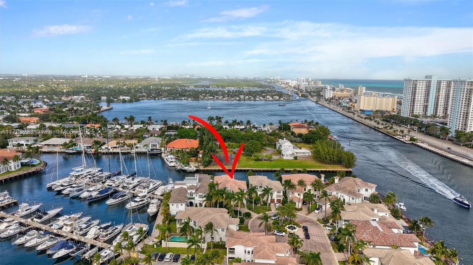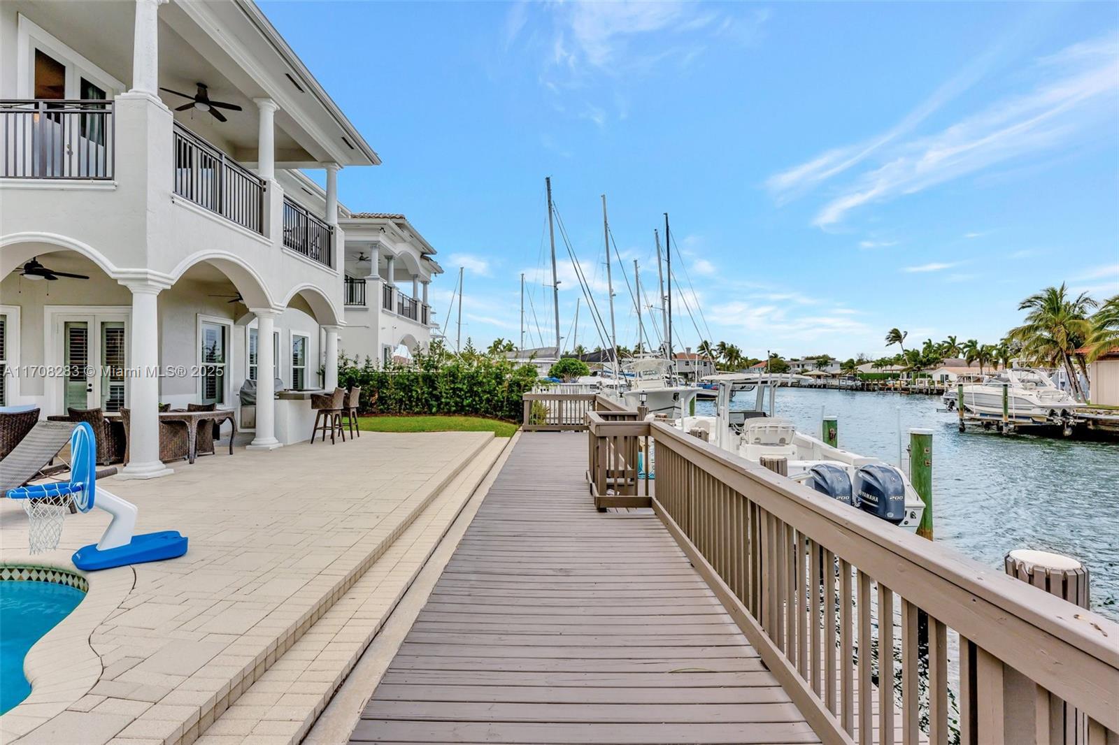 Nestled on a waterway with direct ocean access in an exclusive cul-de-sac, this stunning estate features a heated pool, spa and both a boat and Jet Ski lift for the ultimate waterfront lifestyle. Spanning approximately 5,000 sq ft, this luxurious 6 bedroom and 5.5-bathroom home features a gourmet kitchen with top-tier Thermador appliances, double oven, induction cooktop, Sub-Zero fridge/freezer, and a built-in wine cooler. Summer kitchen and 3-car garage with a Tesla charger add to the convenience. Residents enjoy access to the prestigious amenities of Harbor Islands, including tennis, Pickleball, a state-of-the-art gym, marina, parks, and playgrounds. Just moments from the beach, world-class shopping, fine dining, and places of worship, this home offers the epitome of refined living.