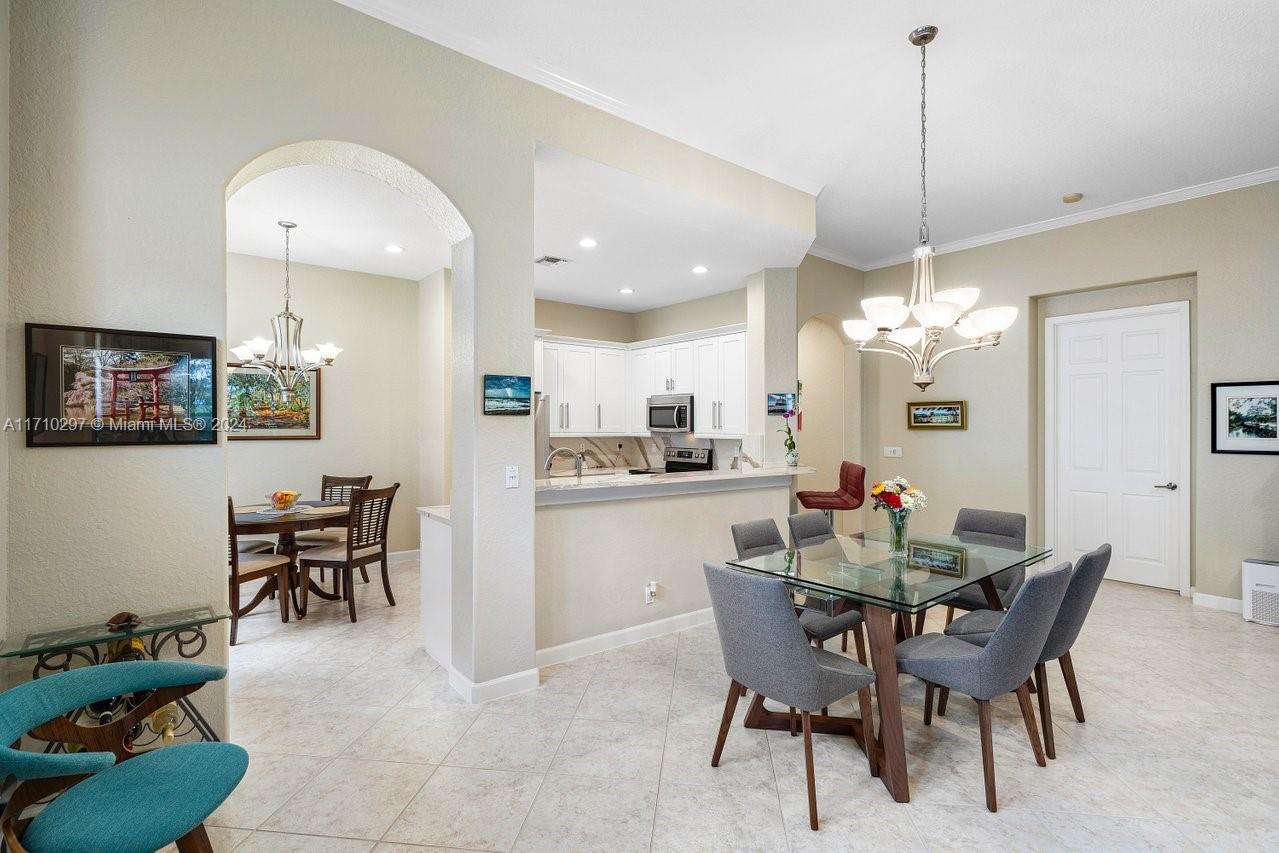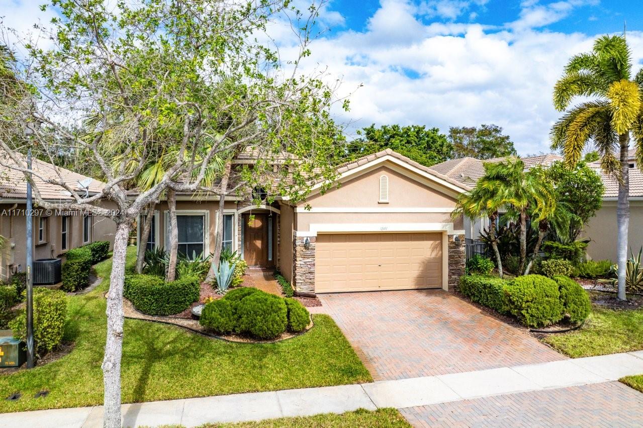 Discover this stunning 3-bedroom, 2.5-bathroom home offering a spacious living area of 2,196 sq. ft. Interior highlights include a bar, pantry, split bedrooms, volume ceilings, and ceramic tile floors. The kitchen is equipped with premium appliances, while additional features include a family room and inside laundry. Exterior amenities boast a screened patio, auto sprinkler, deck, and garden views on a 6,426 sq. ft. lot. Enjoy 2 garage spaces and security features like a gated entrance and patrols. Located in Heron Bay, this home is near top-rated schools and offers community perks such as a pool, clubhouse, tennis, and more. Built in 2002 with contemporary design, this property combines comfort, style, and convenience.