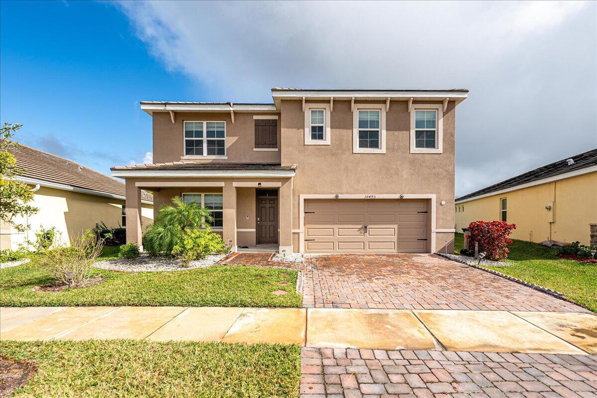 Discover this stunning estate home in the prestigious gated community of Estates at Tradition! Built in 2021, this elegant two-story residence offers abundant space with 5 bedrooms, 3 bathrooms, and a 2-car garage. The first floor features a guest-friendly layout, including a bedroom and full bathroom, perfect for visitors or multi-generational living. The spacious family room seamlessly connects to the dining area and a beautifully designed white kitchen, complete with granite countertops, a center island, and a pantry. A formal dining room adds a touch of sophistication, ideal for hosting special occasions. Upstairs, the expansive master suite boasts dual walk-in closets, providing ample storage. Three additional generously sized bedrooms offer flexibility and functionality, while