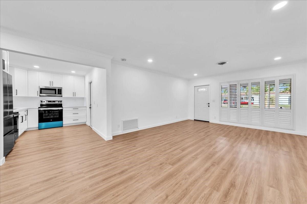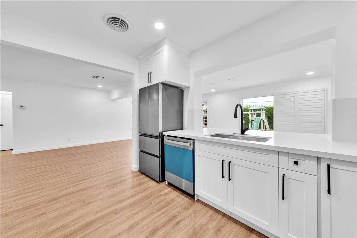 3 Beds/2 Baths, tastefully renovated in HOLLYWOOD HILLS with New Barrel Tile Roof & 2 New HVAC Units in 2024. Interior updates include Waterproof Luxury Vinyl Flooring in Living Areas & Bedrooms with Porcelain Tile in both Bathrooms, 4” Baseboards throughout, Recessed Lighting, Ceiling Fans in All Bedrooms, New Electrical Panel, All-New Bathrooms and New Kitchen with White Shaker Cabinetry, Quartz Countertops and Stainless Steel Appliances. Primary Bedroom and 2nd Bedroom have Walk-in Closets, and 3rd Bedroom has two closets. Freshly painted inside and out! Fenced-in Backyard with room for Additional Parking via alley access for Boat or RV. Located within walking distance to Memorial Regional Hospital; convenient to I-95 and the Turnpike.