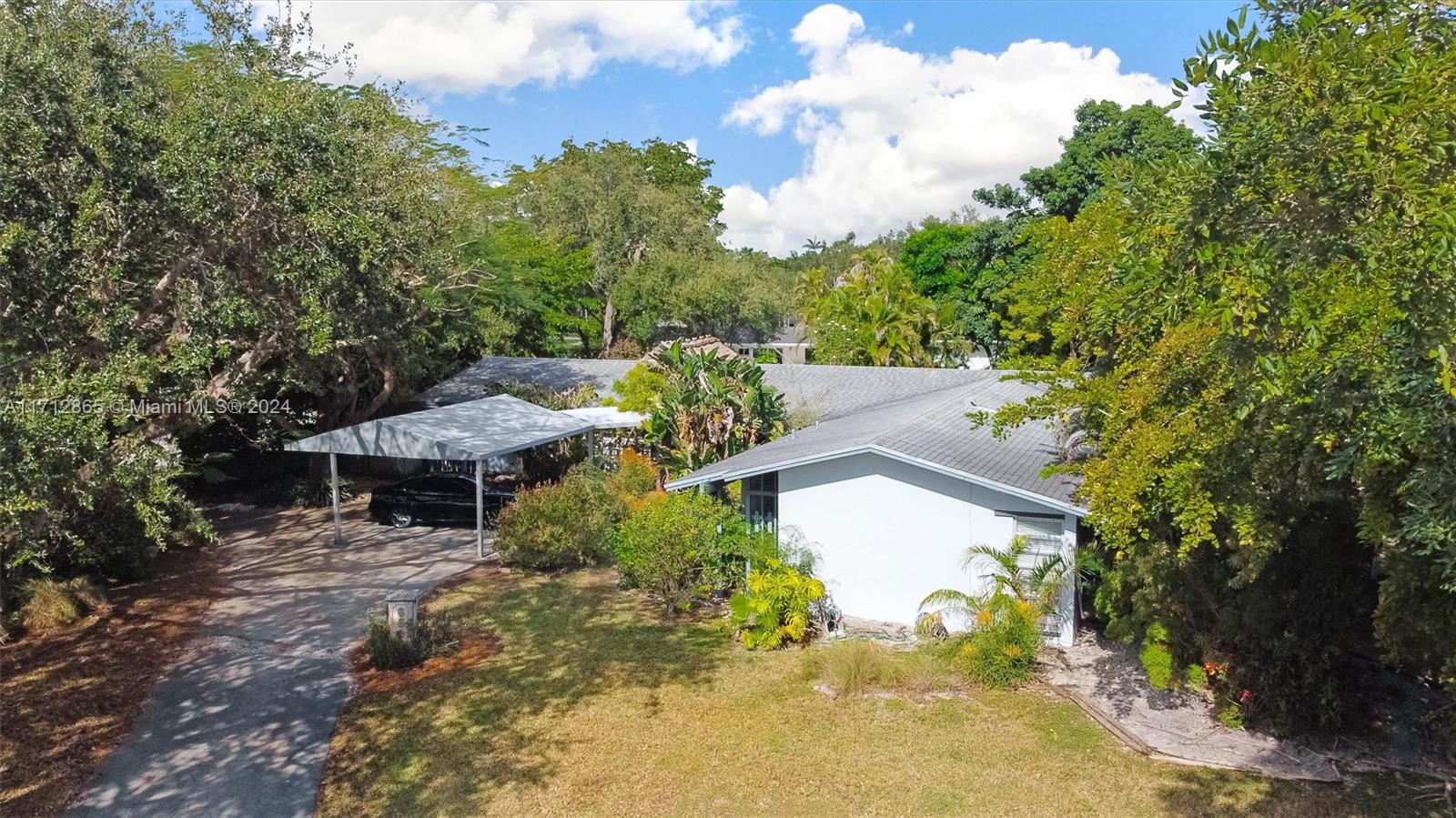 Excellent opportunity to make this Pinecrest corner lot home yours! Built in 1975, it features four bedrooms and three bathrooms, boasts two master suites, a pool, on a large corner lot on a quiet street. The home was artificially elevated from the street when built to all but eliminate any chance of flooding by design. The living room and family room are open and create an enormous open space. The primary Master bedroom is very large and boasts an equally large master bathroom with his and hers sinks and toilets. Opposite side of the home are three bedrooms, two sharing a bathroom and one with its own en suite bathroom. The fenced backyard boasts a large patio, Chiki Hut, shed and garden. The property is covered in trees and other exotic plants and parking couldn't be easier.
