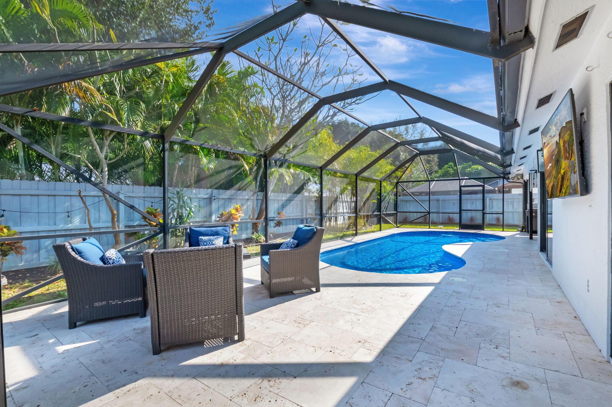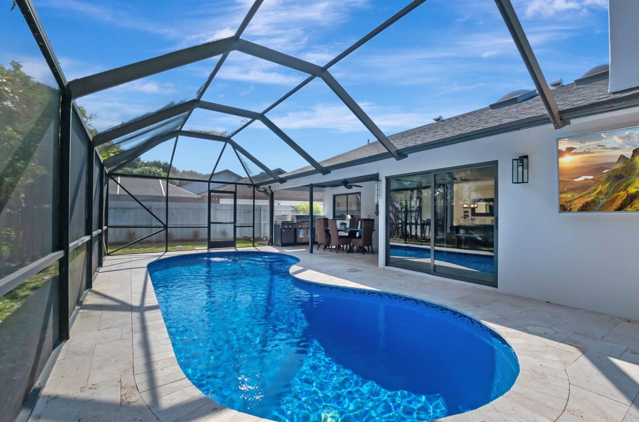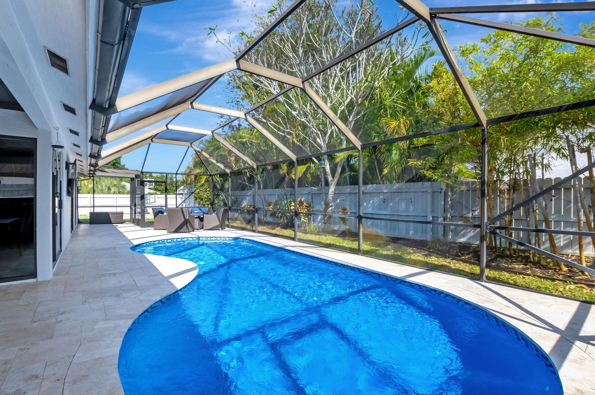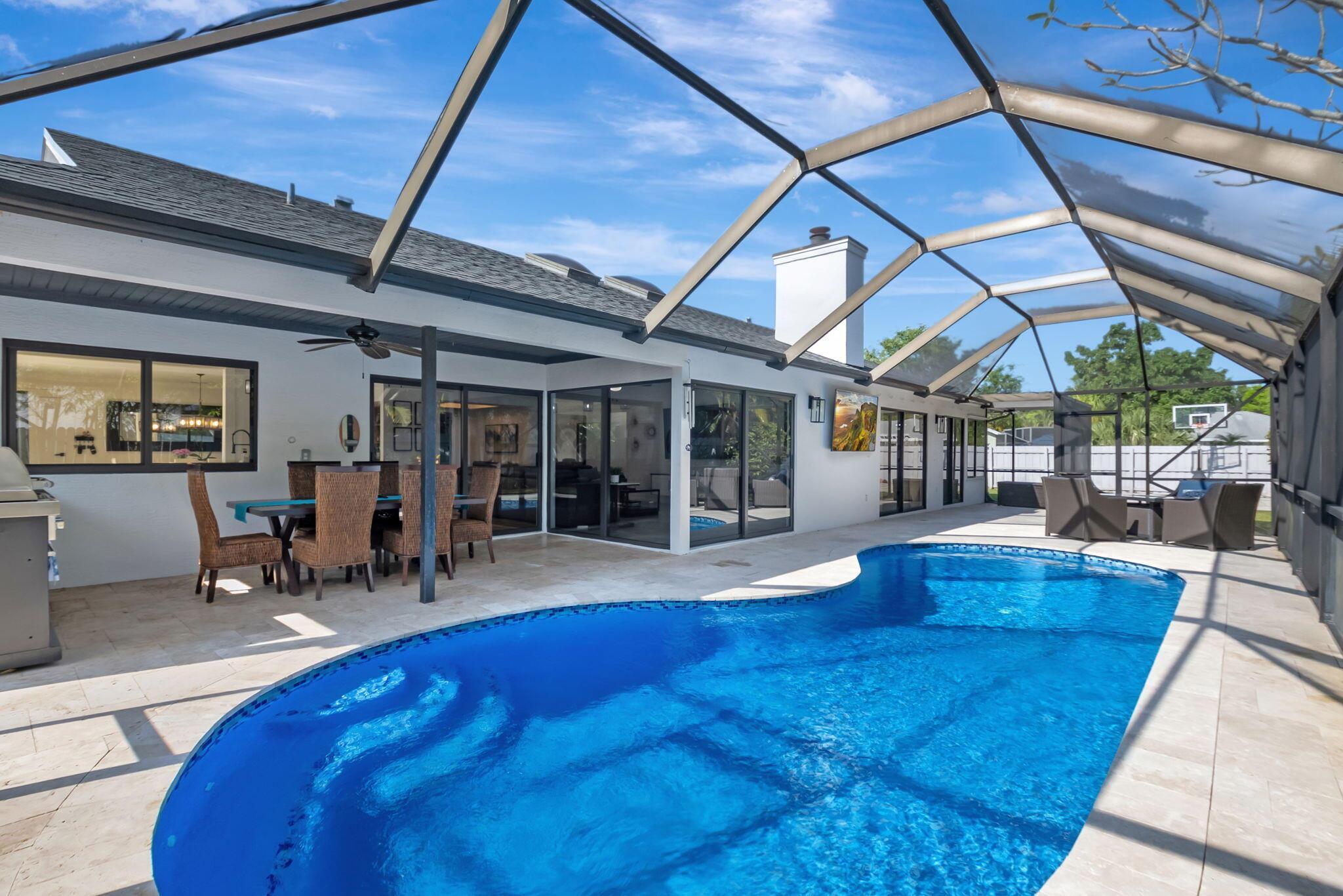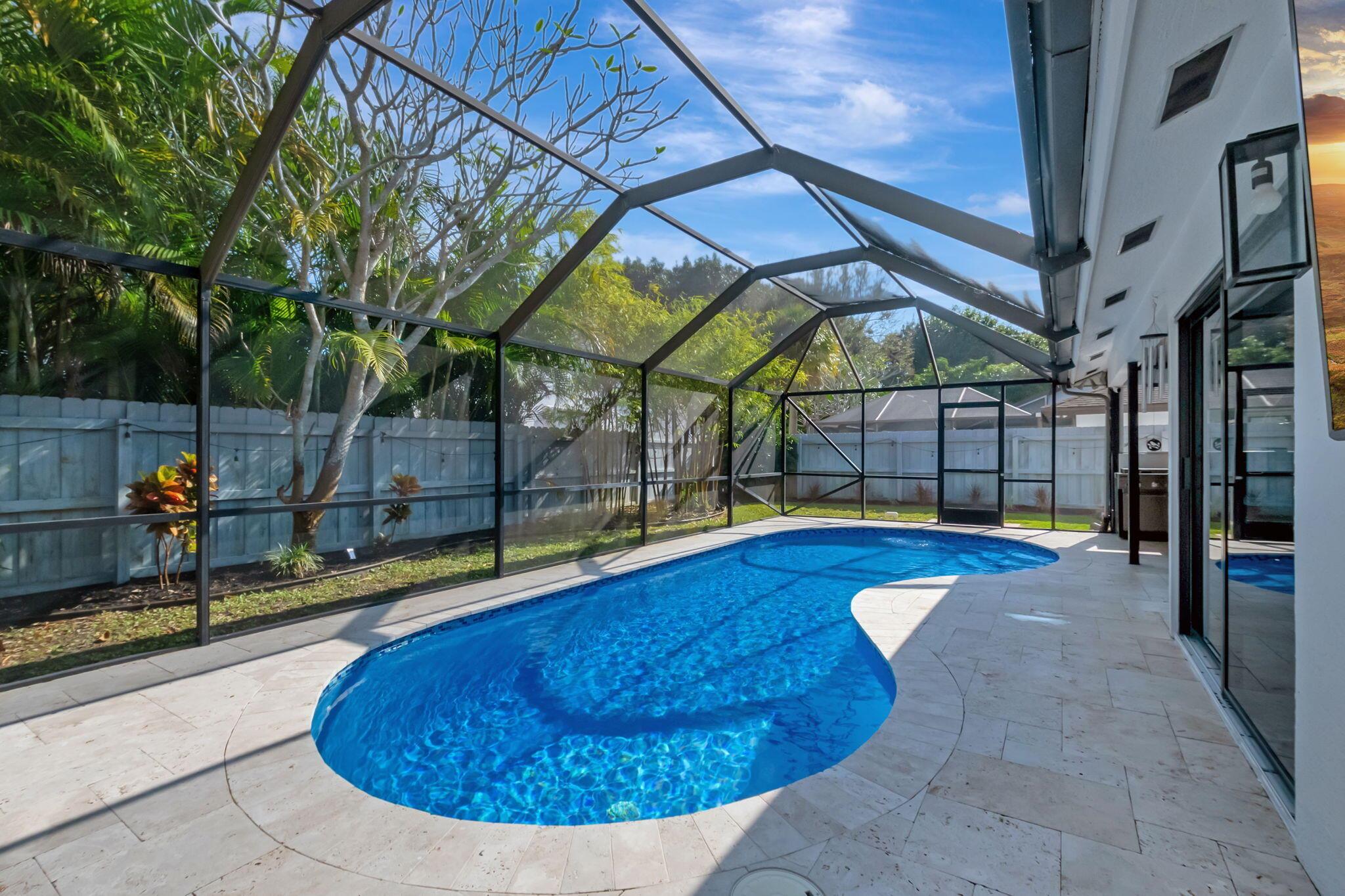 Welcome to your dream home in Central Boca Raton's desirable Pheasant Walk community! This updated 4-bedroom, 2-bath, 2-car garage home offers 2,150 sq. ft. of living space on a spacious corner lot in a quiet cul-de-sac. Inside, enjoy abundant natural light, a cozy wood-burning fireplace, wet bar, and an updated kitchen. Step outside to your private oasis featuring a screened pool, basketball court, and room for your boat. Recent updates include a new roof (2019), new AC, water heater, pool pump, and resurfacing (2023). The lush backyard includes fruit trees and plenty of space for gatherings. The pet-friendly community offers sidewalks, a park, lake, low HOA fees, and a roving police officer. Zoned for A-rated schools. Don't miss this opportunity to own a slice of paradise!