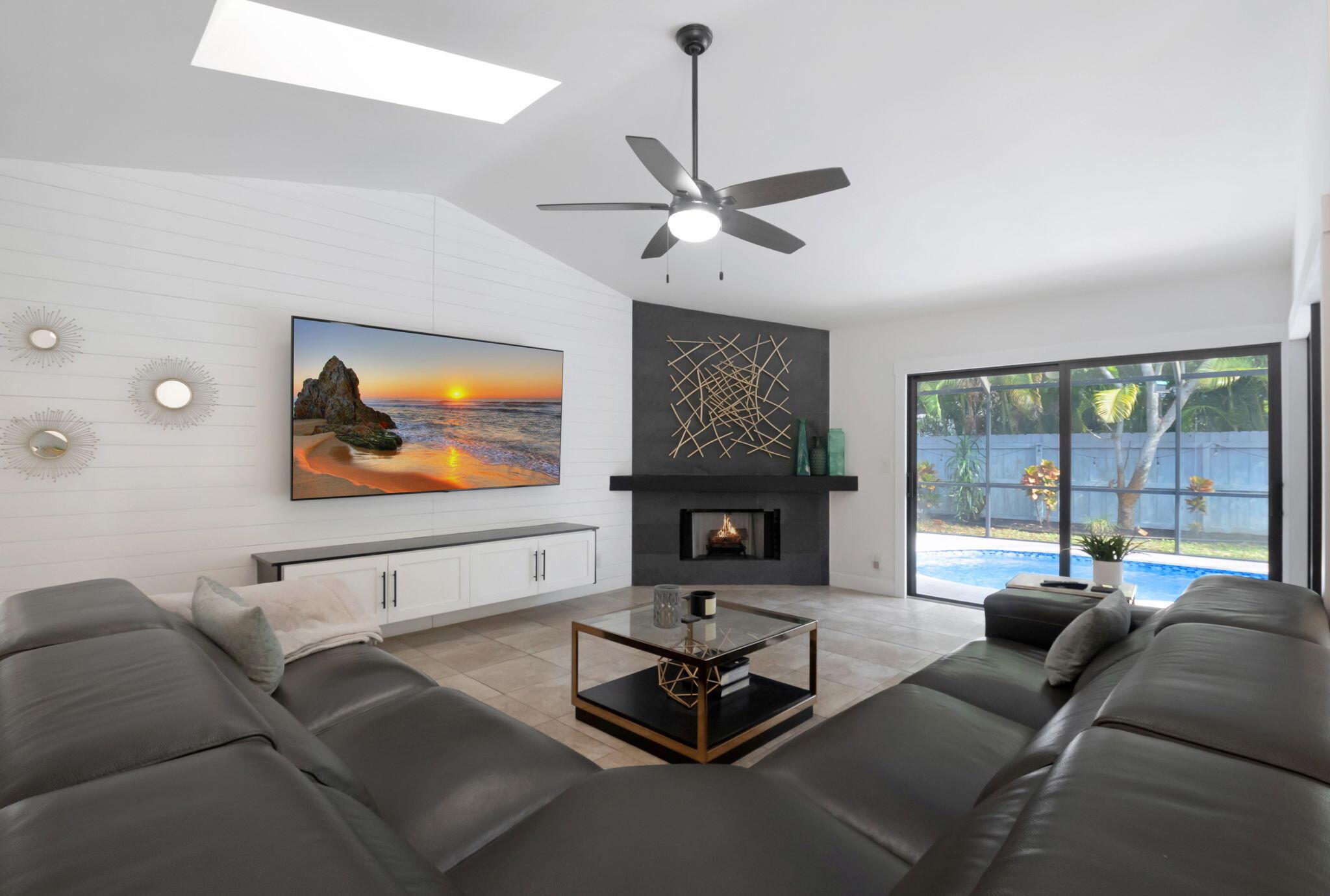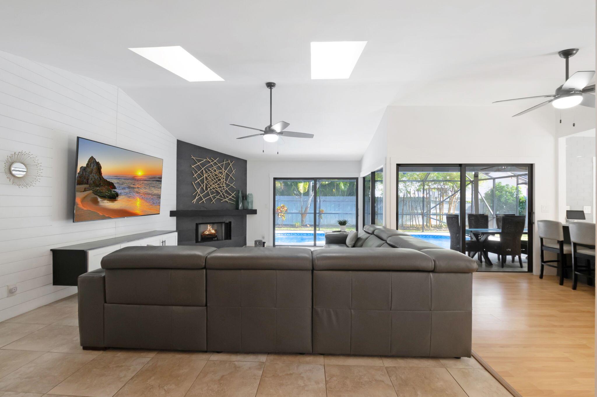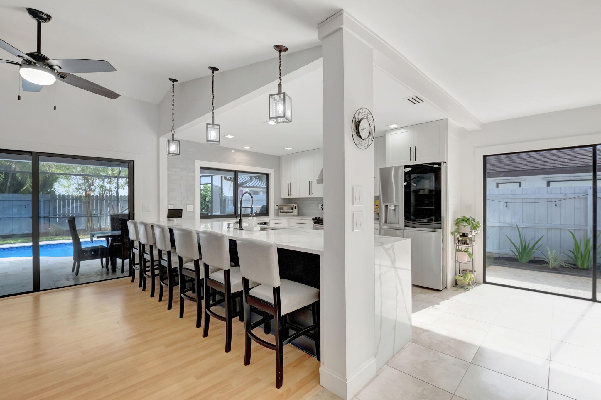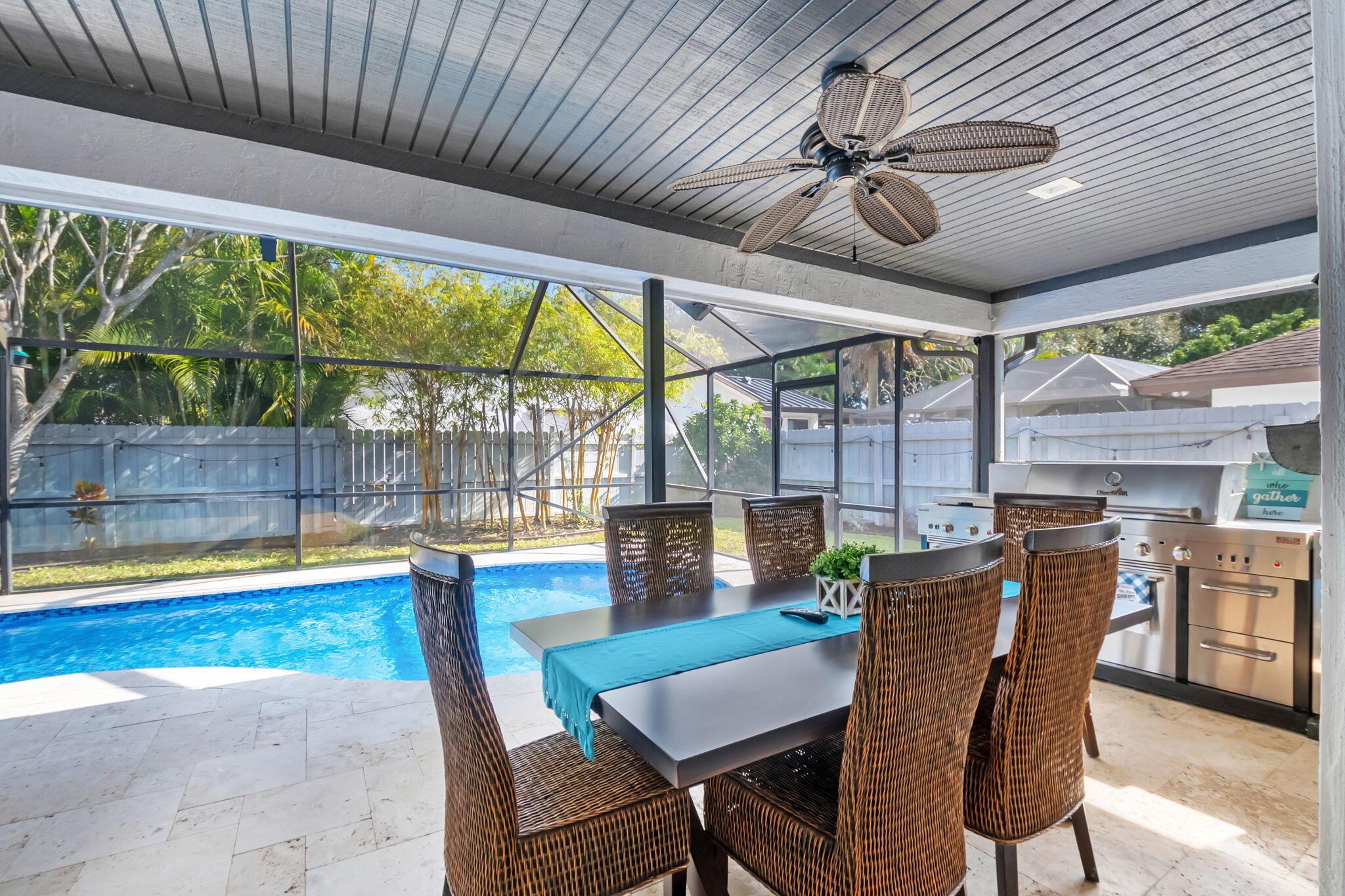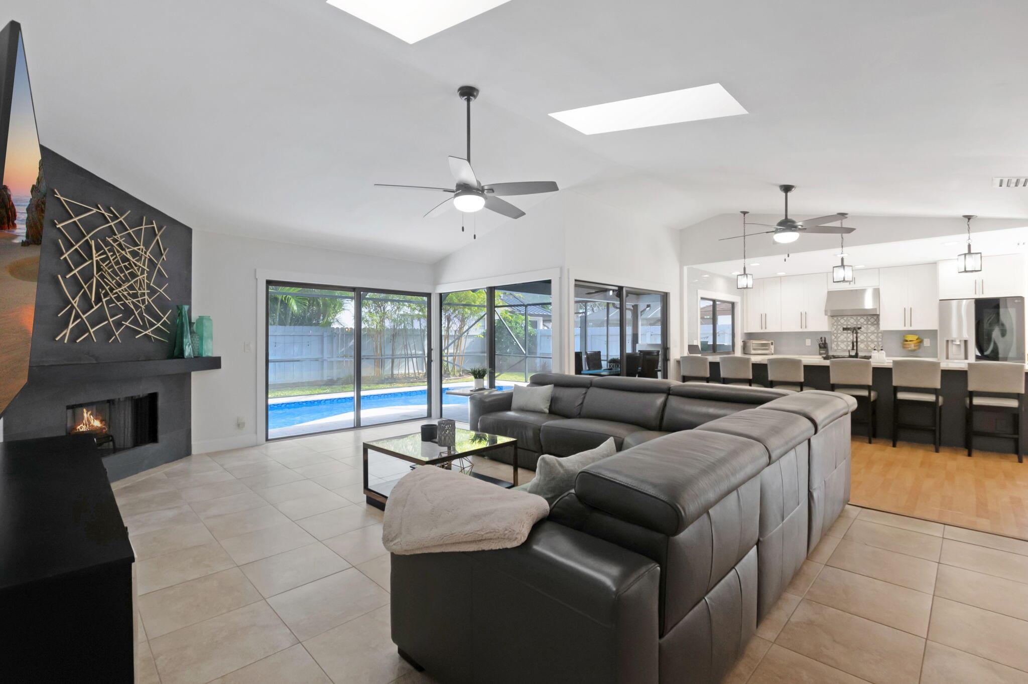 Welcome to your dream home in Central Boca Raton's desirable Pheasant Walk community! This updated 4-bedroom, 2-bath, 2-car garage home offers 2,150 sq. ft. of living space on a spacious corner lot in a quiet cul-de-sac. Inside, enjoy abundant natural light, a cozy wood-burning fireplace, wet bar, and an updated kitchen. Step outside to your private oasis featuring a screened pool, basketball court, and room for your boat. Recent updates include a new roof (2019), new AC, water heater, pool pump, and resurfacing (2023). The lush backyard includes fruit trees and plenty of space for gatherings. The pet-friendly community offers sidewalks, a park, lake, low HOA fees, and a roving police officer. Zoned for A-rated schools. Don't miss this opportunity to own a slice of paradise!