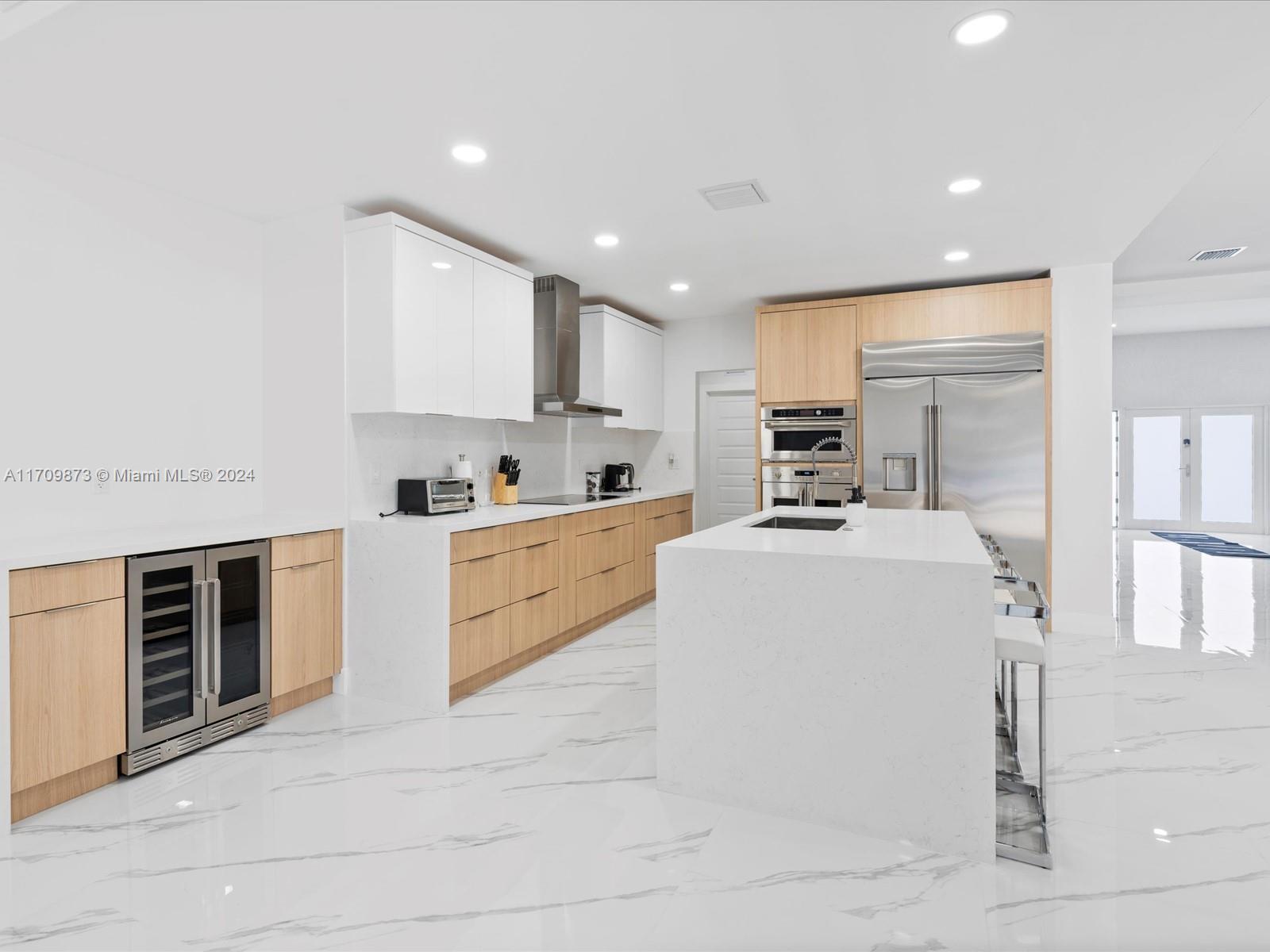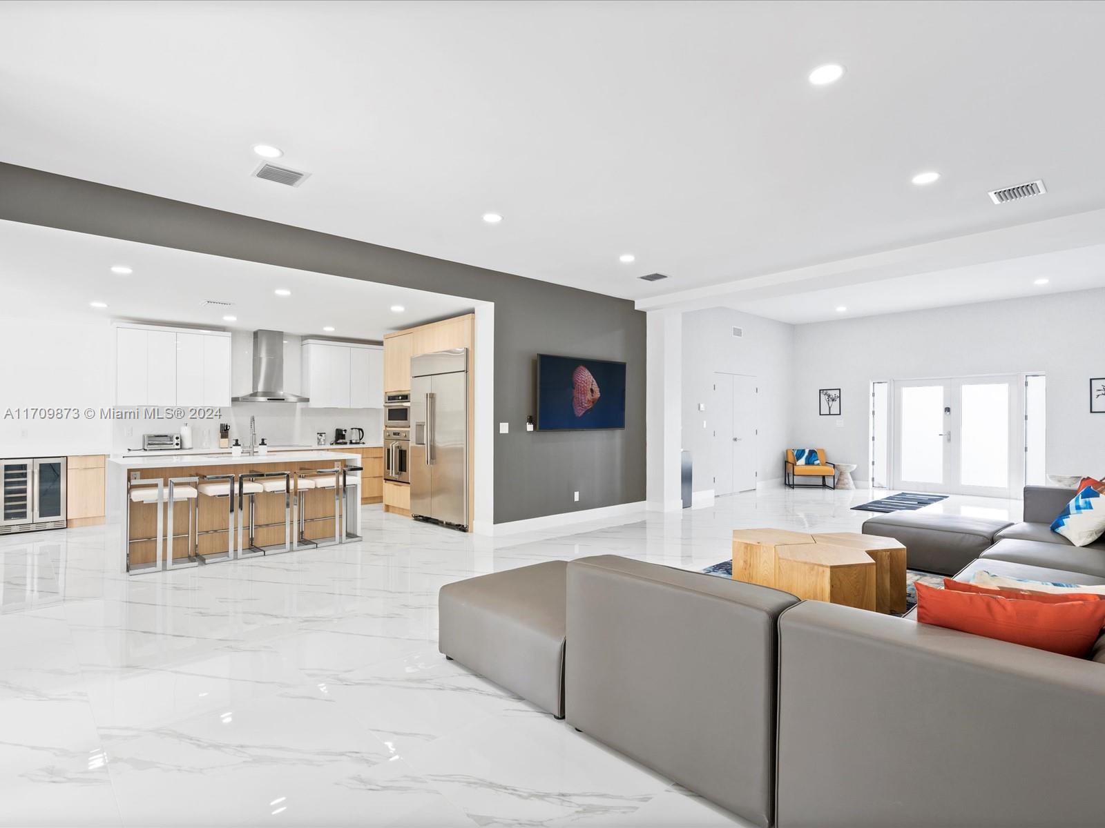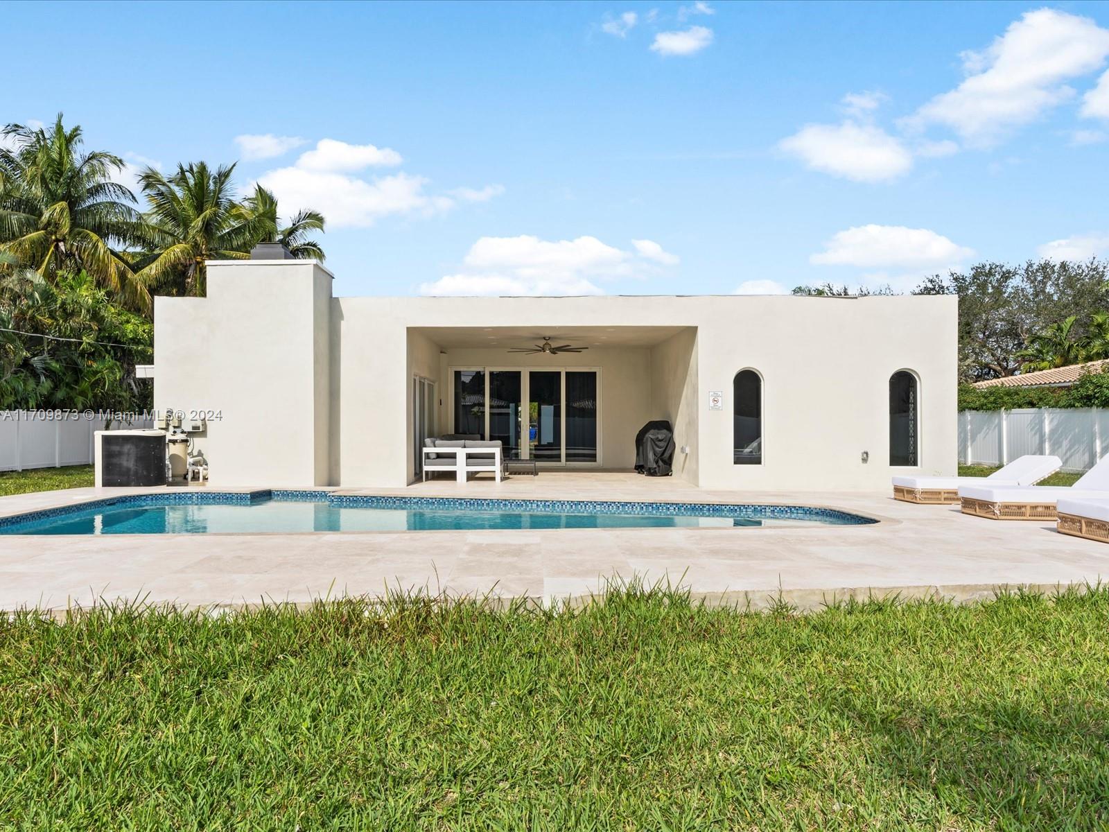 Experience luxury in this fully remodeled 4BR/3BA home, 2757 sqft, on a 20,060 sqft double lot. Features include a custom kitchen with Monogram appliances, Calcutta porcelain Italian floors, LED lighting, and custom arch impact windows in the master bedroom. Enjoy 14' high ceilings, a heated self-chlorinated pool, jacuzzi, covered patio, wood-burning fireplace, tankless water heater, laundry room, and impact windows throughout. Conveniently located near i95, Turnpike, and Hollywood Young Circle. This property offers top-of-the-line amenities, ideal for discerning buyers seeking elegance and comfort.